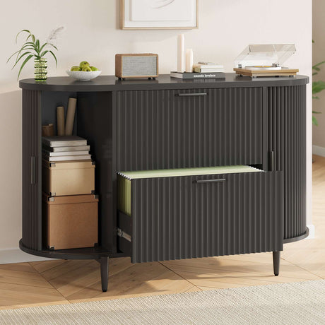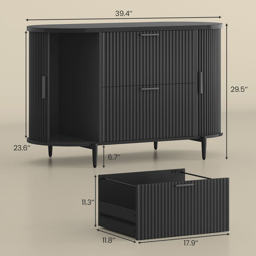 SEDETA 39.4 Inch File Cabinet for Home Office Modern Fluted Curved Cabinet with 2 Sliding Door Storage