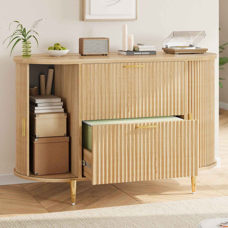 SEDETA® 39.4 Inch Home Office File Cabinet Curved Sliding Cabinet Modern Light Luxury Design Fluted Filing Cabinets and 2 Drawers