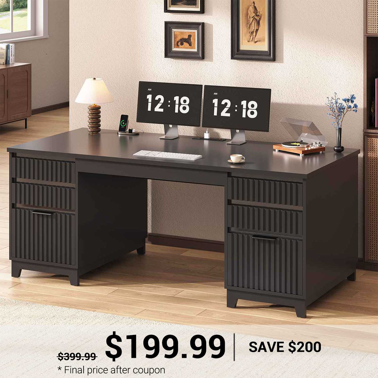 •【6 Drawers for Ample Storage】This SEDETA office desk features 6 storage drawers, including 2 file drawers that can accommodate three file sizes—Legal/Letter/A4. The elegant textured groove design exudes a minimalist sophistication, providing ample storage space for documents, books, and office supplies. Durable and smooth-slip rails on the drawers and grooved cabinet doors ensure effortless opening and closing.
