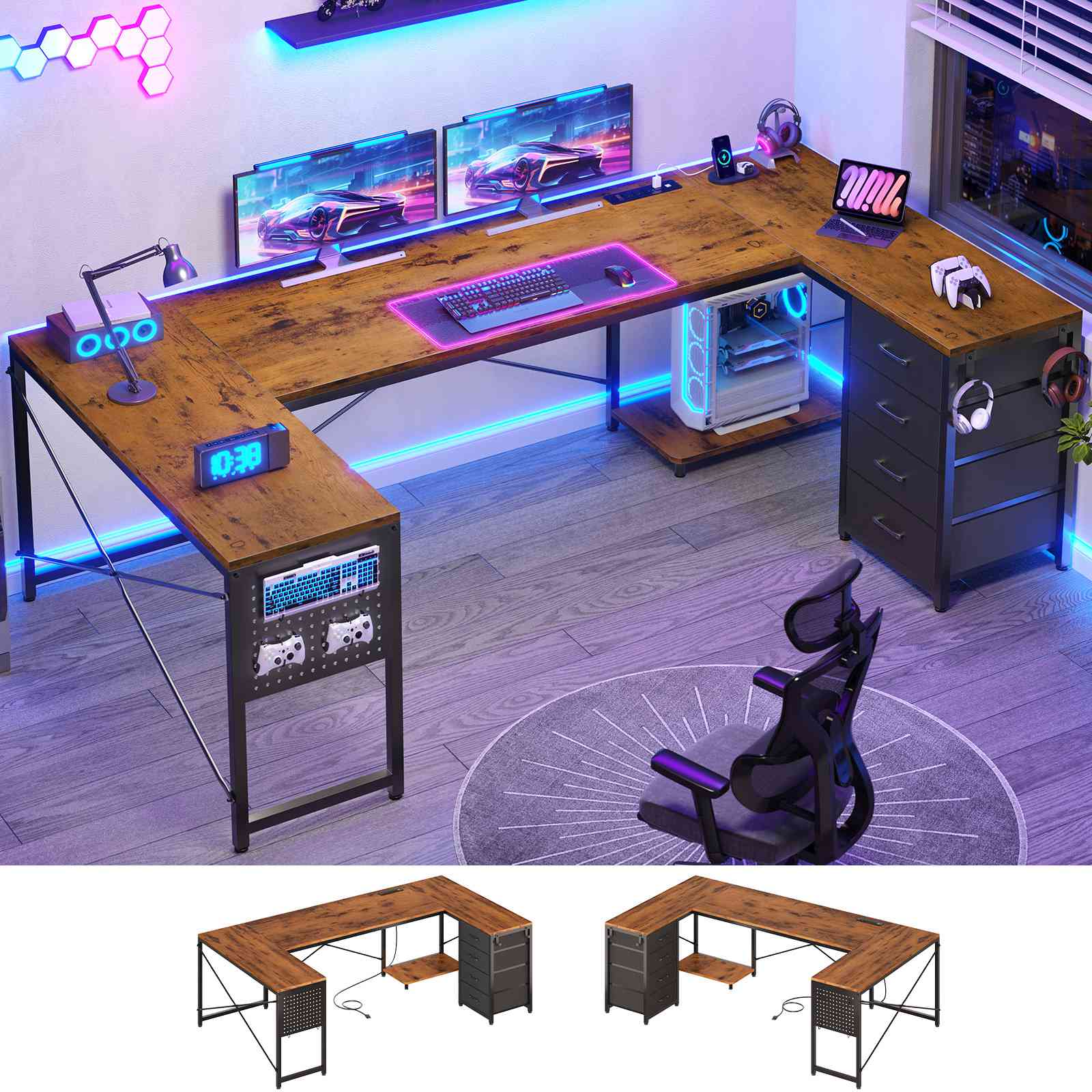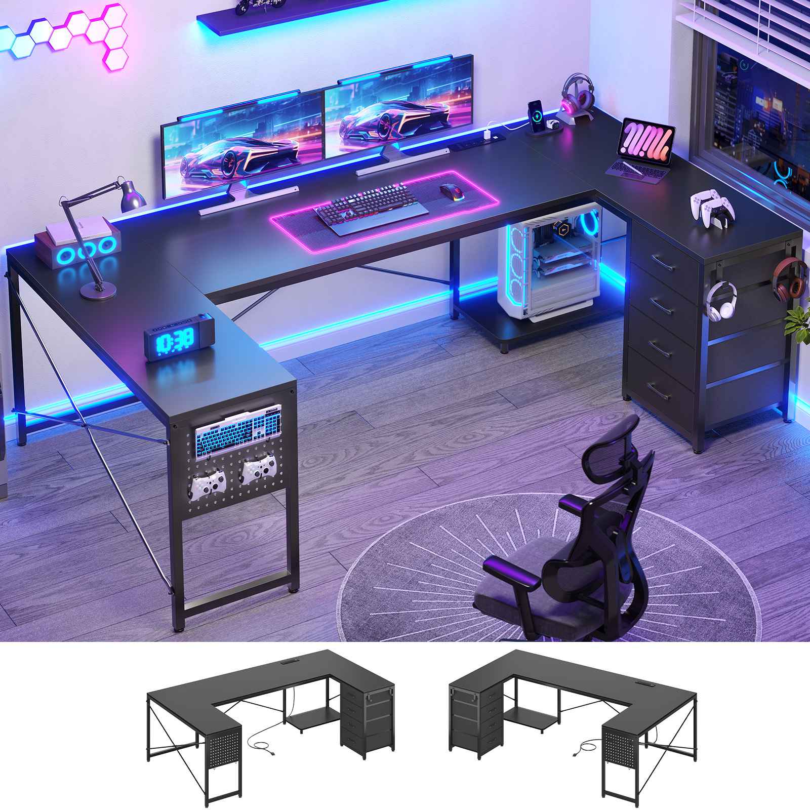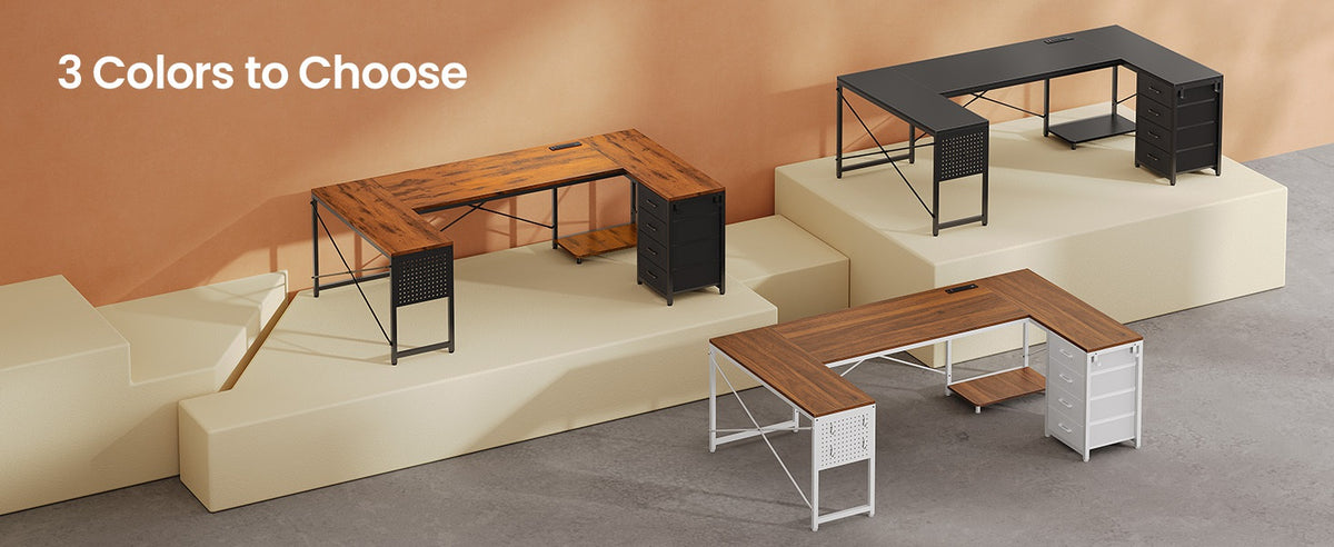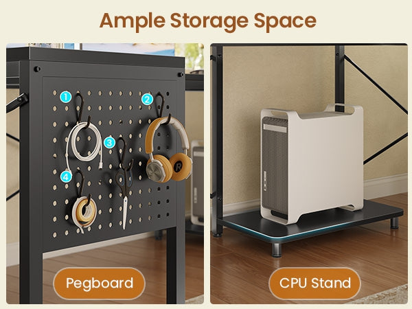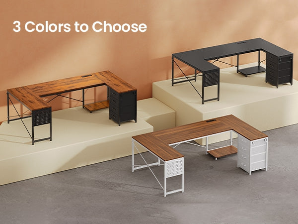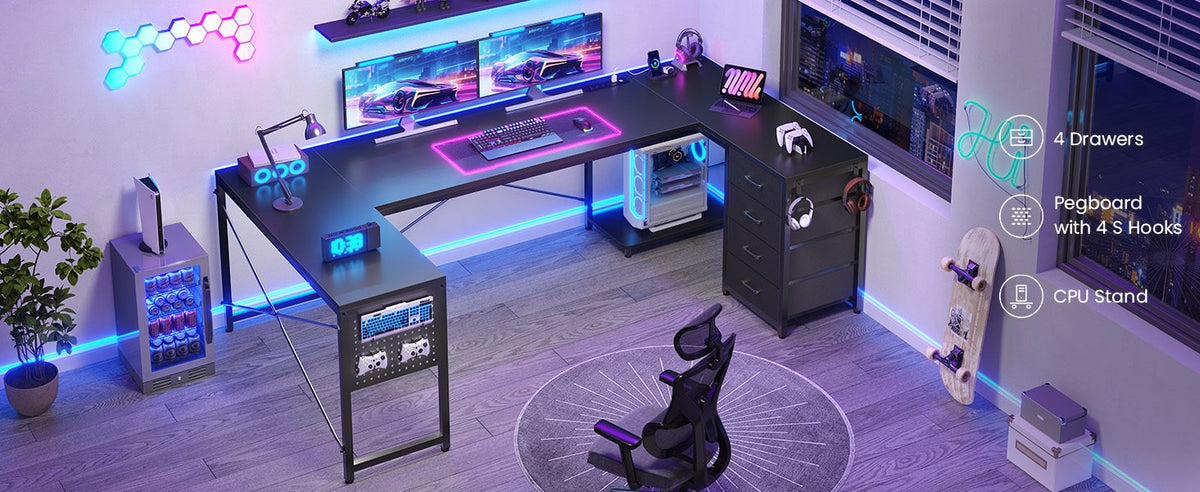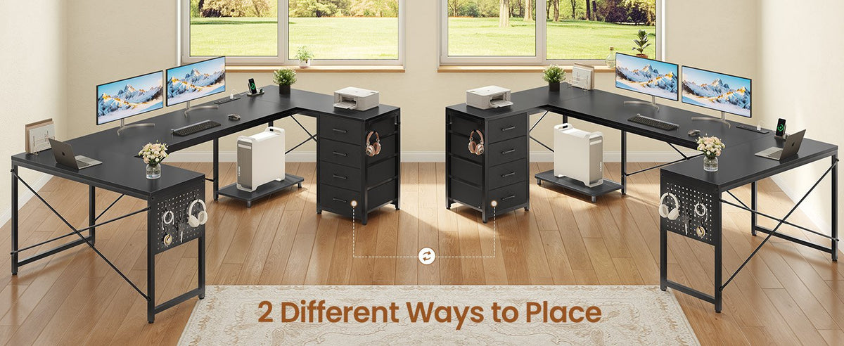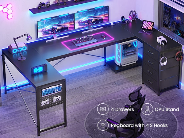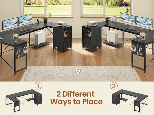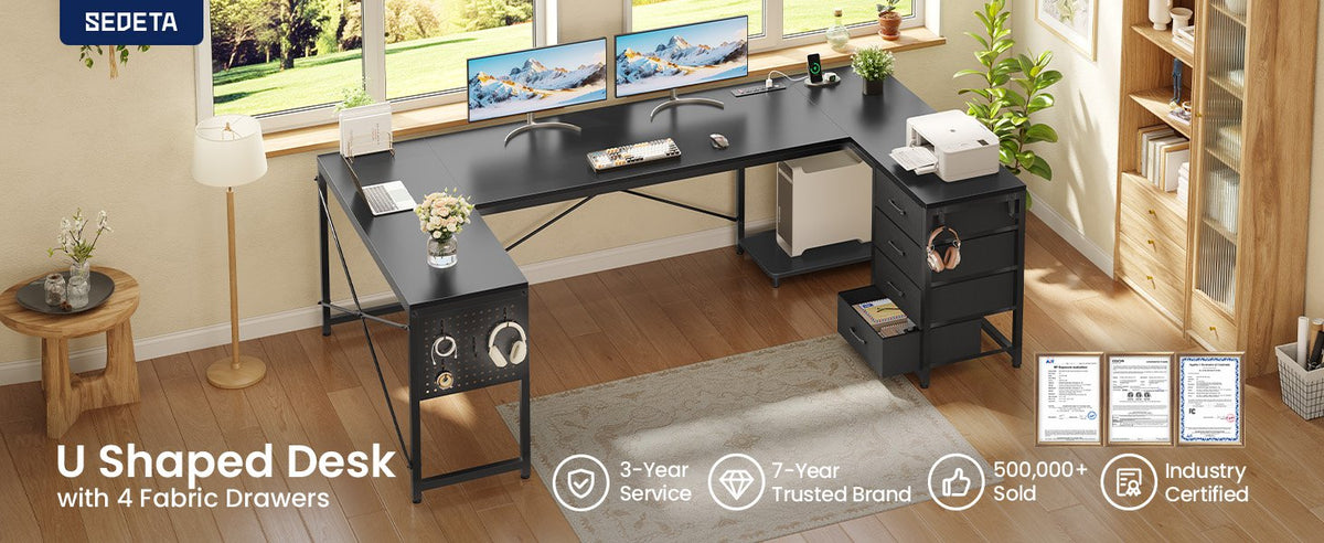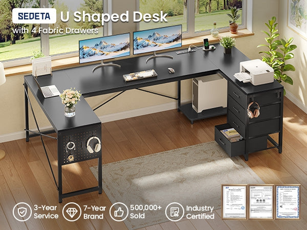•【Reversible Design】4 fabric drawers and CPU stand can be placed on either the left or right side, allowing you to customize the U shaped office desk to suit your needs. An ideal corner gaming desk for small rooms or limited spaces to create excellent home office space.