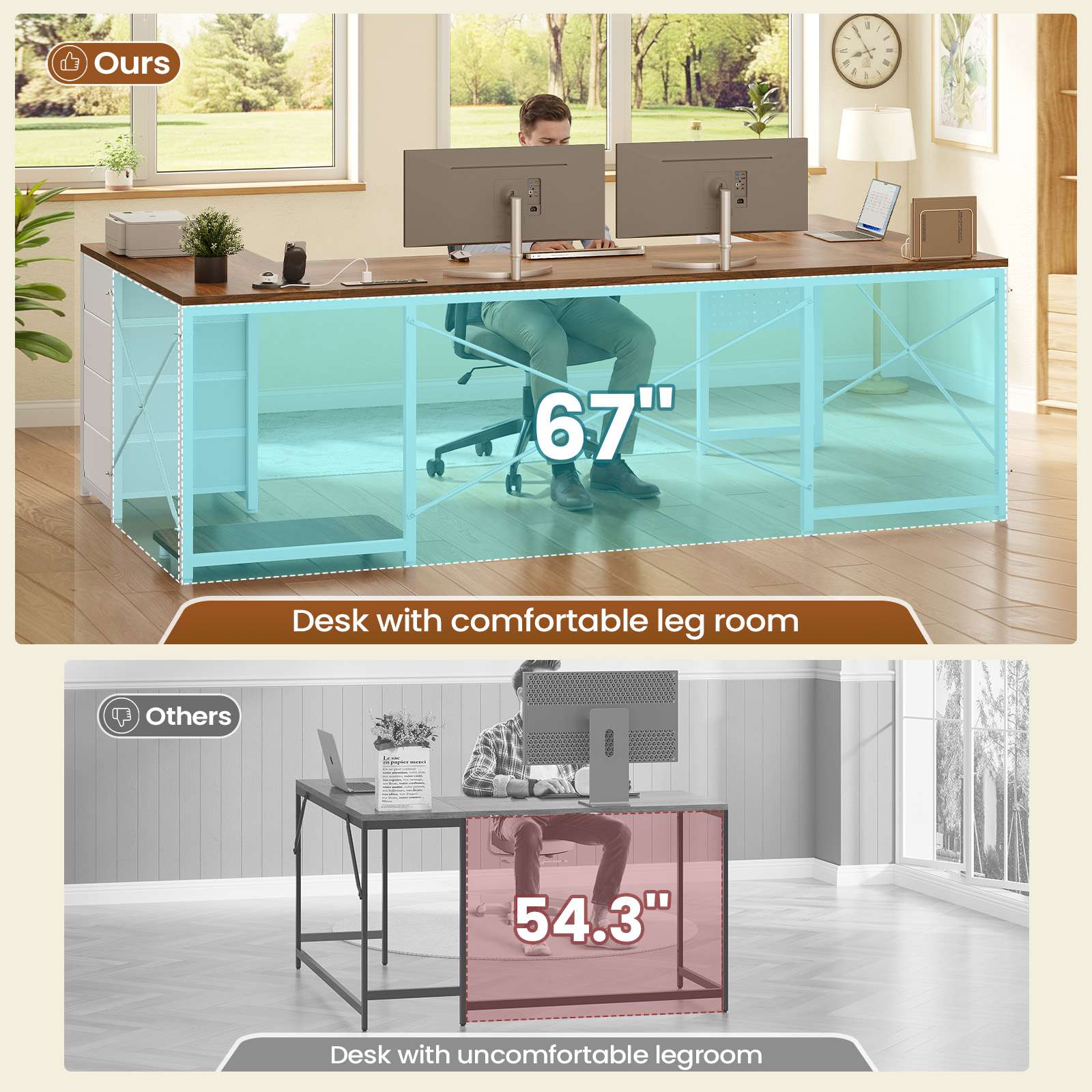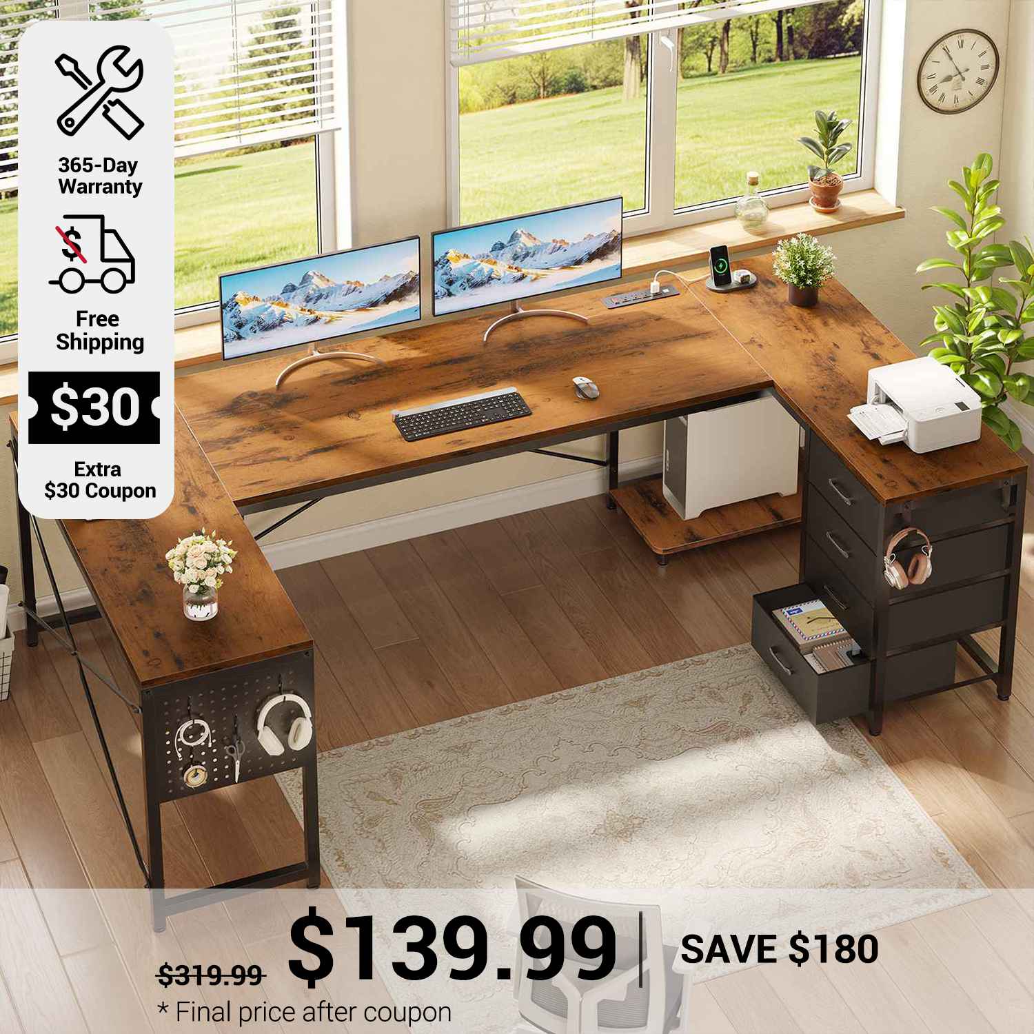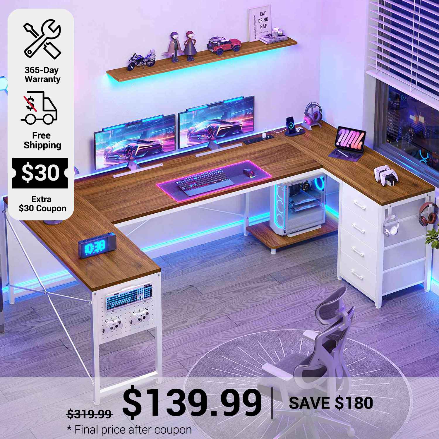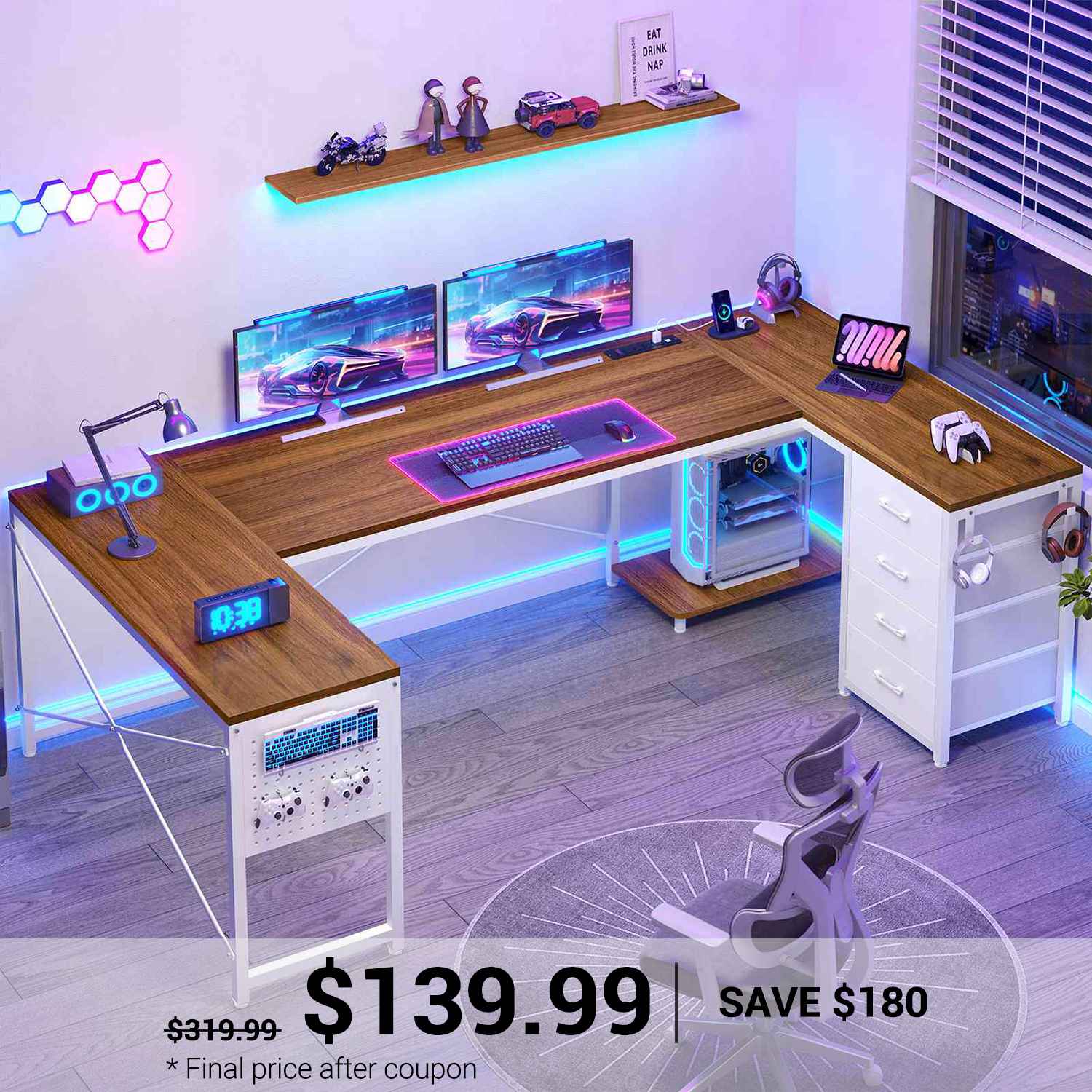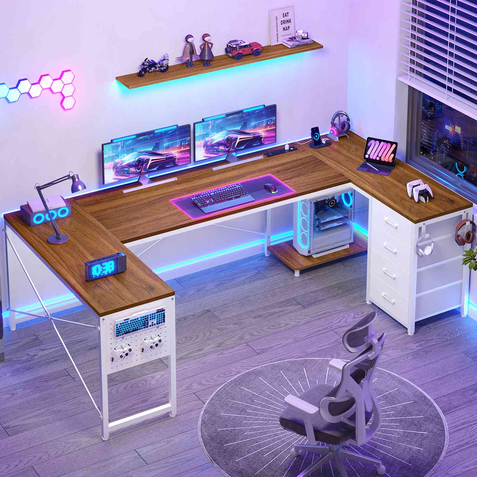 •【Reversible Design】4 fabric drawers and CPU stand can be placed on either the left or right side, allowing you to customize the U shaped office desk to suit your needs. An ideal corner gaming desk for small rooms or limited spaces to create excellent home office space.