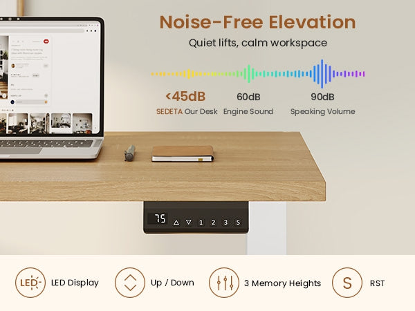• Durable & Stable: Steel T-frame, supports 200 lbs, P2 particle board, anti-scratch, quiet motor <45 dB.