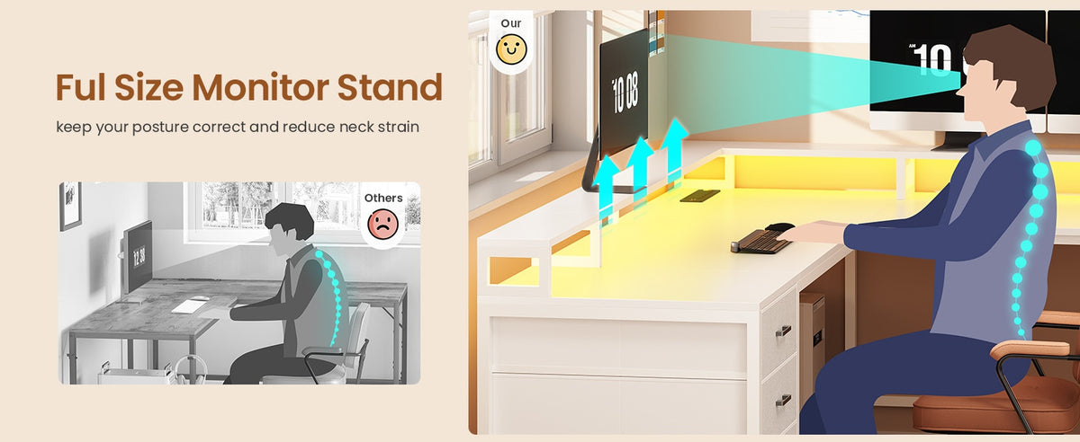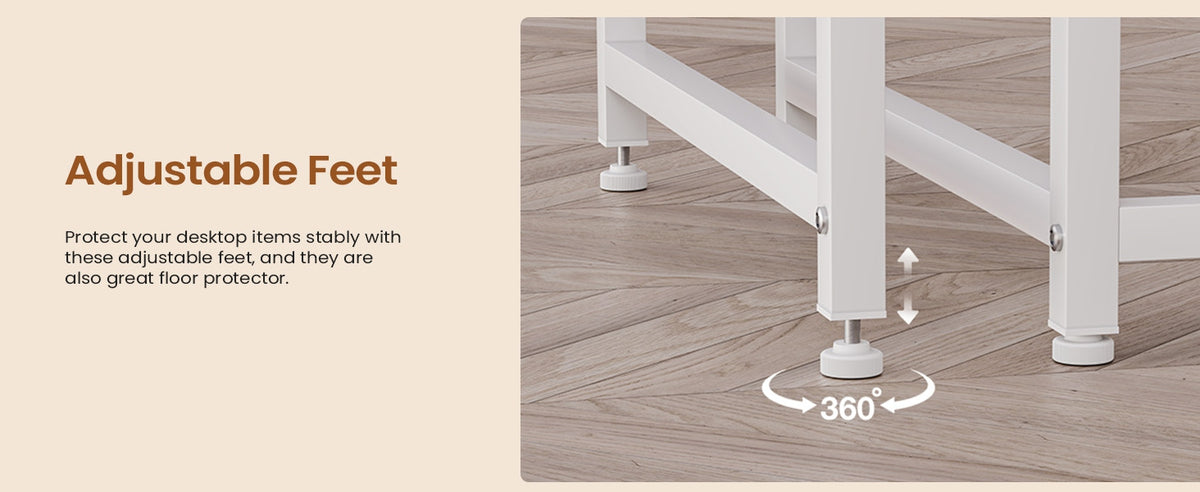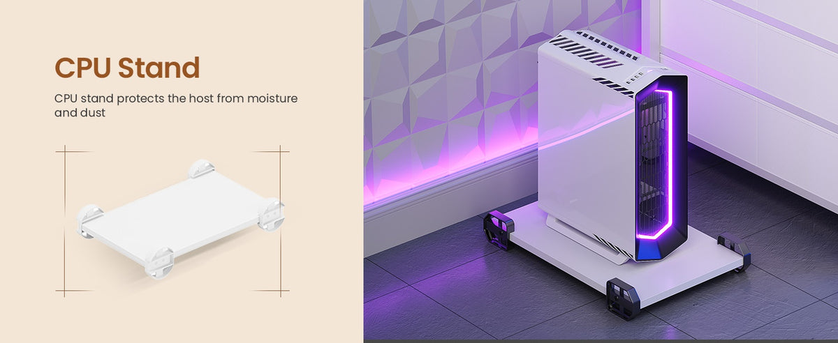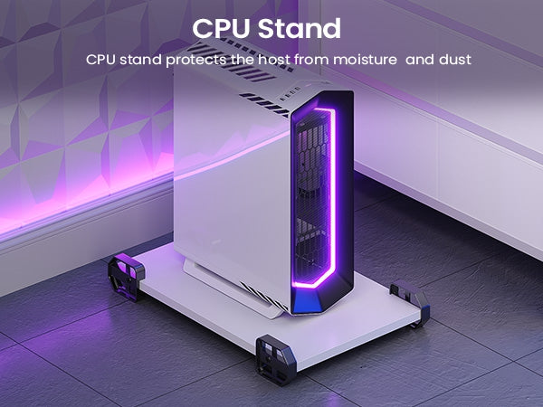 •【Monitor Stand & CPU Stand】Two long monitor stands can easily accommodate four monitors, meeting your efficient work needs. The monitor stand protects your neck and spine health while creating extra storage space for your belongings. The CPU stand shields your computer from moisture and dust.