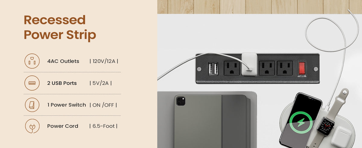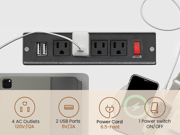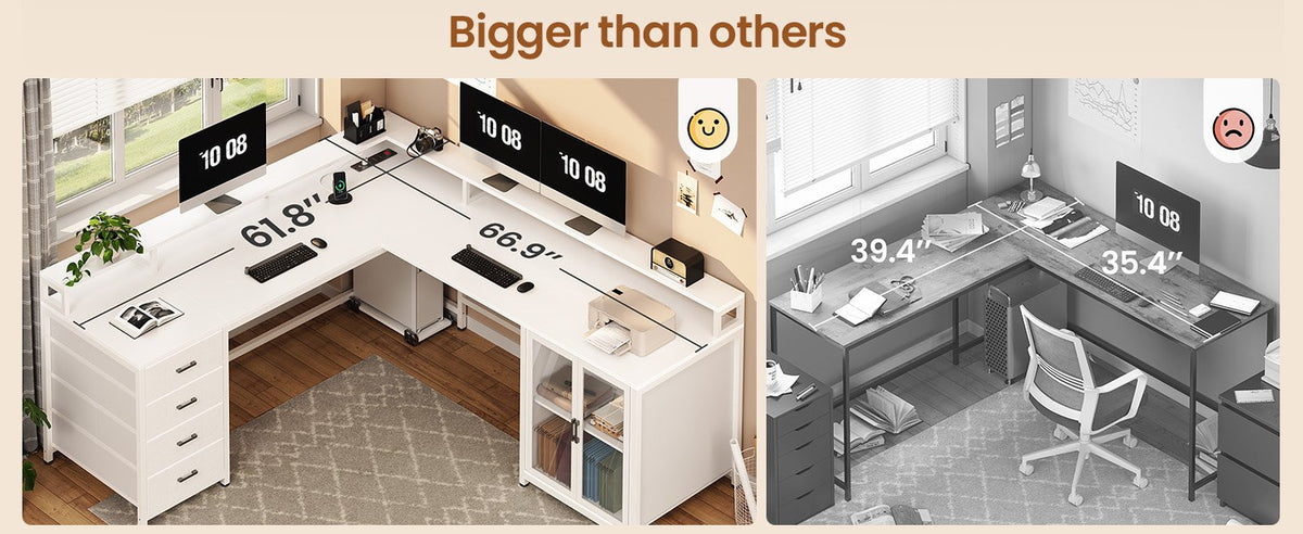 •【User Friendly】The L shaped computer desk includes a built-in power strip with 4 outlets & 2 USB Ports provides convenience for charging your gaming gear, tablet、printer or phone.Don't worry about not having enough power sockets. Also includes an on-off switch, thanks to the on-off switch, one-button power off to ensure safe electricity use, which strengthens security.