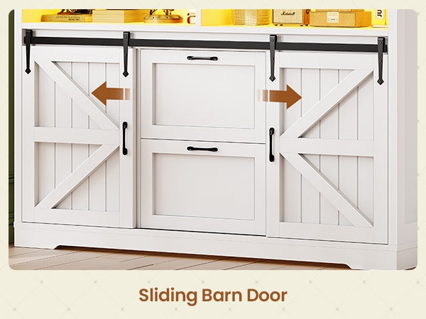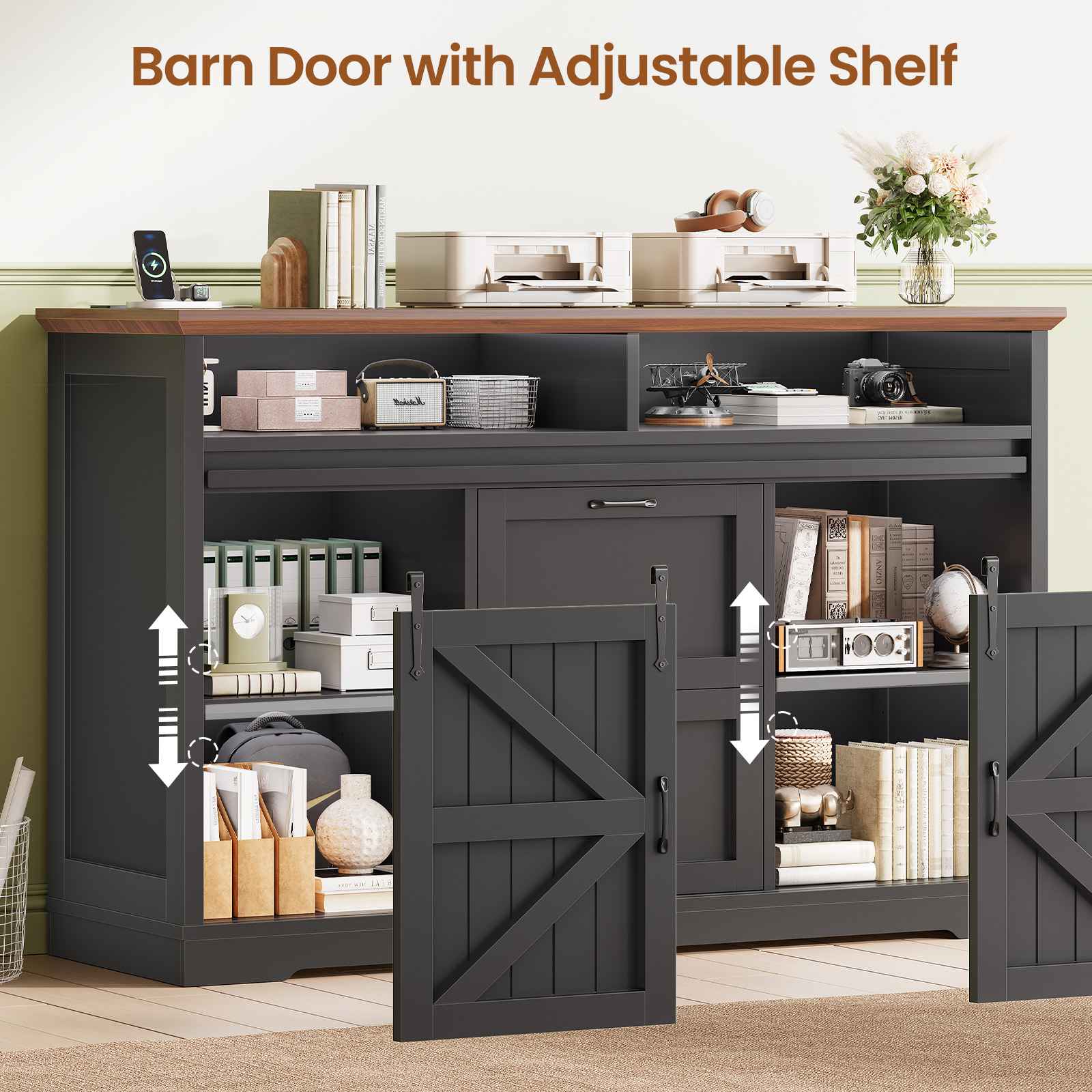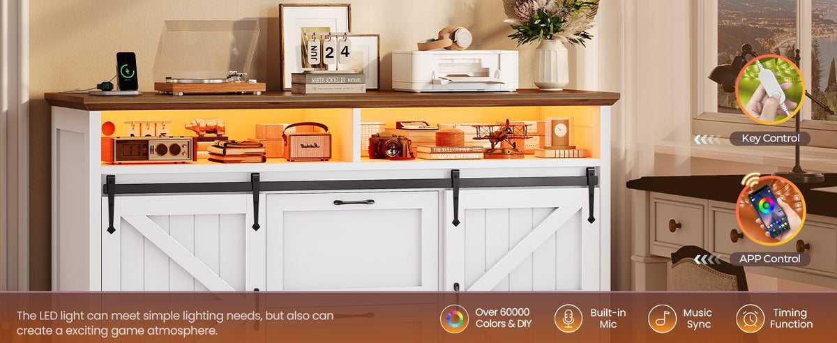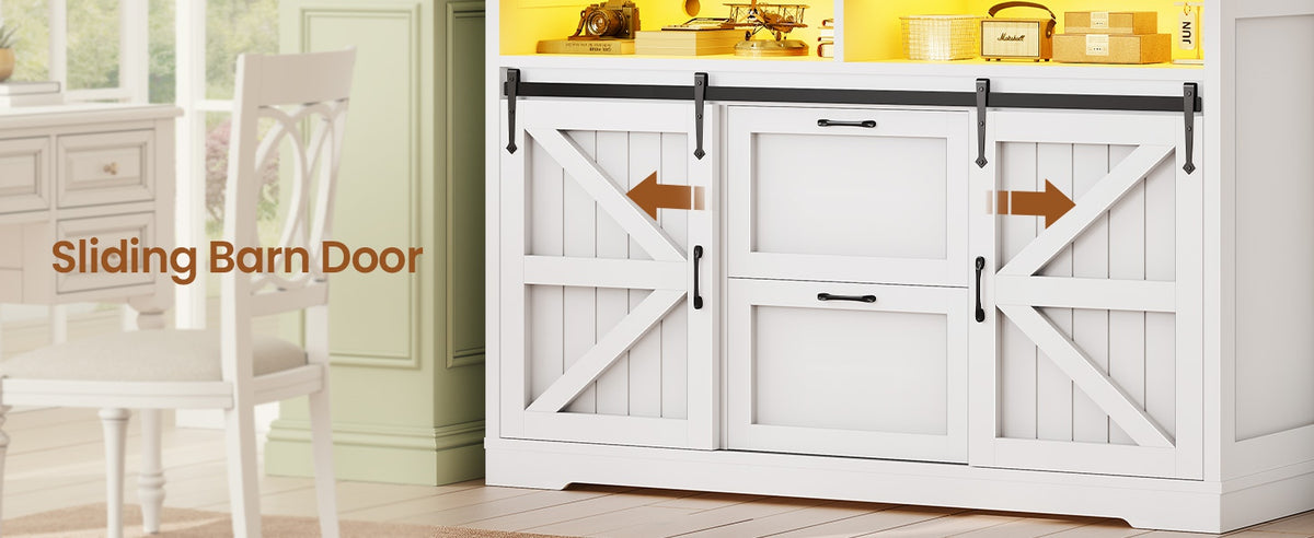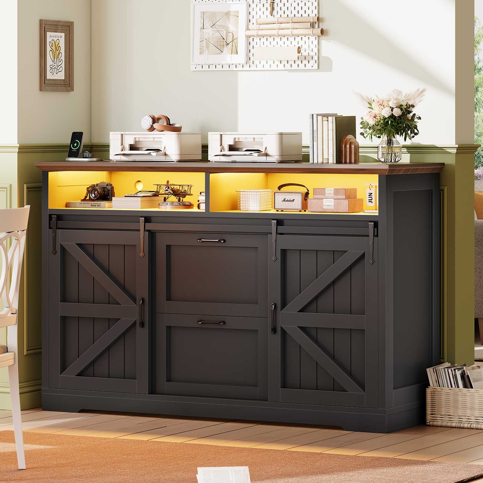 •【Barn Door Cabinet & Led Light Strips 】Beautiful storage file cabinets for home office are made of sliding barn door, protecting files from dust intrusion while also adding a beautiful effect to the home. open storage shelf unhindered perspective of the items displayed inside, can used as curio cabinet to display your collection of books or fine crafts. The LED light can meet simple lighting needs, but also can create a exciting atmosphere.