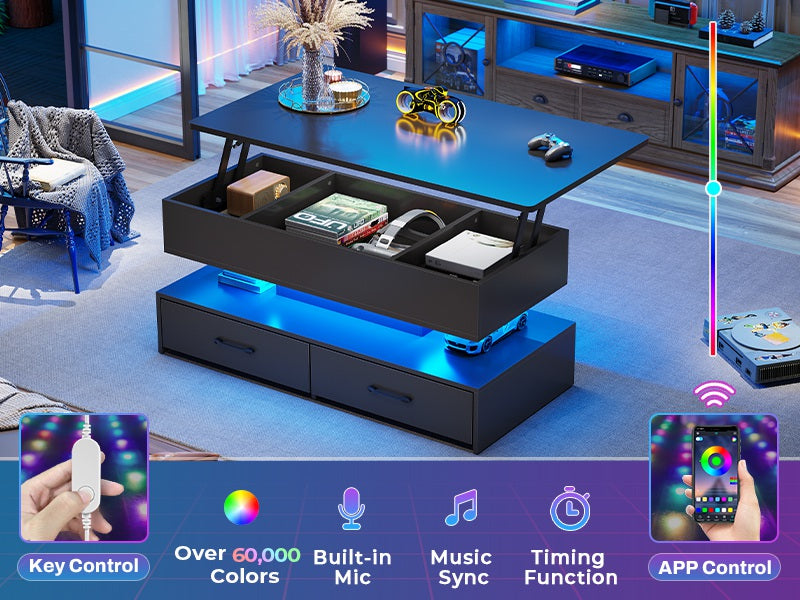 Life needs a sense of ritual, colorful lights make your life relaxing and exciting. The LED coffee table includes multiple colors and 29 flashing modes for you to choose from. Led lights with music sync function, built-in sensitivity adjustable mic, and LED light color will change with the rhythm of the sound and music.