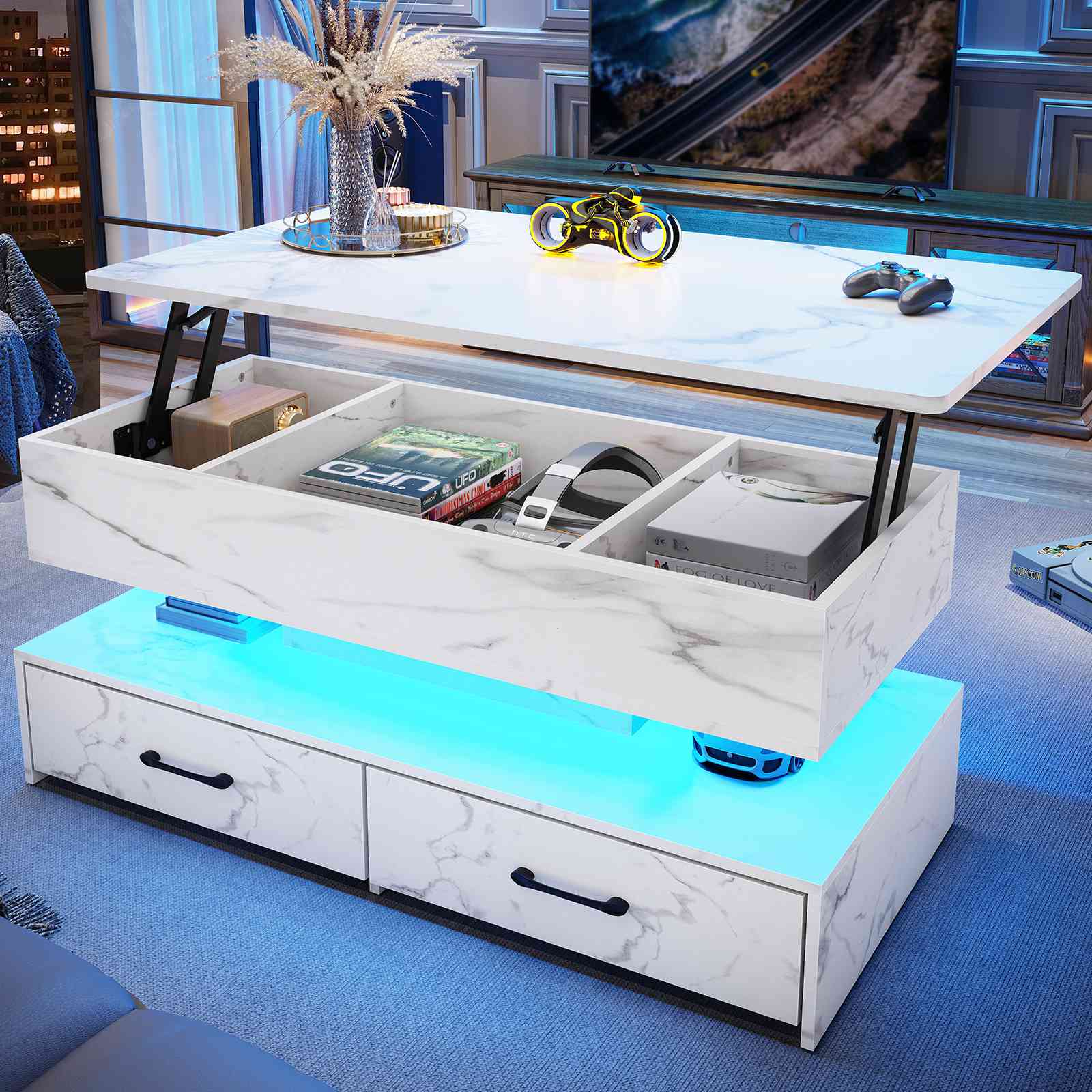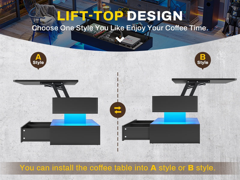 The lifting coffee table top can be extended forward or backward depending on the position of the sofa. You can determine the lifting direction of the coffee table based on your own preferences and spatial layout.