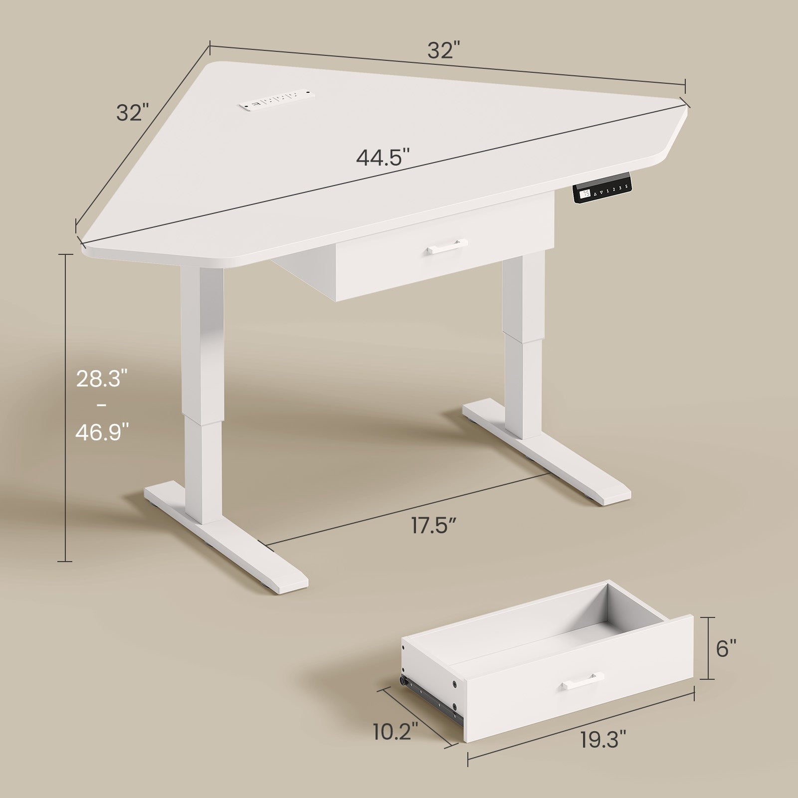 •【Space Master, Smart Storage】Don't let its compact size fool you! This standing desk with drawers cleverly integrates a practical storage drawer and two sturdy hooks underneath, making it easy to stow away items like keyboards, headphones, and cables to maintain a clean desktop. Furthermore, the built-in power strip on the desktop, offering 2 USB ports and 3 electrical outlets, allows you to say goodbye to cable clutter for good and focus entirely on the task at hand.