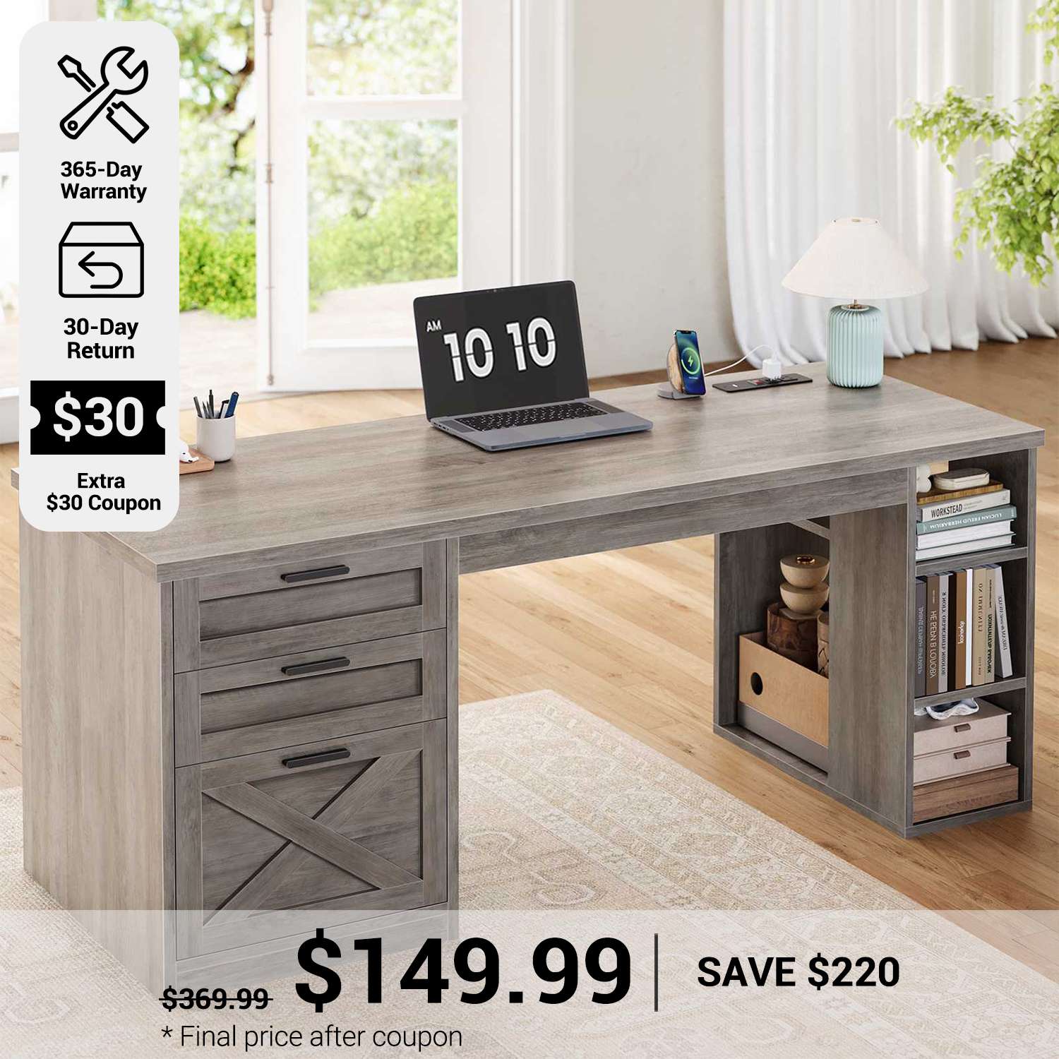 • Farmhouse Design: Classic American-style desk that suits various home decors.