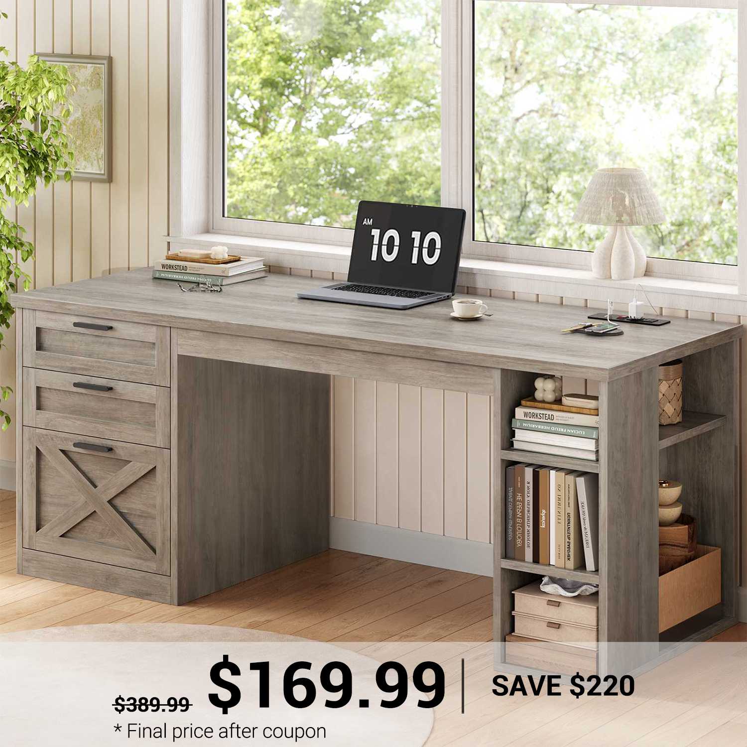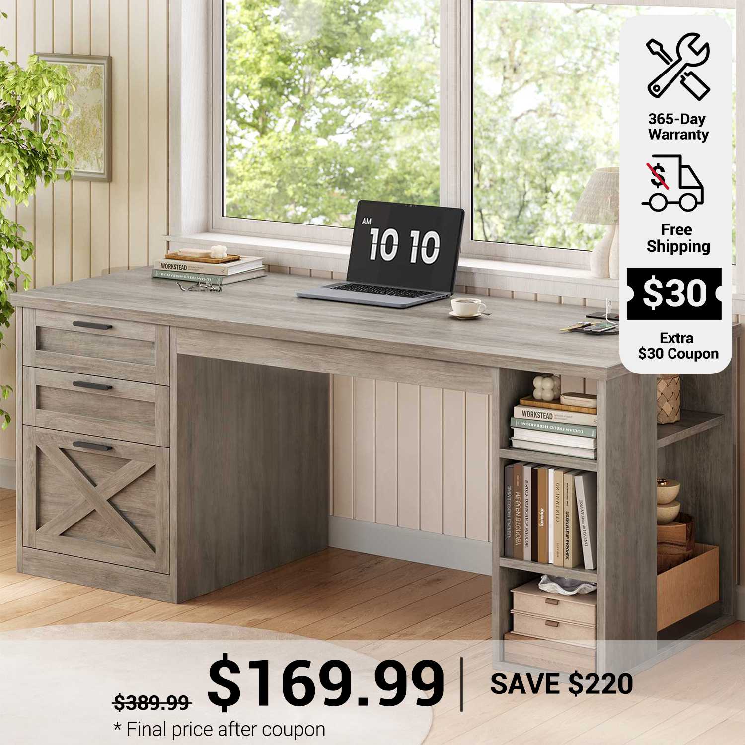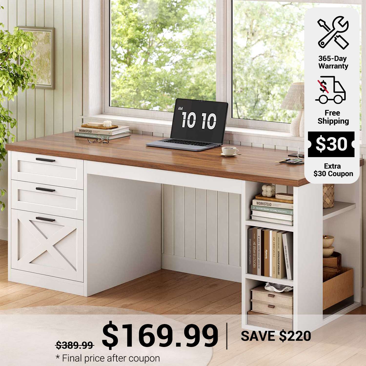 •【Farmhouse style】The drawer design of the office desk creates a classic American style that complements most home decor styles. At the same time, this office desk is also an ideal choice for studying and working from home, with diverse uses.