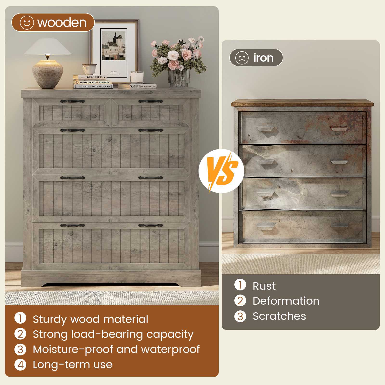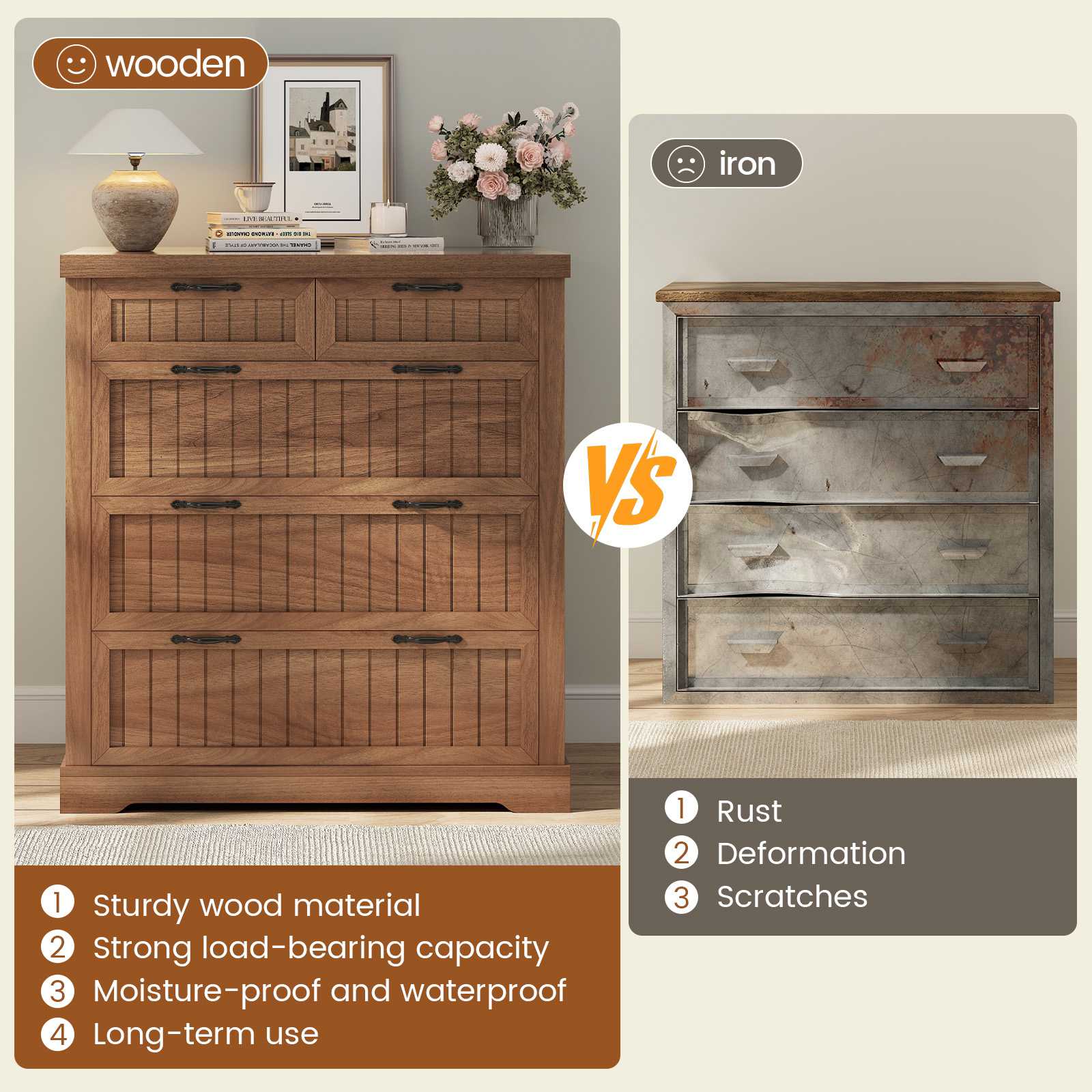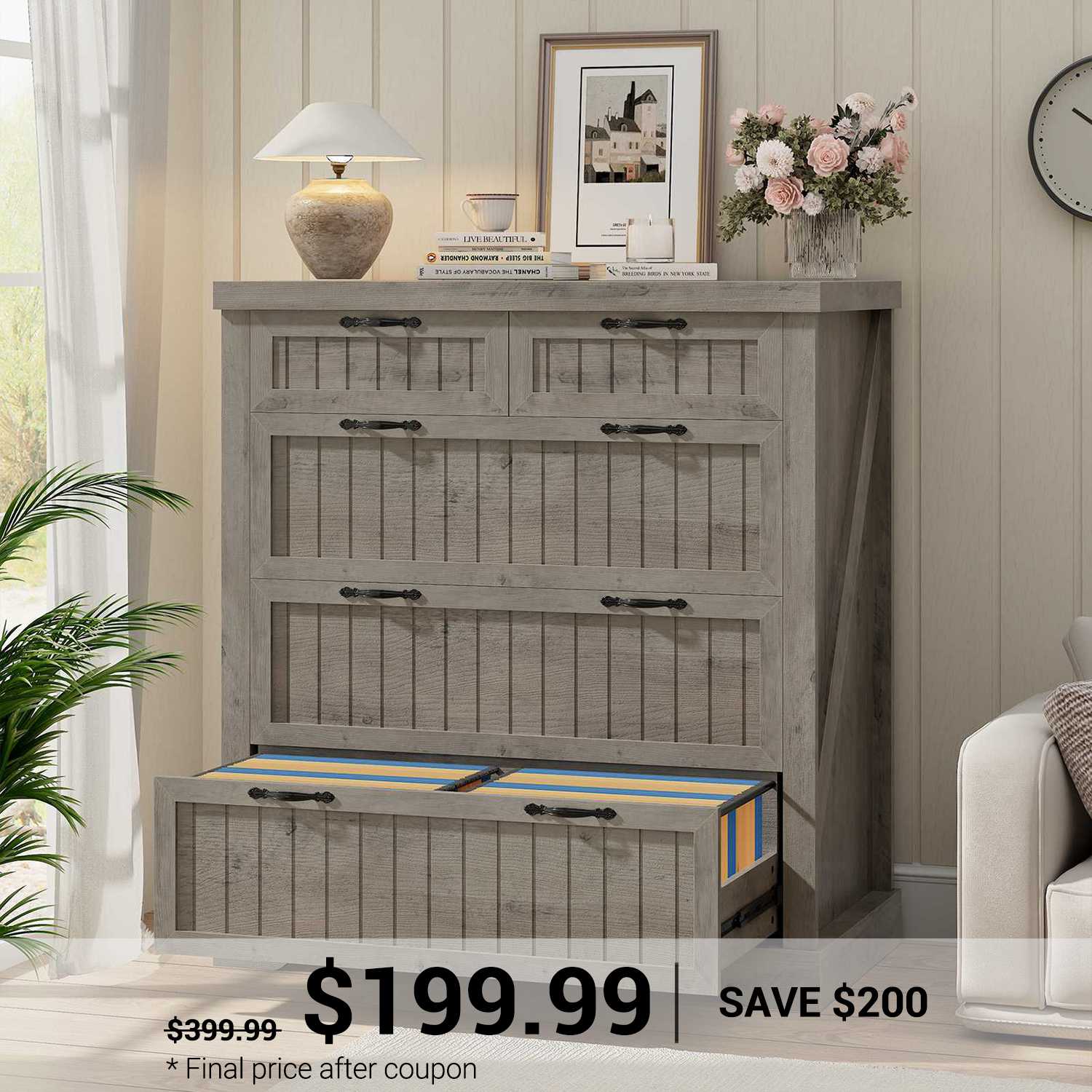 5 Drawers Farmhouse File Cabinet