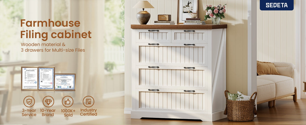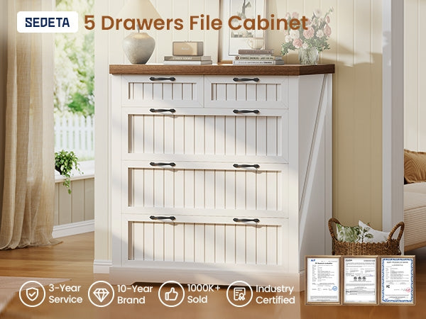 SEDETA | 33.5 Inch Lateral File Cabinets with Printer Stand Farmhouse Wood Home Office File Cabinets with 5 Drawers for Letter/Legal/A4 Size