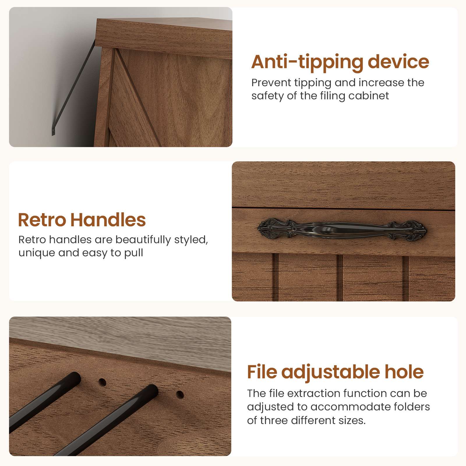 Prevent tipping and increase the safety of the filing cabinet