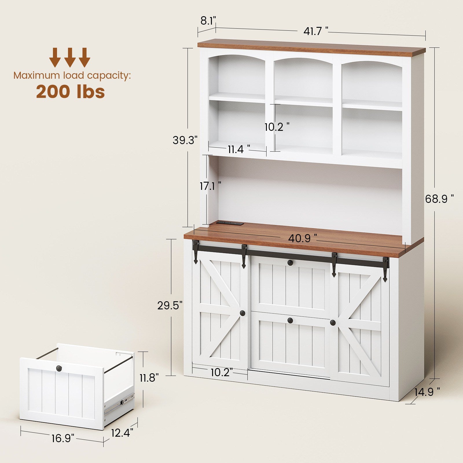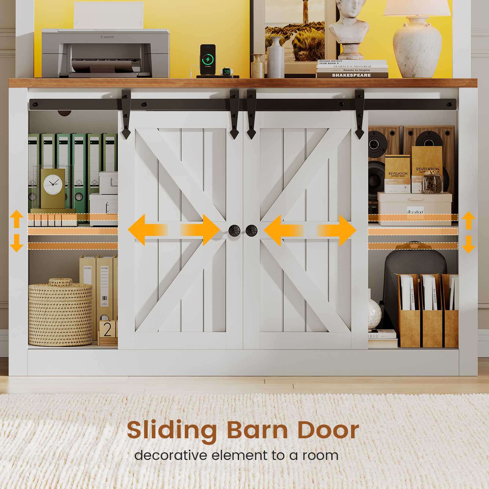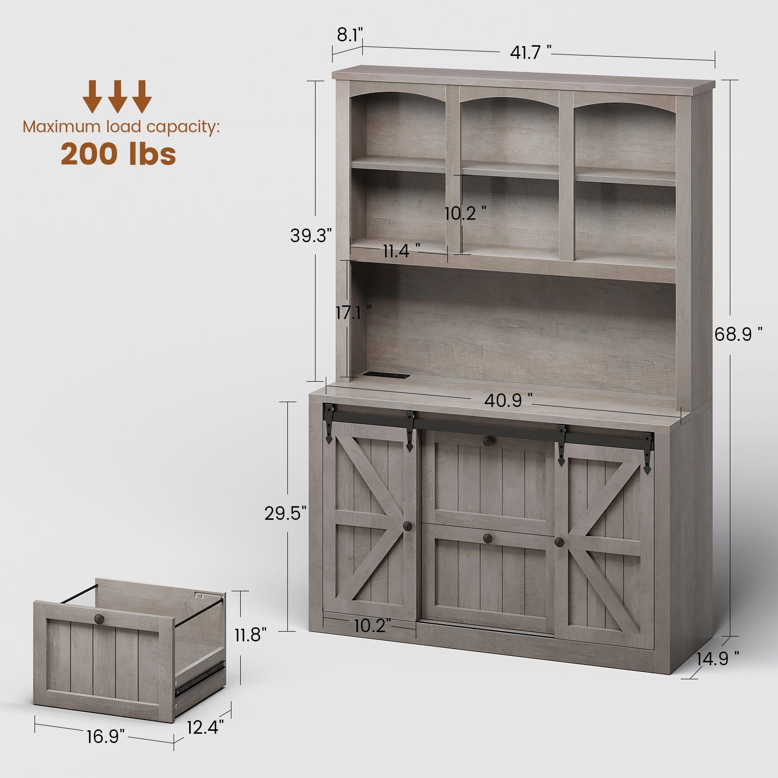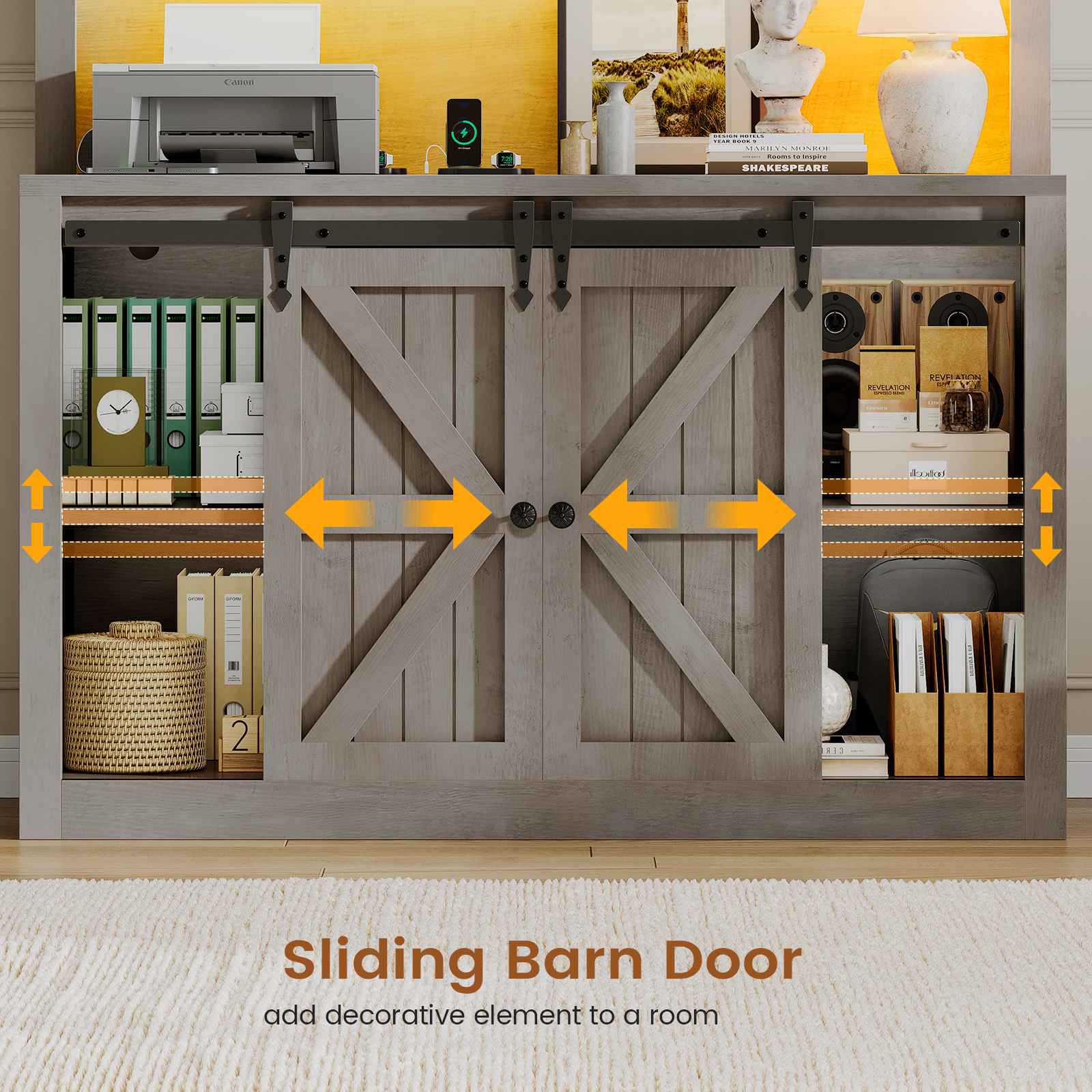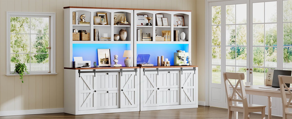 【Ample Storage for Your Home Office】41" W x 14.9" D x 68.9" H filing cabinet is the perfect storage solution. The farmhouse file cabinet keeps your office organized with two drawers for important documents and open shelves for displaying books or other home office items. There's plenty of space for all your essentials—printer,files, supplies, and equipment. 【2 Drawer File Cabinet】The lateral file cabinet with 2 drawer file keeps hanging letter, legal, A4 size hanging file folders or other home office items. There is 3 adjustable space of drawer and you can choose file hanging bar to hold legal size, letter size or A4 size. This file cabinets 2 drawer is perfect for home office, workplace to keep your files at close. 【Barn Door Cabinet & LED Light】 This file cabinet features a sliding barn door design that effectively keeps dust out while adding a stylish decorative touch to your home. The RGB LED strip adapts to your different needs by remote control via APP. Choose warm tones for focused work, or switch to vibrant colors to create an immersive gaming atmosphere. 【File Cabinet with Charging Station】The filing cabinets for home office is equipped with 2 outlet and 1 USB port and 1 type c to power up to 4 devices at the same time. Power outlet allows you to charge cell phones, tablets, notebooks, etc. This 41 inch long desktop offers a spacious workstation for your home office. 【Farmhouse Style】Elevate your home office with this stylish and farmhouse filing cabinet. Create a one-of-a-kind work environment when you add the sophisticated charm and design of this executive desk from the collection. Drawers and 2 door cabinet storage provide convenient organization for a clutter-free workspace. 【Easy to Assemble】Clearly-labeled parts and illustrated instructions make this filing cabinet a breeze to assemble. It’s perfect to double as a printer stand in your home office or your study. An anti-tip kit is included, so you can secure the file cabinet to the wall for added safety. If your file cabinet arrives damaged, scratched or missing part, please feel free to contact us, we will send you free replacement or offer a partial refund.