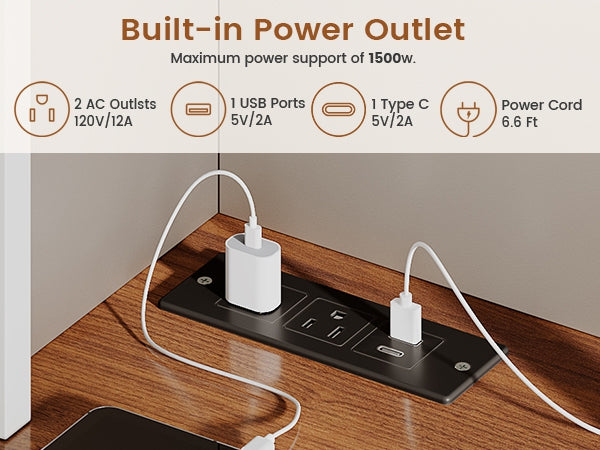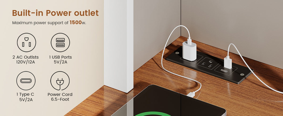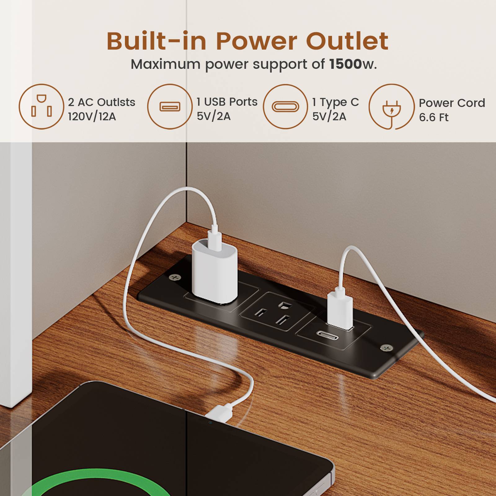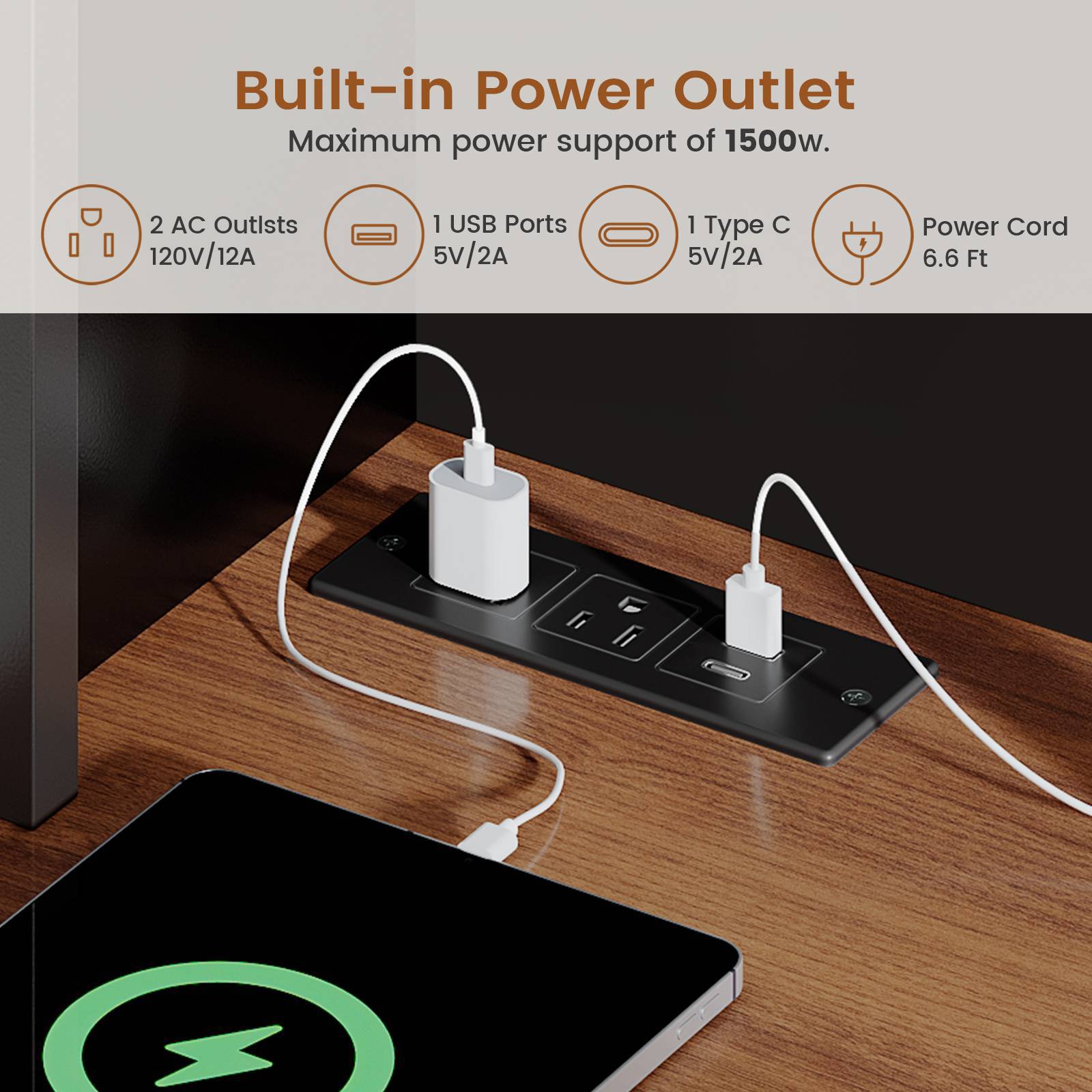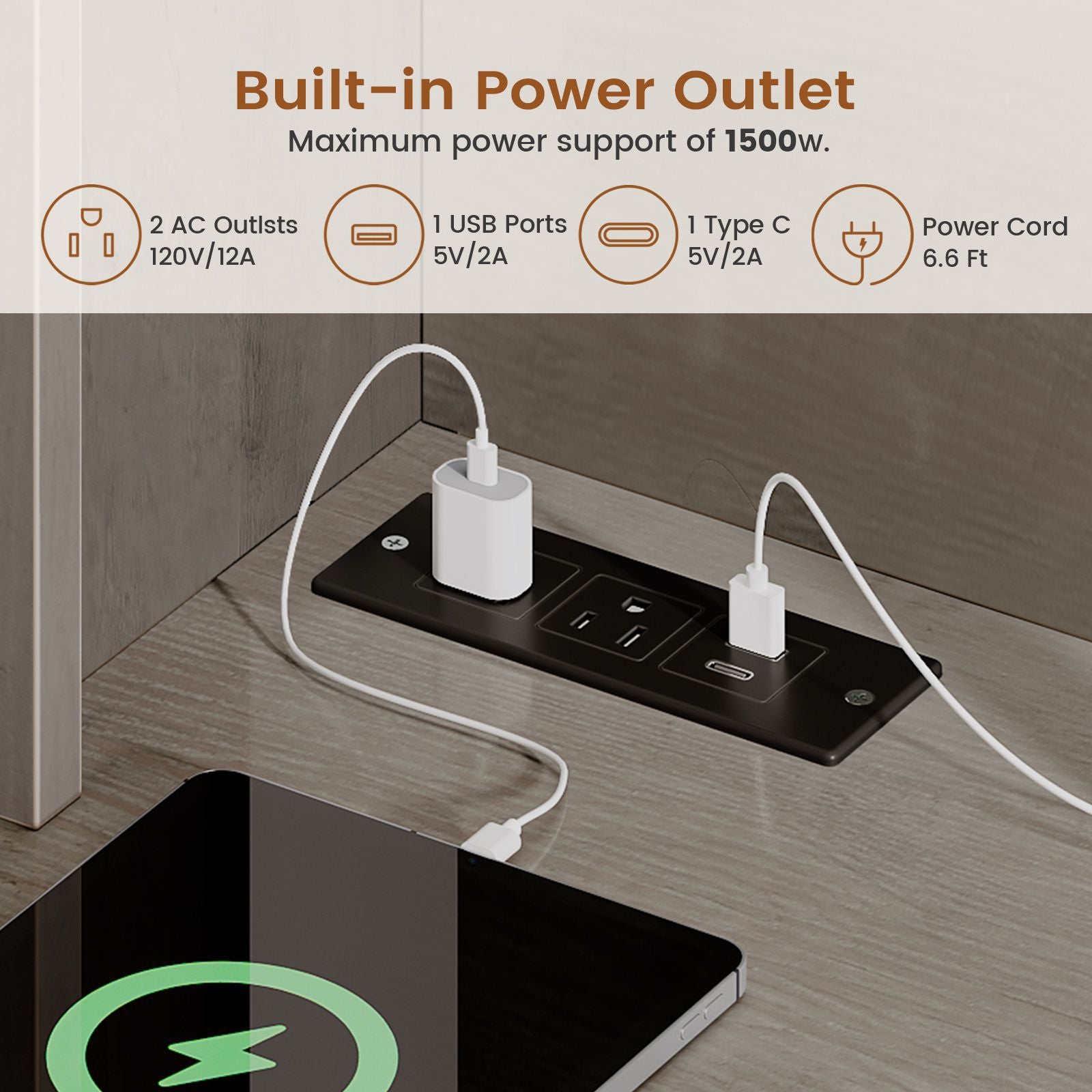 • Built-in Charging Station: Features 2 outlets, 1 USB, and 1 Type-C port to charge up to 4 devices simultaneously.