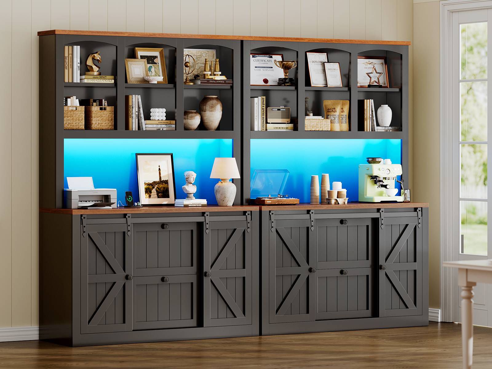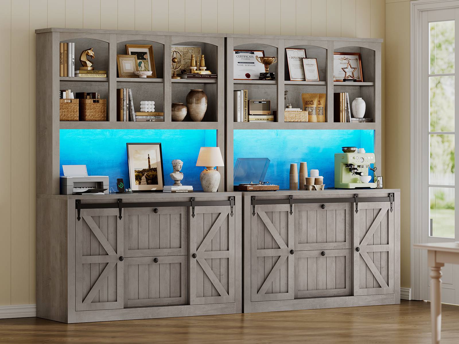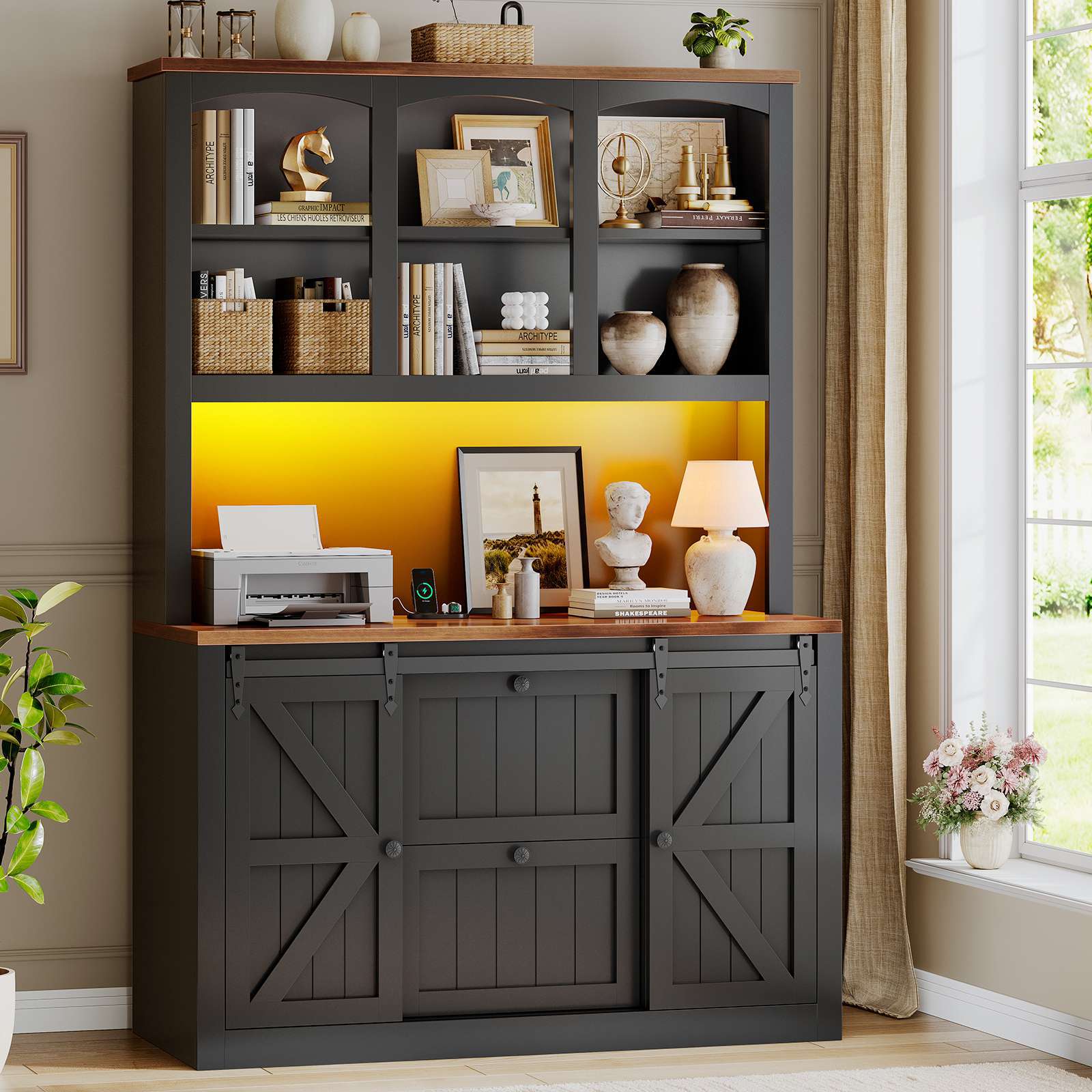 •【Barn Door Cabinet & LED Light】 This file cabinet features a sliding barn door design that effectively keeps dust out while adding a stylish decorative touch to your home. The RGB LED strip adapts to your different needs by remote control via APP. Choose warm tones for focused work, or switch to vibrant colors to create an immersive gaming atmosphere.
