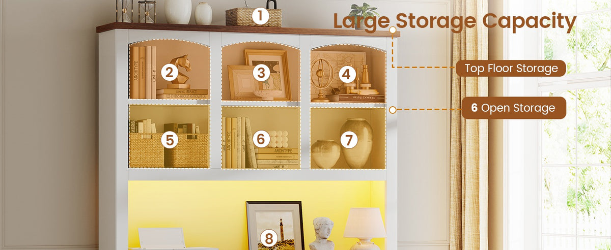 • Ample Storage: 41"W x 14.9"D x 68.9"H cabinet with 2 drawers and 6 open shelves.