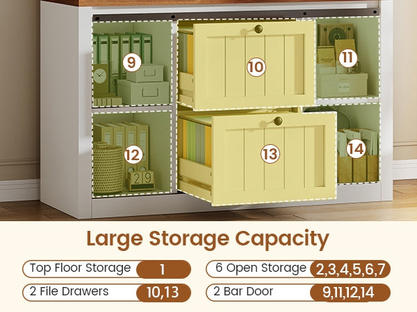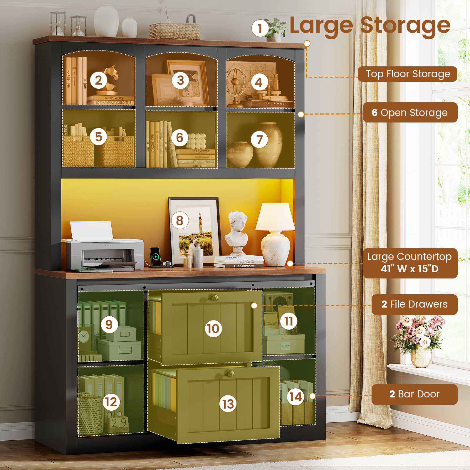 •【Ample Storage for Your Home Office】41" W x 14.9" D x 68.9" H filing cabinet is the perfect storage solution. The farmhouse file cabinet keeps your office organized with two drawers for important documents and open shelves for displaying books or other home office items. There's plenty of space for all your essentials—printer,files, supplies, and equipment.