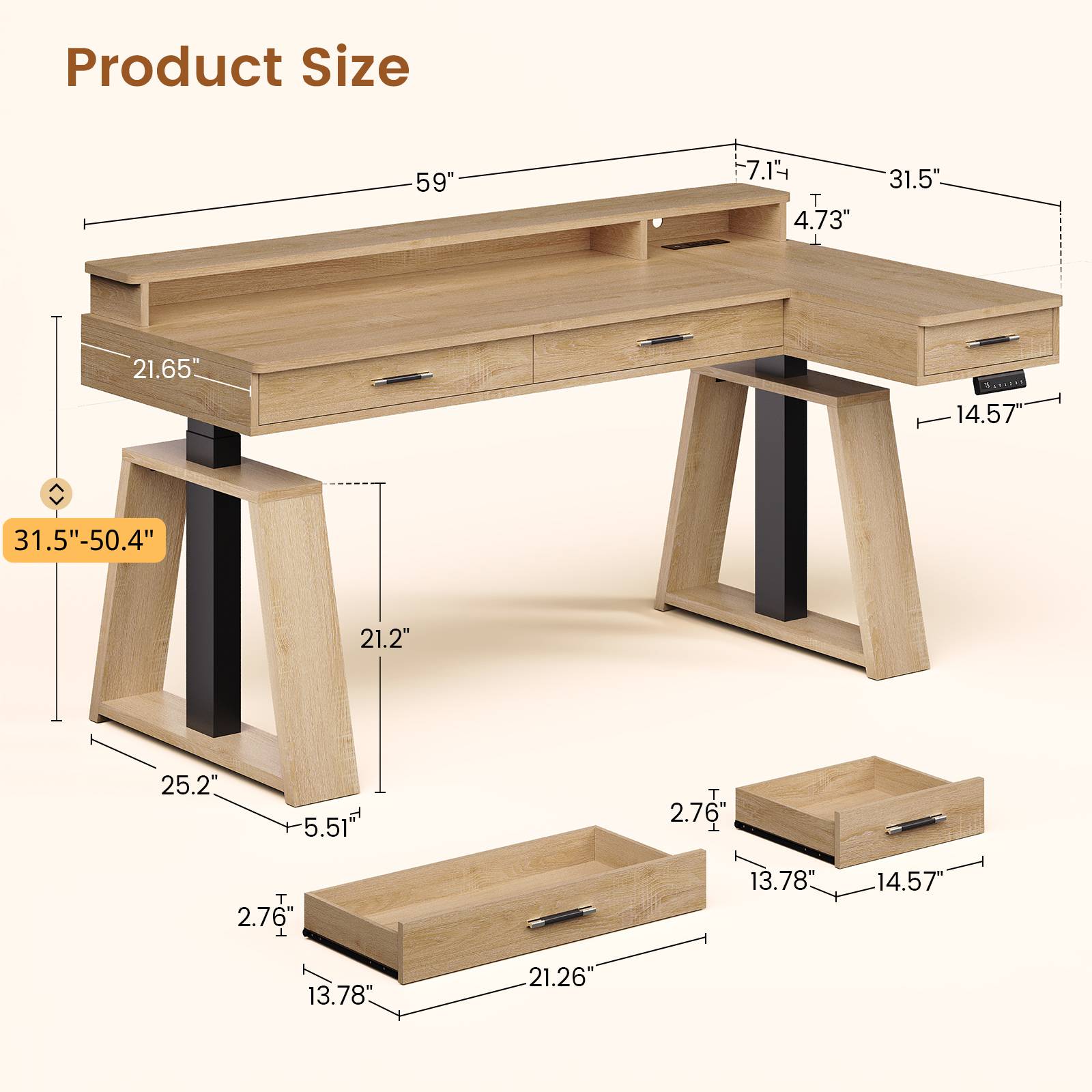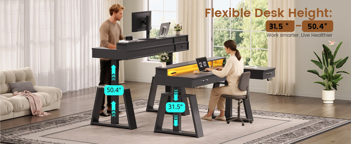 • Adjustable Height: Electric L-shaped desk, 31.5"–50.4", 3 customizable presets.