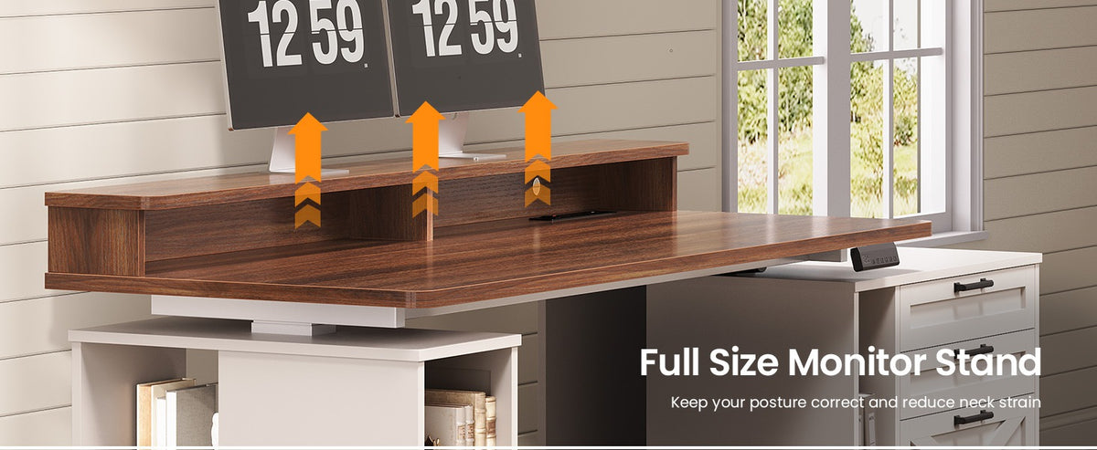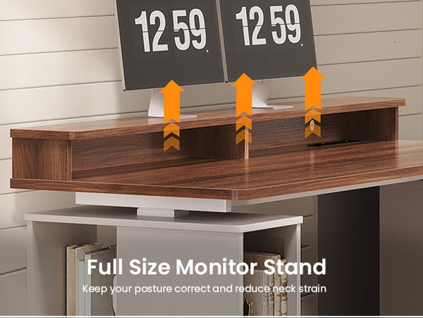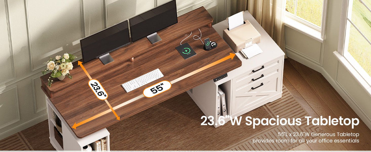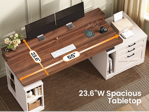 • Spacious Ergonomic Desktop: 55" x 23.6" farmhouse desktop with monitor stand.