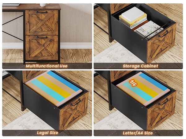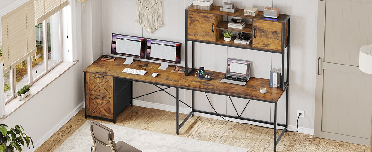 This office desk with 2 file drawers can hold Letters or place home or office items. 2 storage doors can hold your books, files, or other home office items. A storage cabinet door, and a top hutch can help you quickly and efficiently classify storage. The top hutch offers ample storage space for books, files, and other supplies.