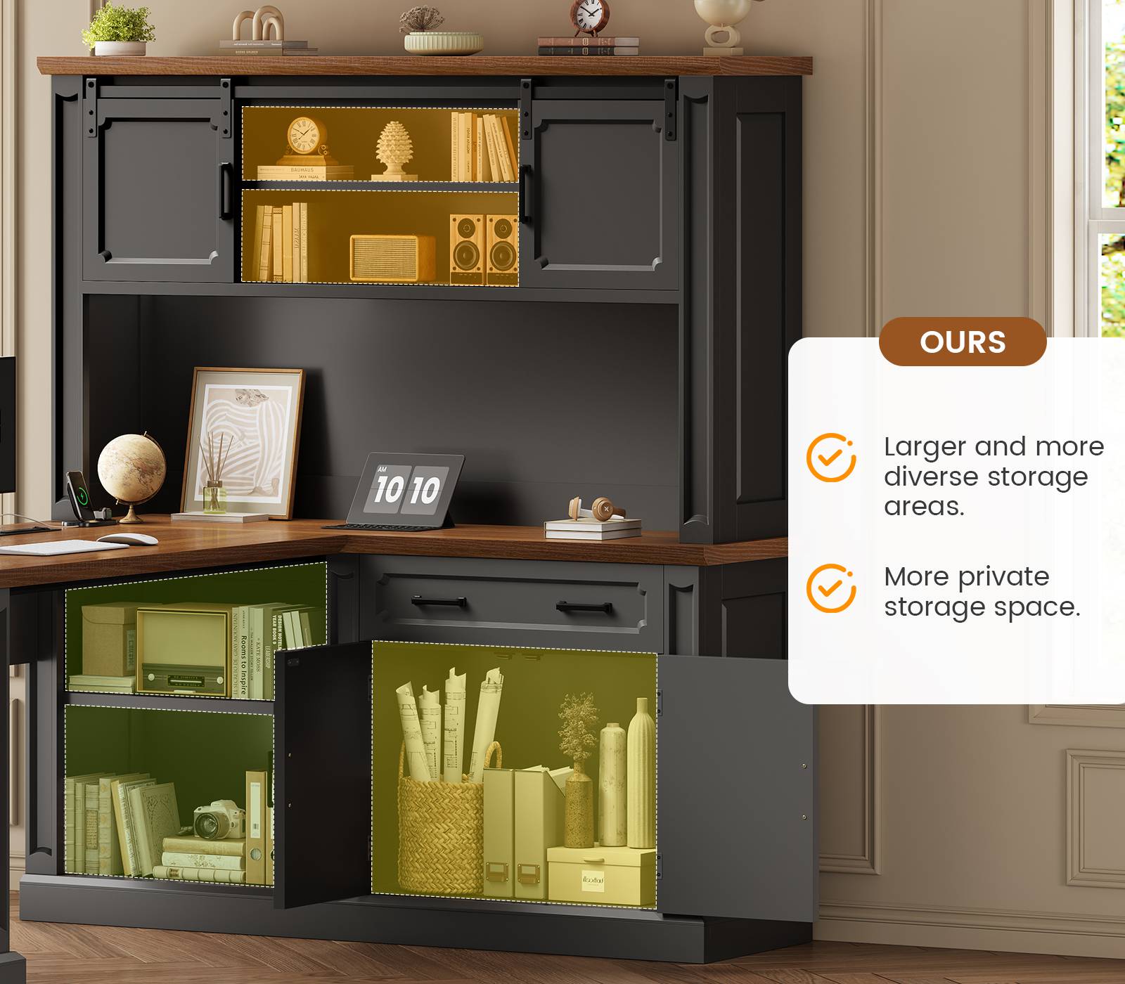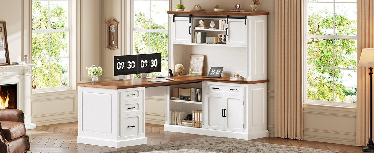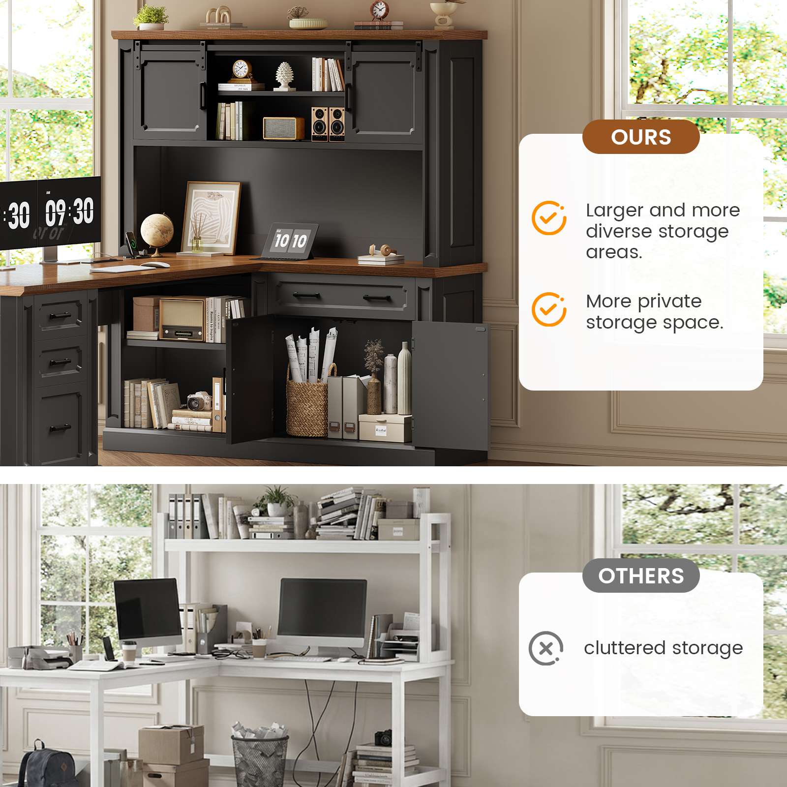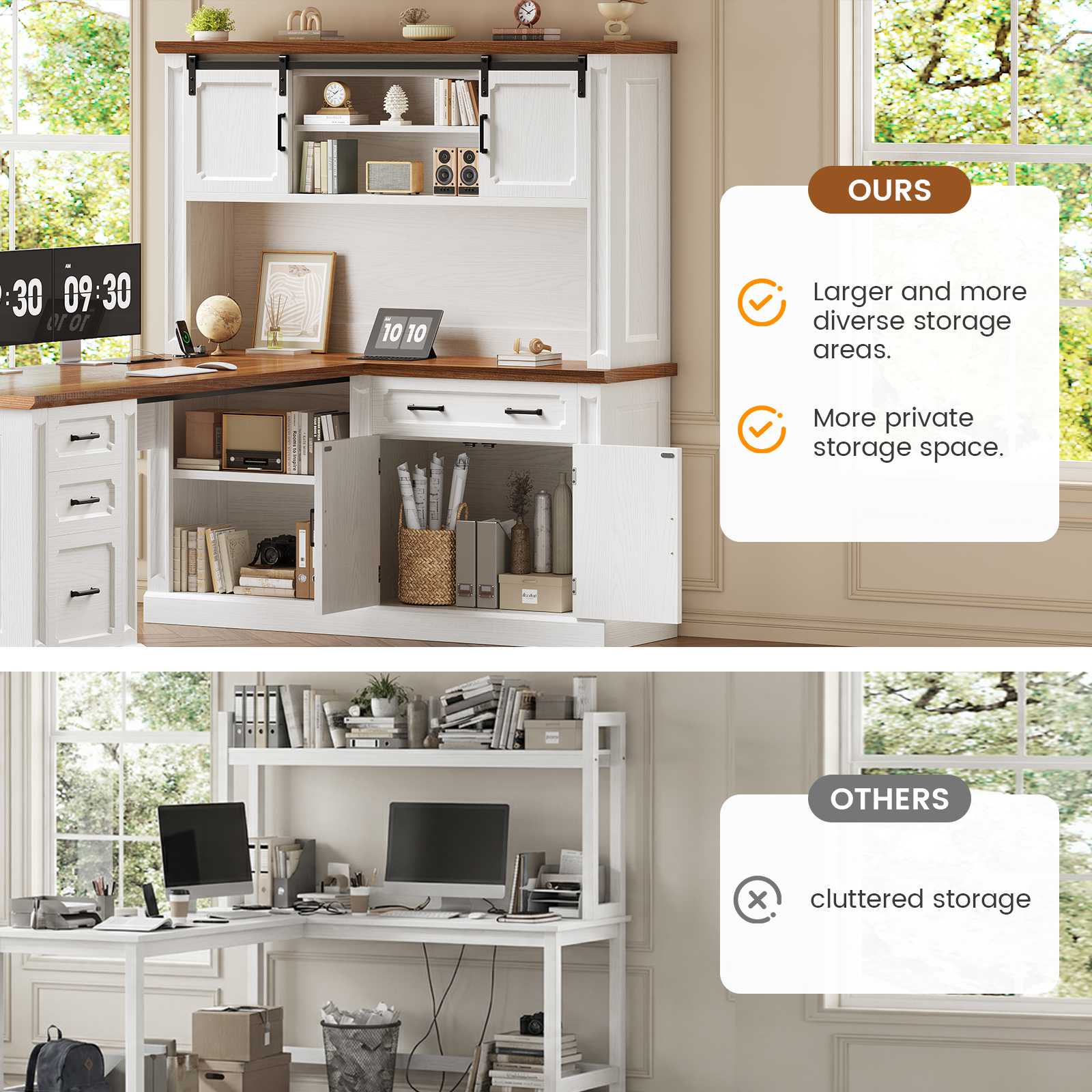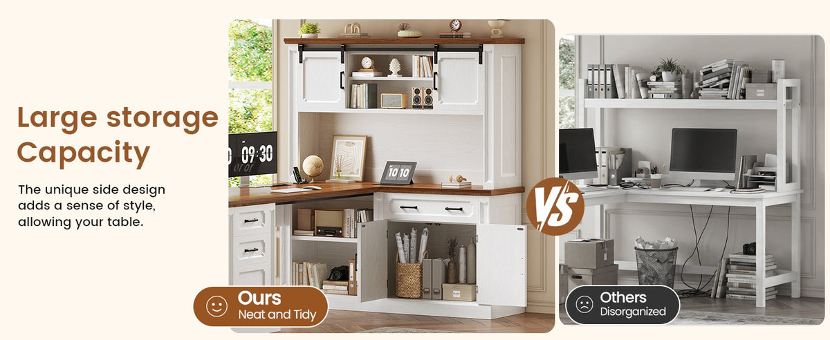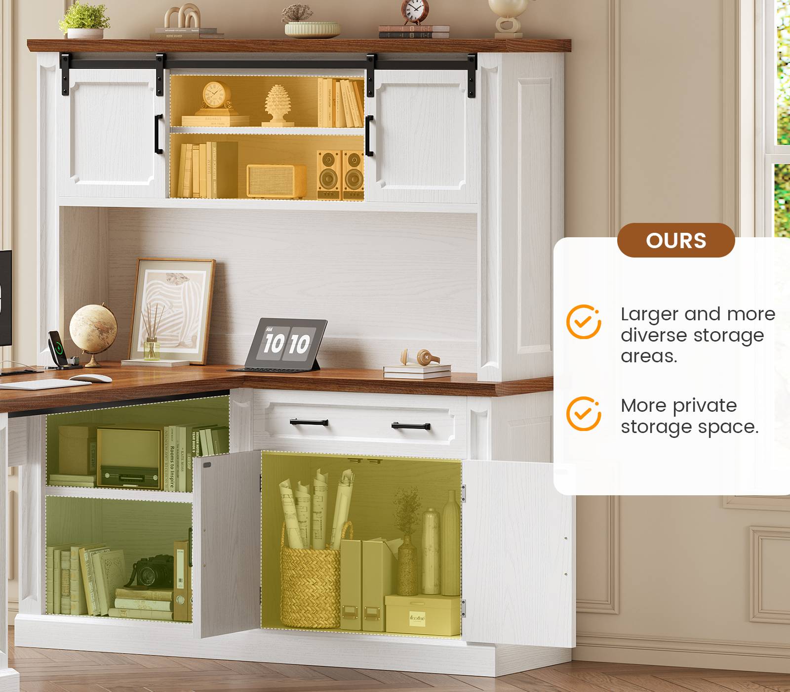 •【Sturdy and durable table top】This farmhouse L-shaped desk with hutch is made of high-quality board material, making it sturdy and durable; the product can support up to 200 pounds, effectively extending the life of the desk.
