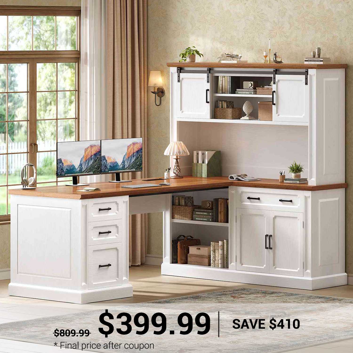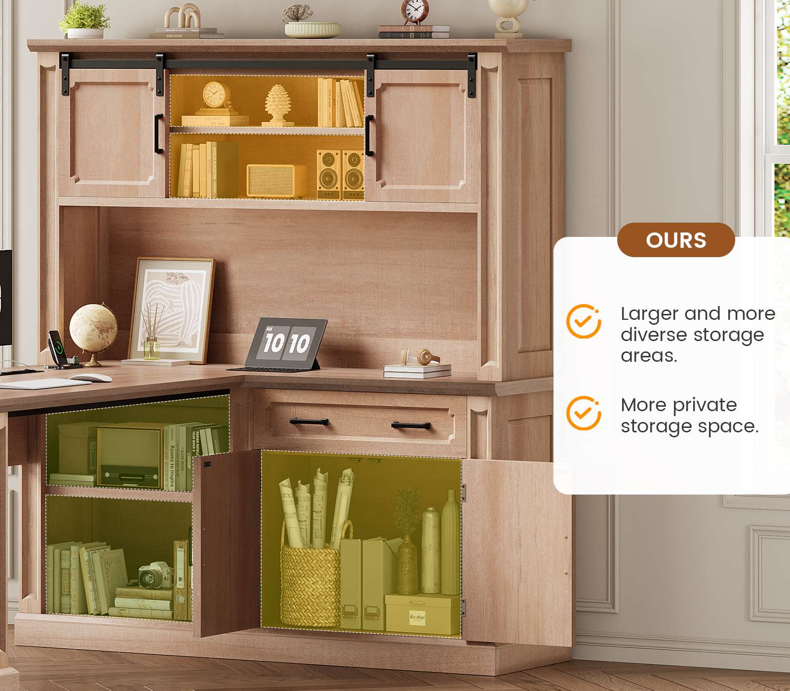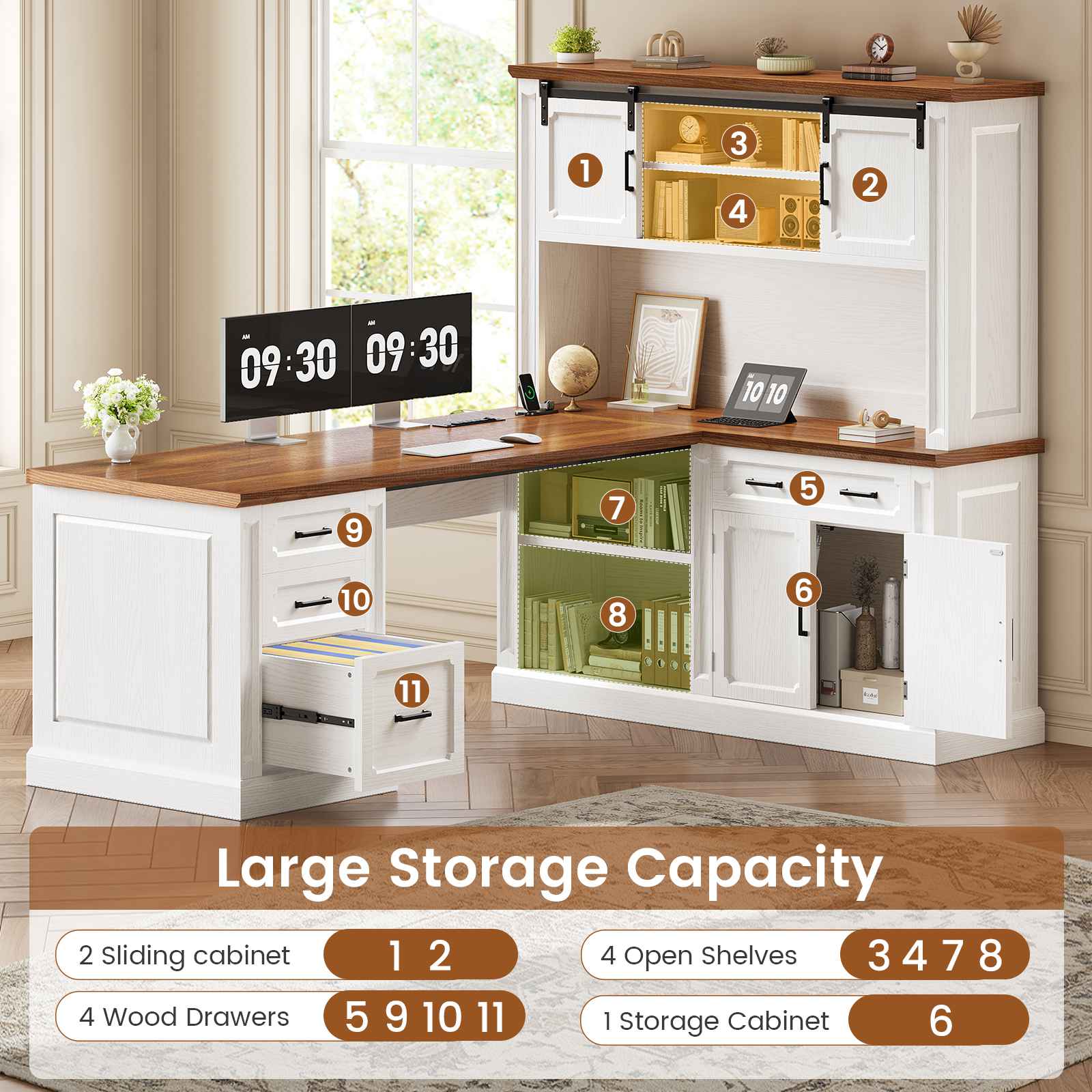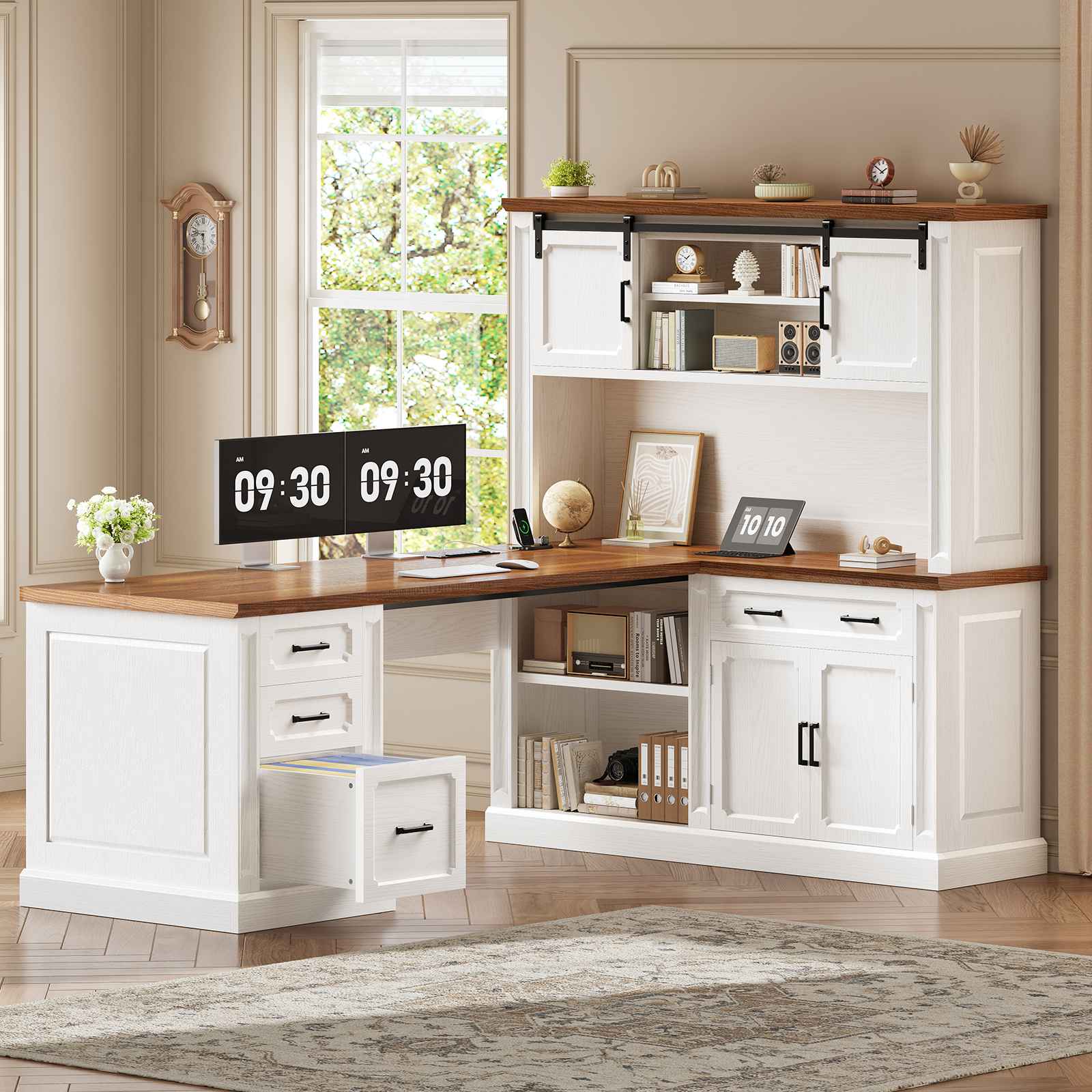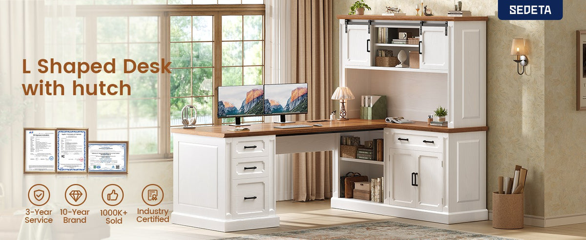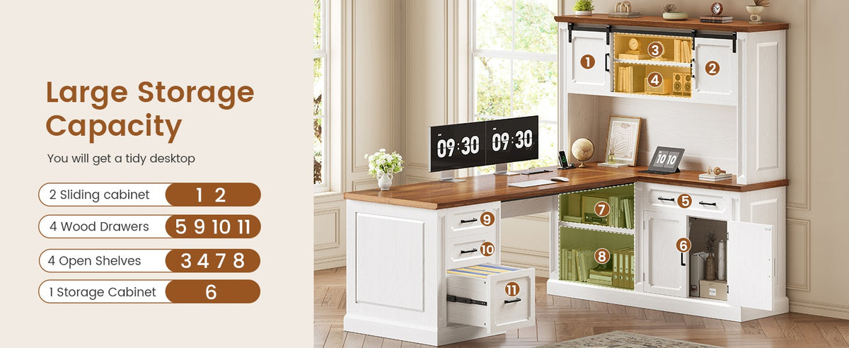 •【Sturdy and durable table top】This farmhouse L-shaped desk with hutch is made of high-quality board material, making it sturdy and durable; the product can support up to 200 pounds, effectively extending the life of the desk.