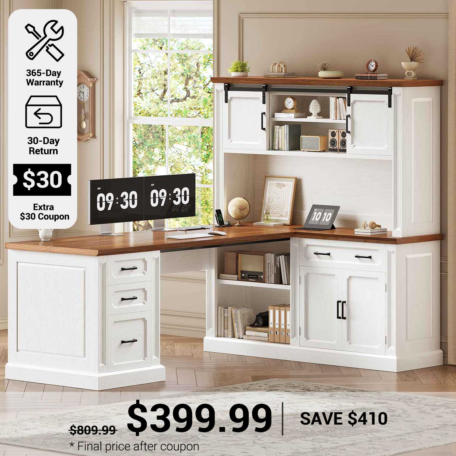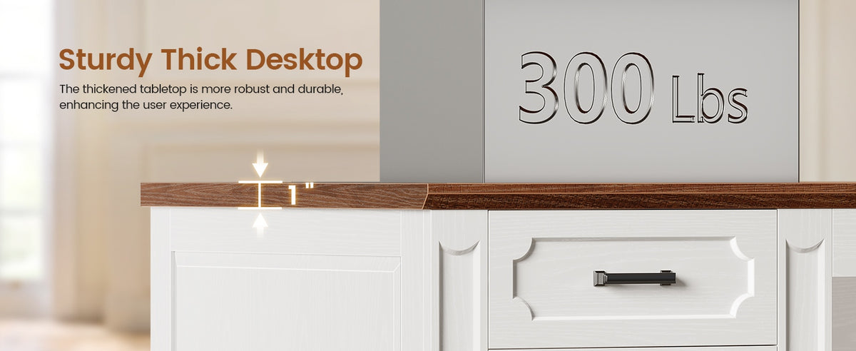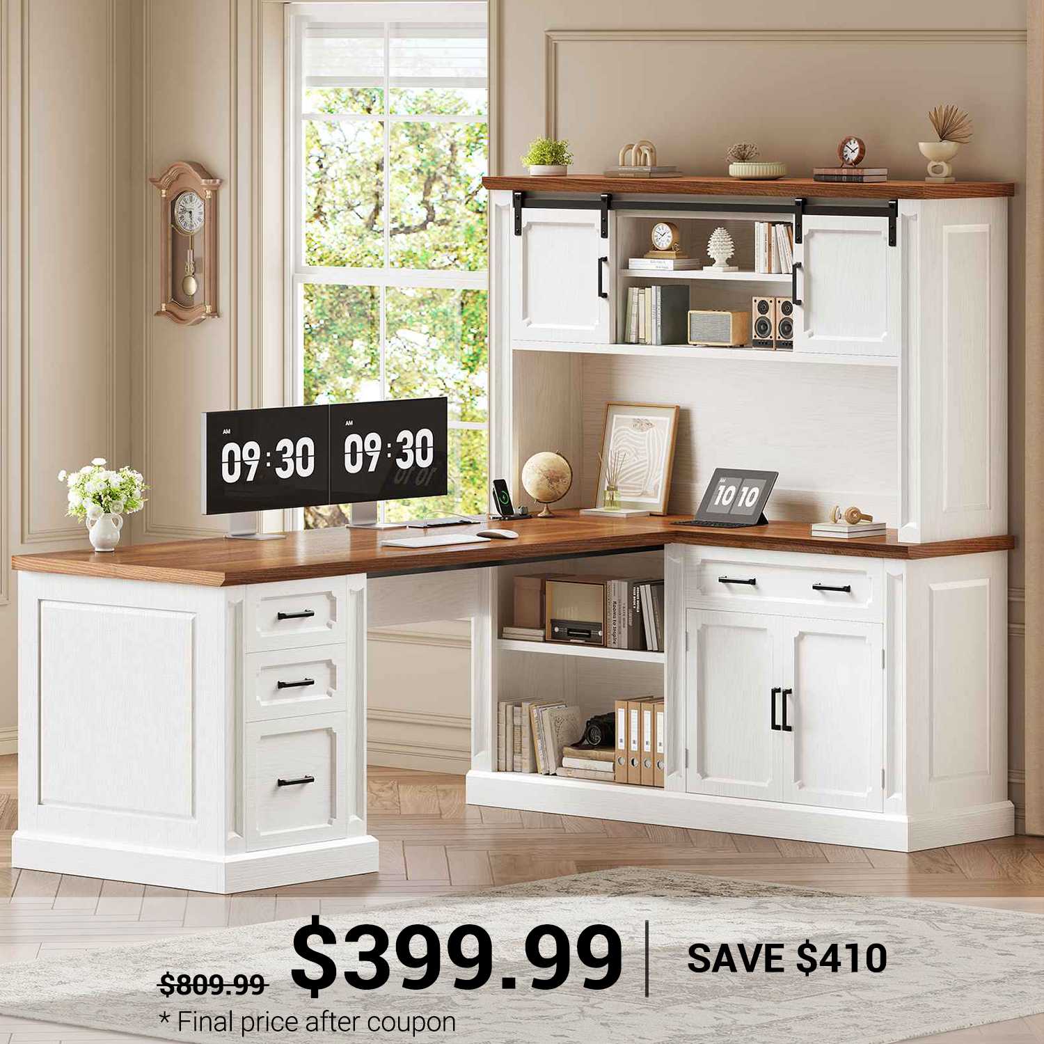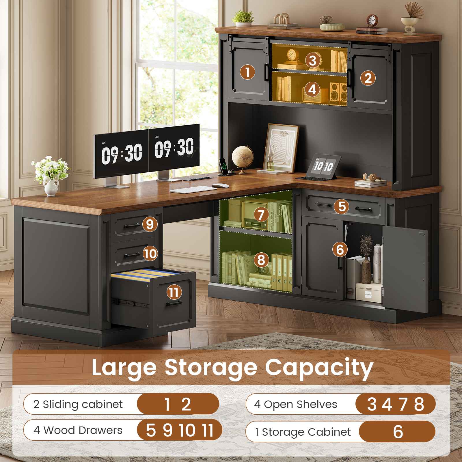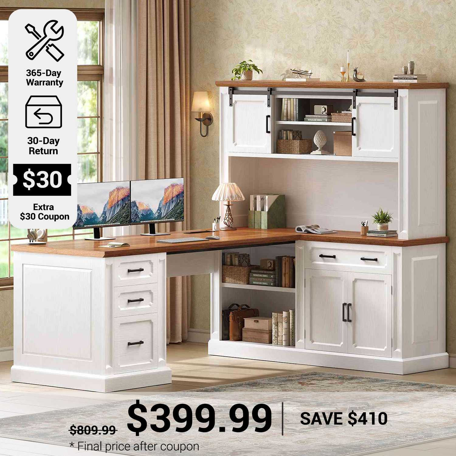 •【Sturdy and durable table top】This farmhouse L-shaped desk with hutch is made of high-quality board material, making it sturdy and durable; the product can support up to 200 pounds, effectively extending the life of the desk.