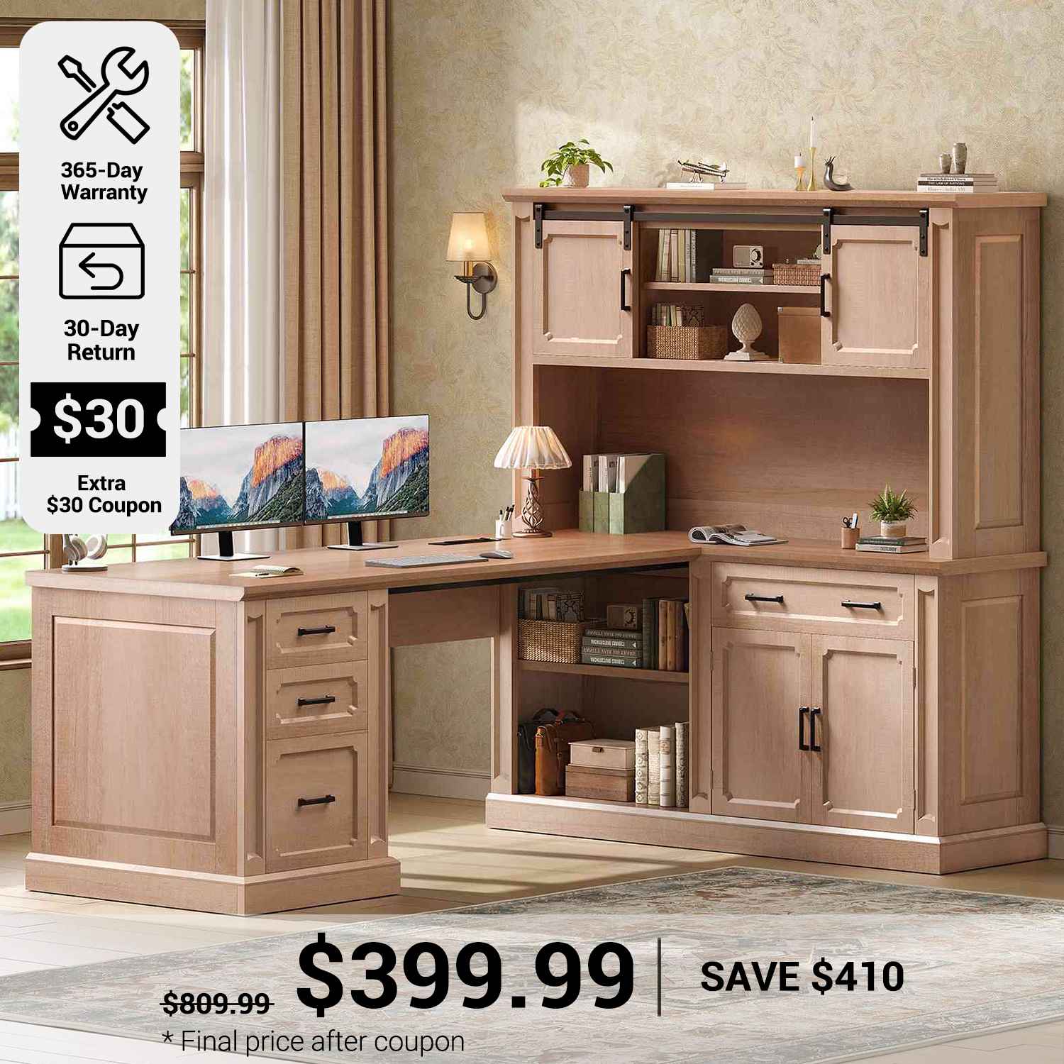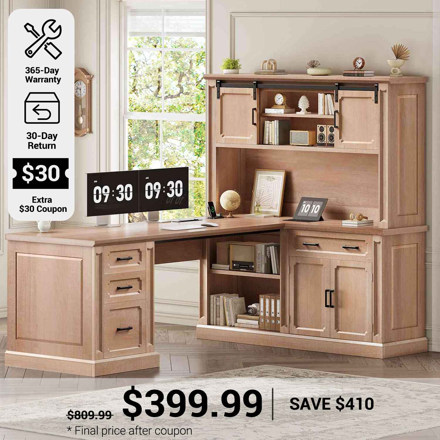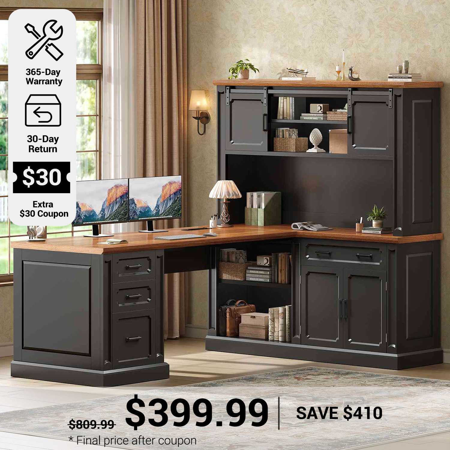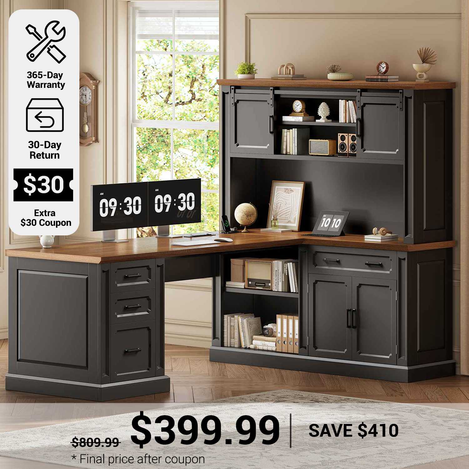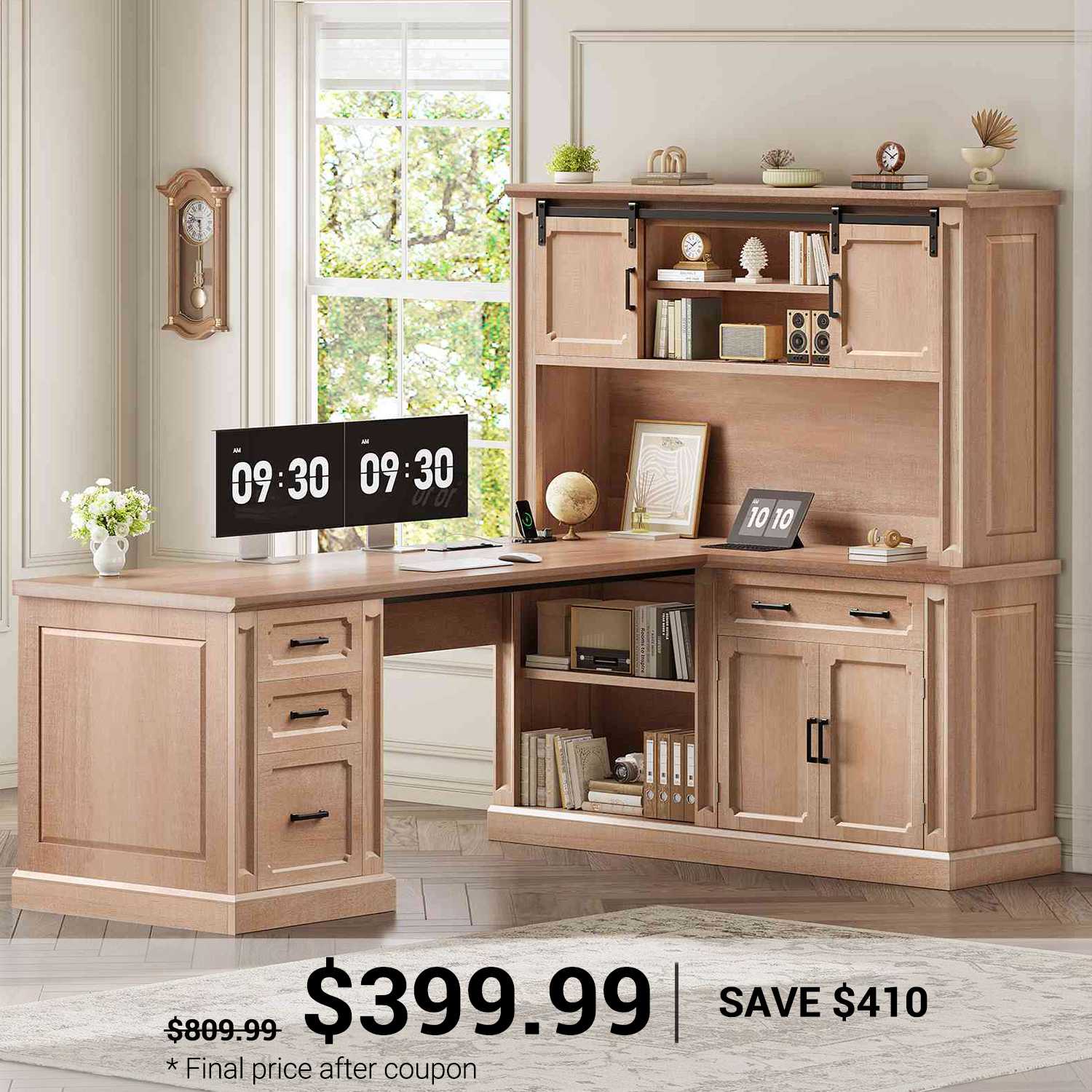 •【Sturdy and durable table top】This farmhouse L-shaped desk with hutch is made of high-quality board material, making it sturdy and durable; the product can support up to 200 pounds, effectively extending the life of the desk.