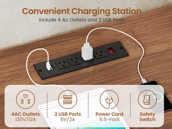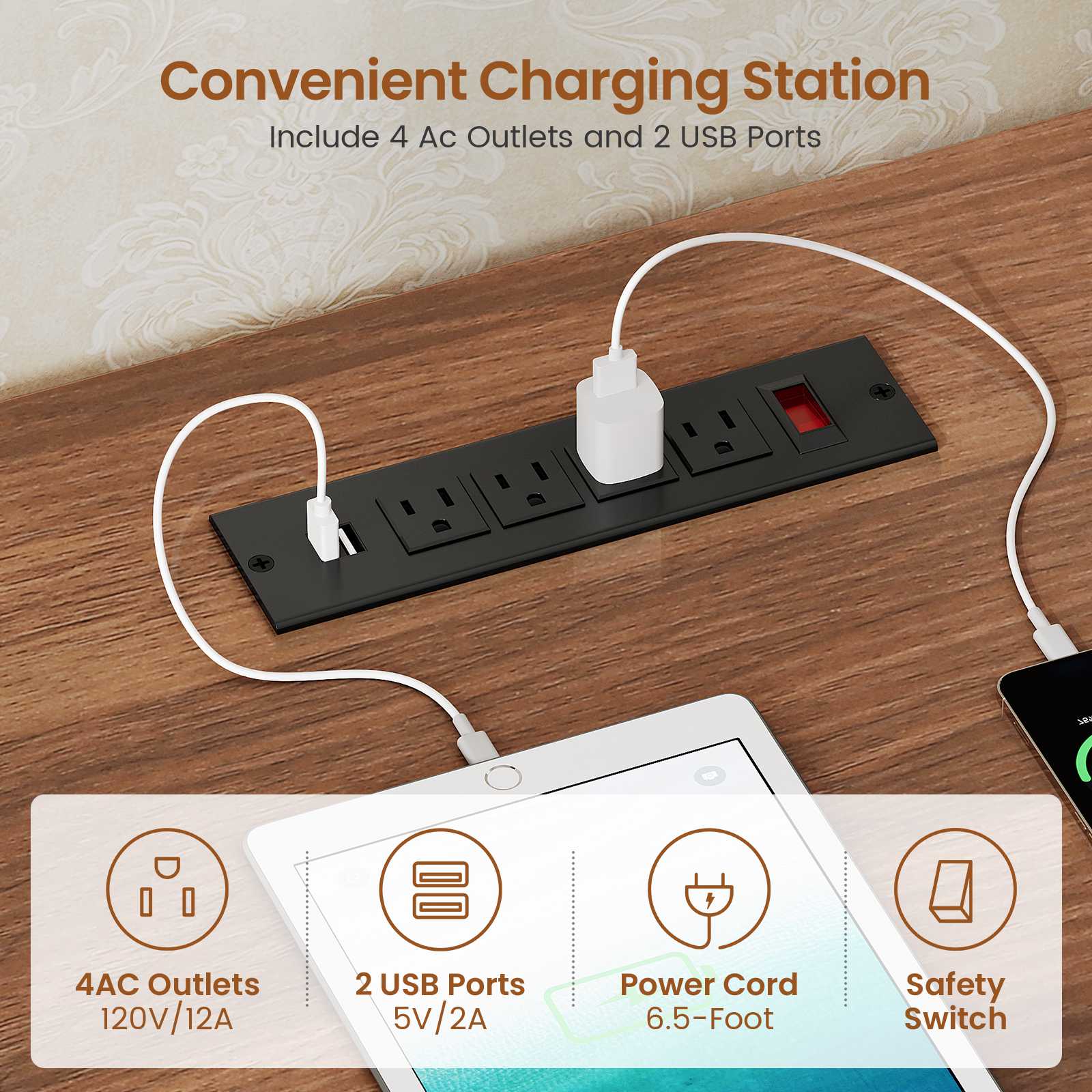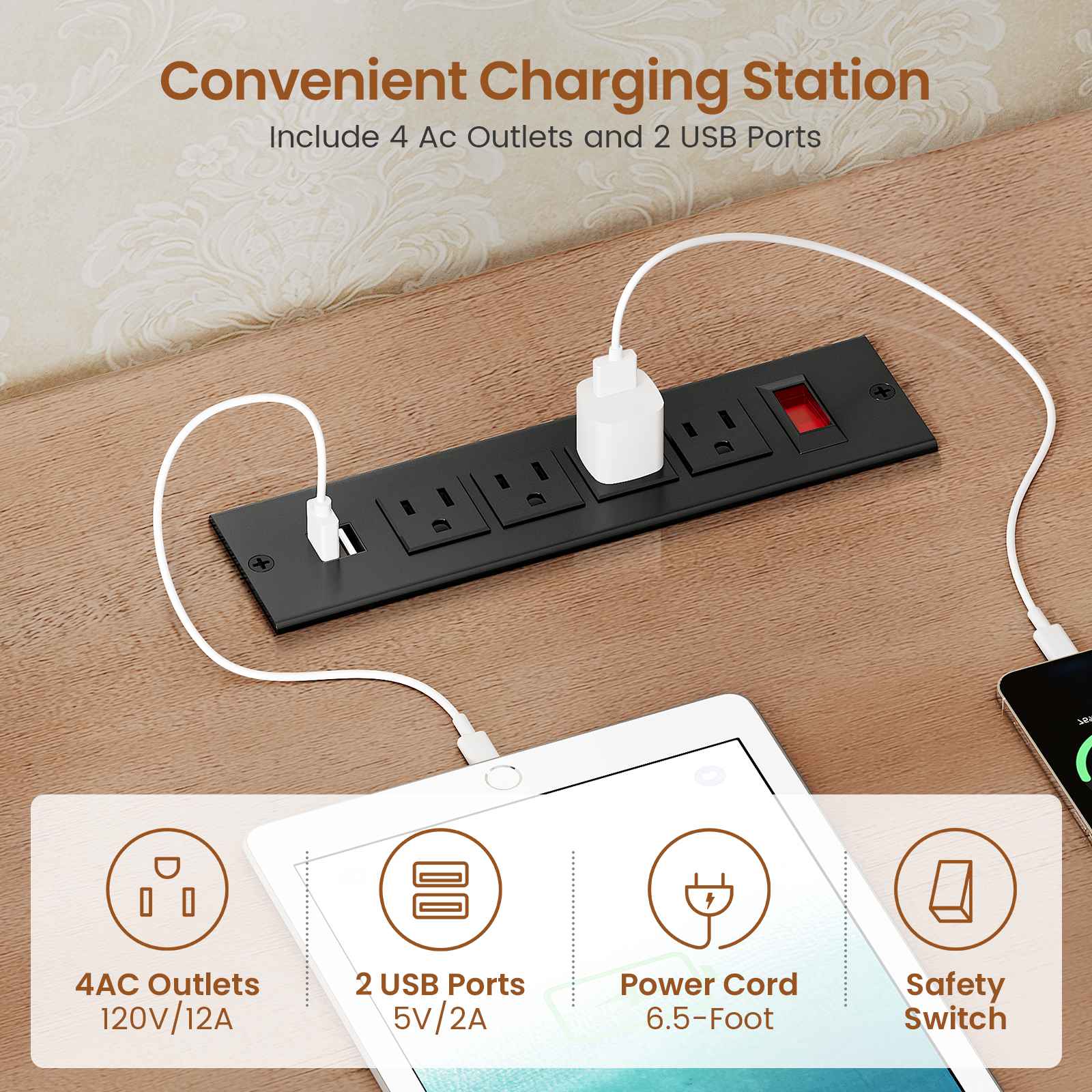 •【Charging Port】Our charging station includes 4-Outlet & 2 USB Ports to provide power for up to 6 devices simultaneously. Also includes an on-off switch, thanks to the on-off switch, one-button power off to ensure safe electricity use, which strengthens security. Power outlet allows you to charge cell phones, tablets, notebooks, etc.