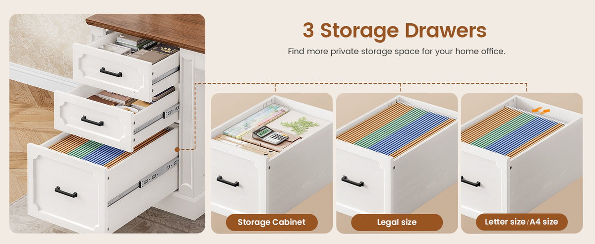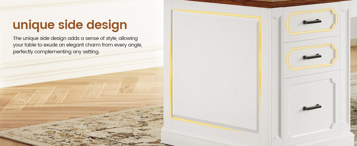•【Farmhouse Desk】Featuring vintage farmhouse design with elegant wood grain, it adds warm, cozy charm to your space. Crafted from quality materials using distressed techniques, its detailed design blends with various styles and ensures lasting durability.