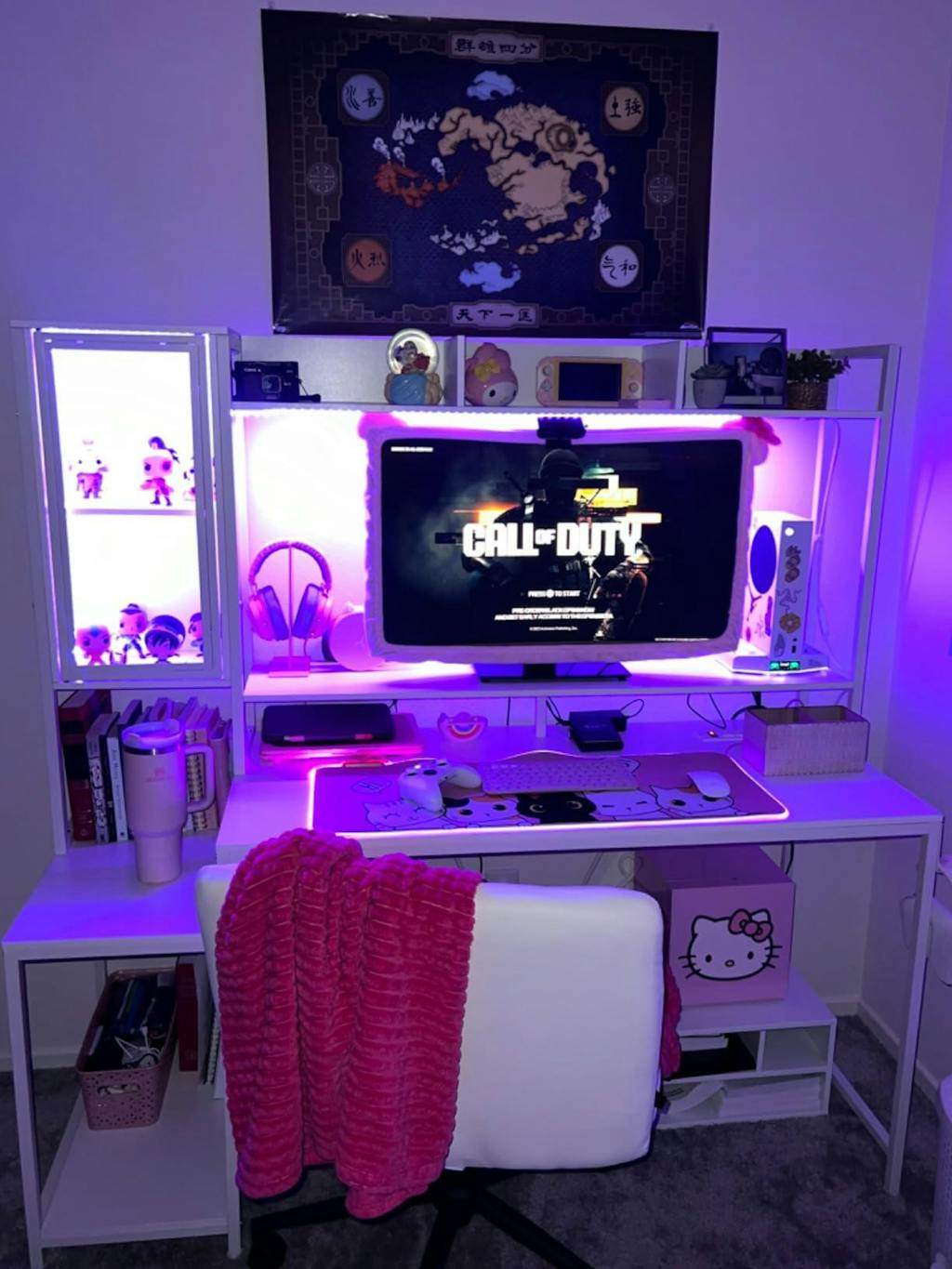 Top hutch's 3 compartments and 2 glass display cabinets provide tons of storage space for not only books, photos, and plants, but also your gaming collection and electronic devices. Computer desk with printer stand and CPU stand provides additional storage space for gaming consoles and other large equipment.