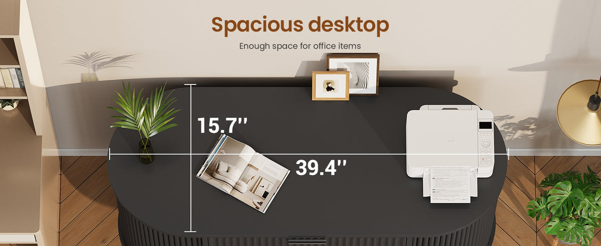 • Ample Storage: Curved sliding doors offer extra space for office supplies.