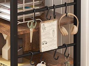 The file cabinet is equipped with 6-layer open storage shelves, providing ample storage space for office supplies, allowing you to arrange files and decorations in a stylish way. Equipped with 8 hooks on the side, you can hang briefcases, mugs, headphones, umbrellas, etc.