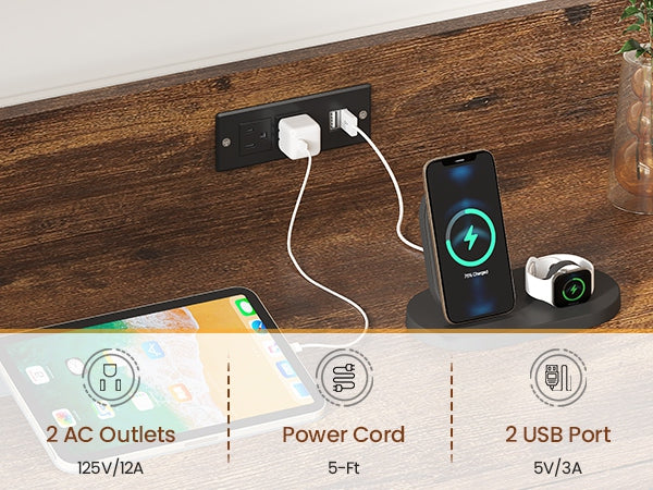 • File Cabinet with Power: 2 sockets and 2 USB ports for 4 devices simultaneously.