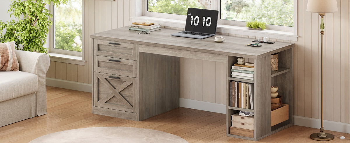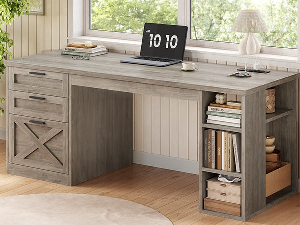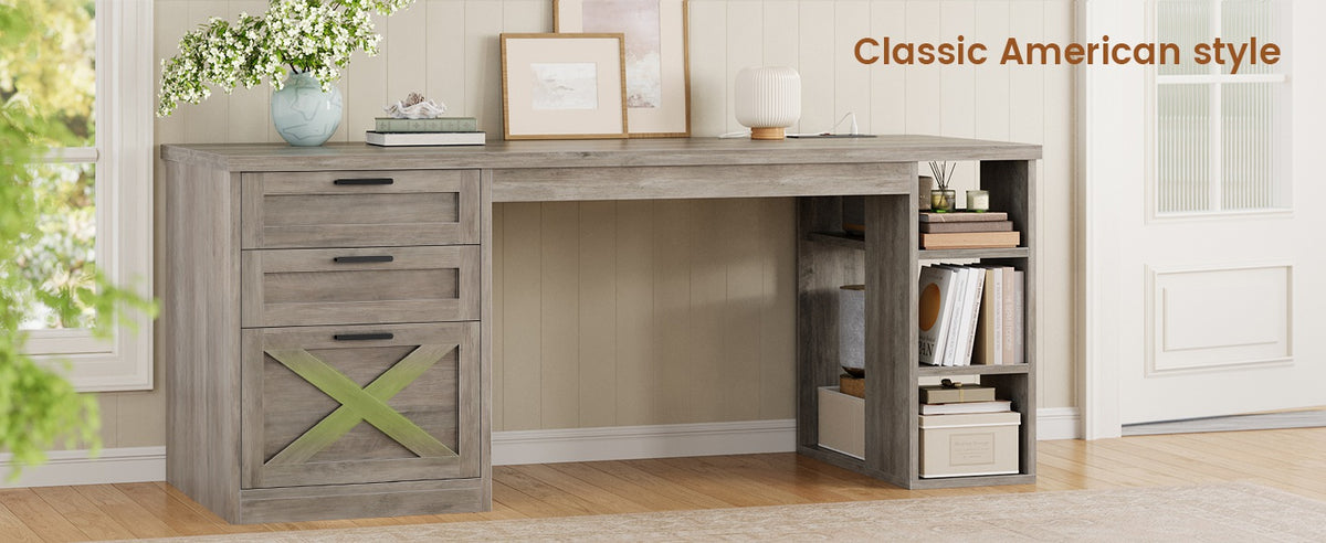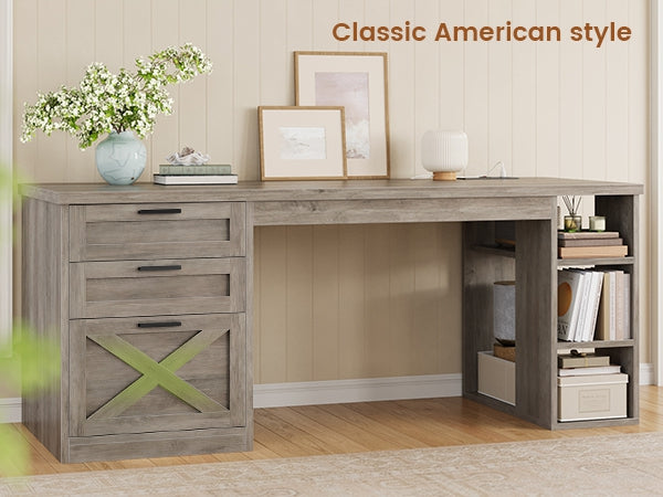 •【Farmhouse style】The drawer design of the office desk creates a classic American style that complements most home decor styles. At the same time, this office desk is also an ideal choice for studying and working from home, with diverse uses.