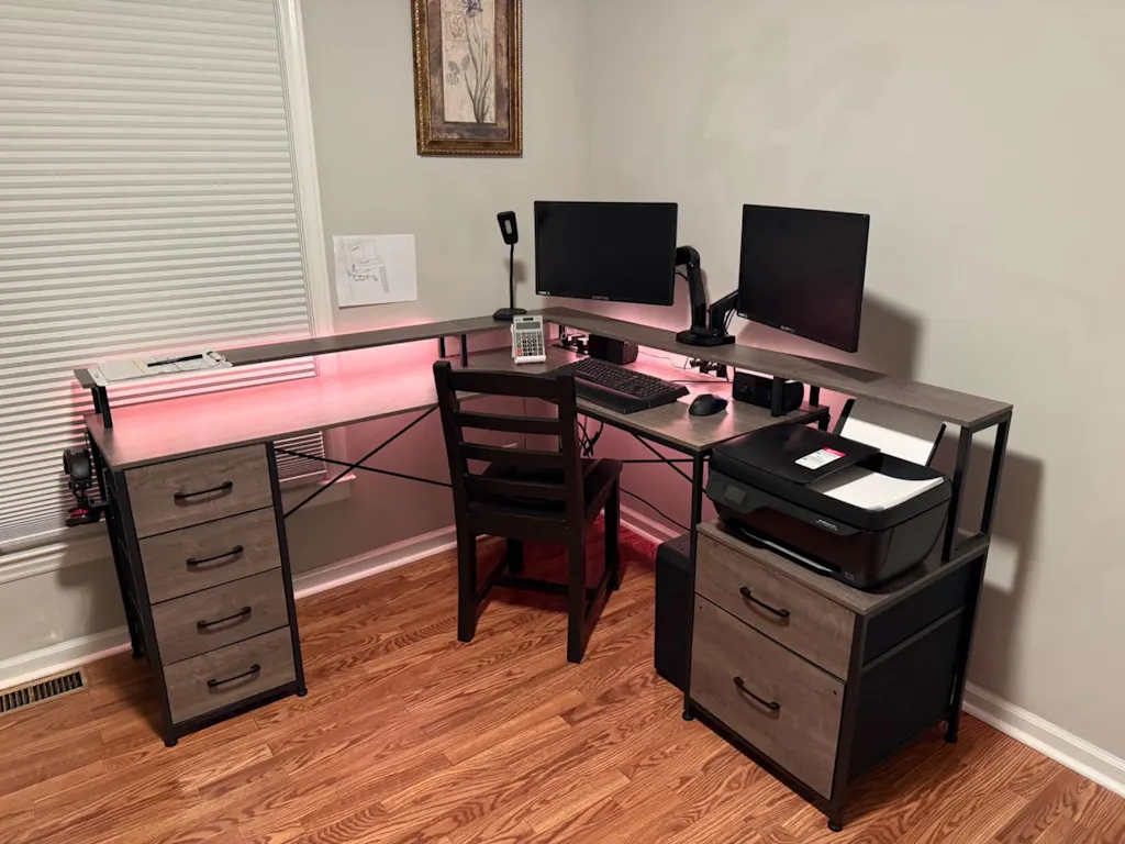 L Shaped Gaming Desk with Led Lights