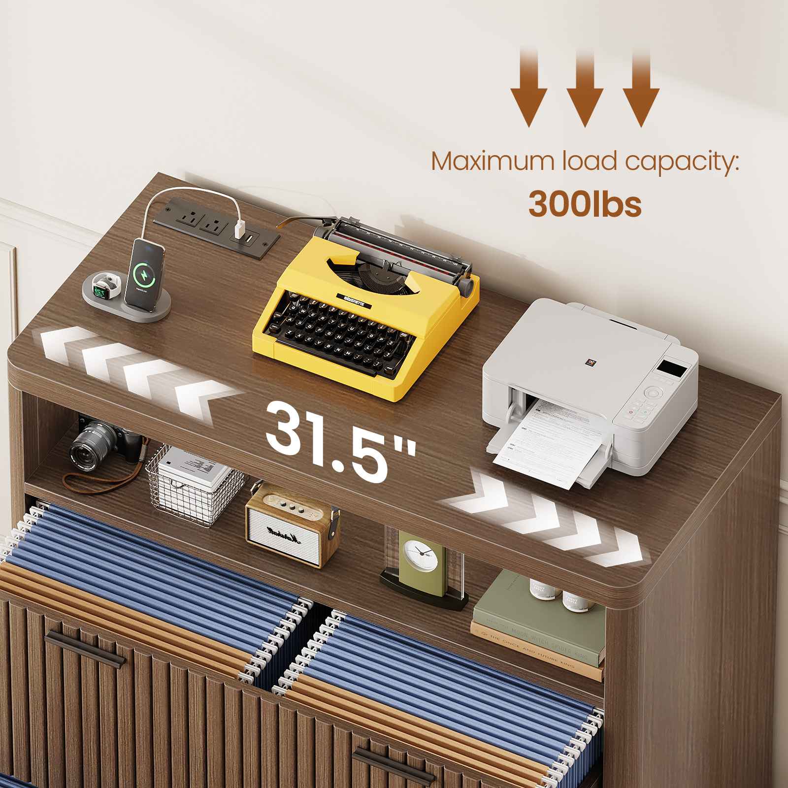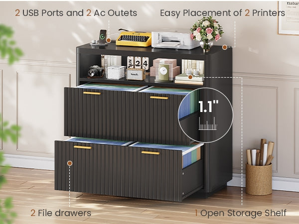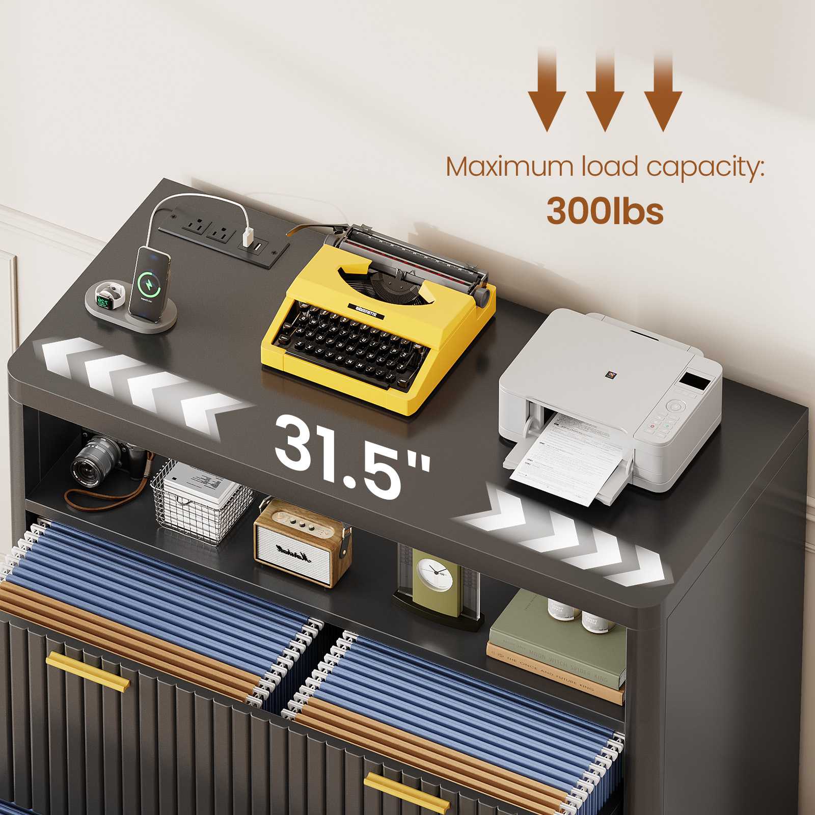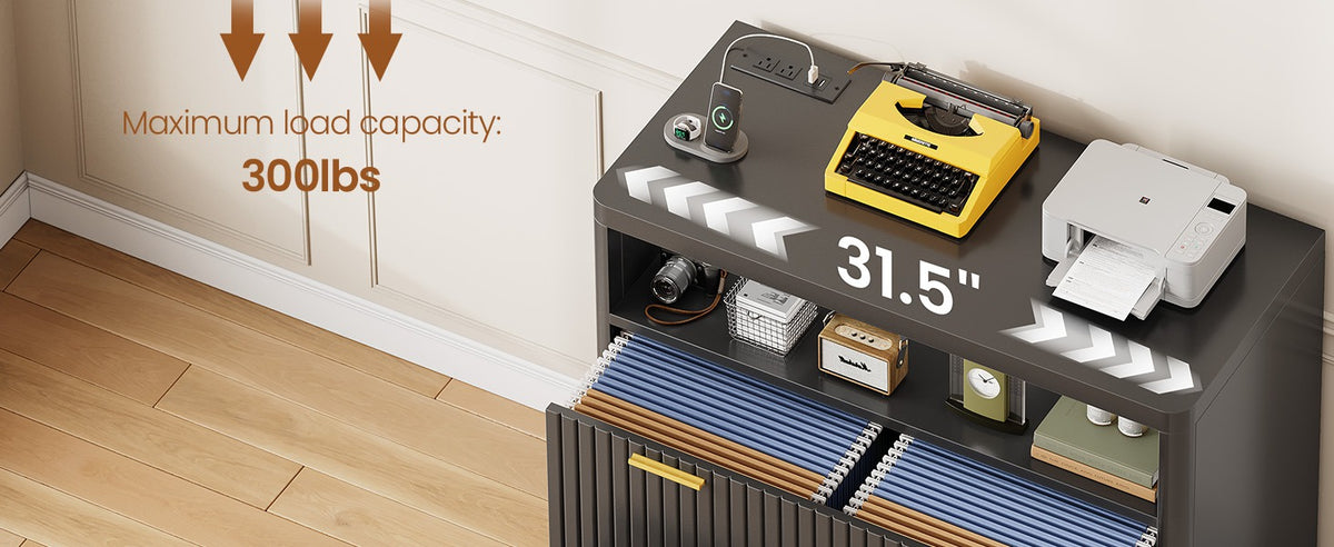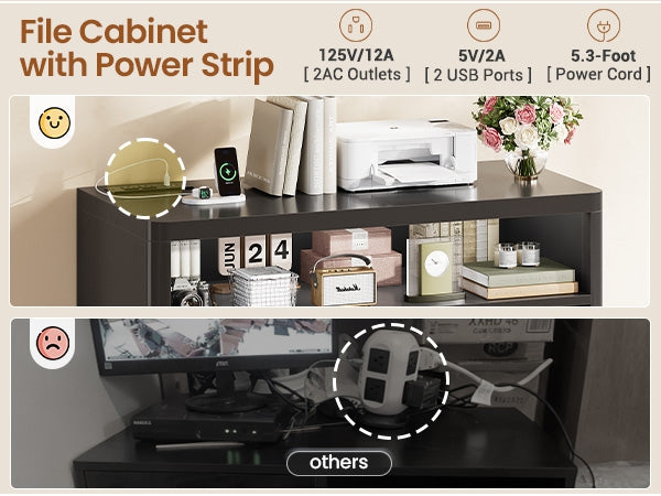 •【Charging Station】The file cabinets for home office is equipped with 2 sockets and 2 USB ports to power up to 4 devices at the same time. The desktop size of 2 drawer file cabinet is 31.5 inches, which is large enough to use 2 machines at the same time, such as printers, scanners, copiers, laptops or other office electronic devices.