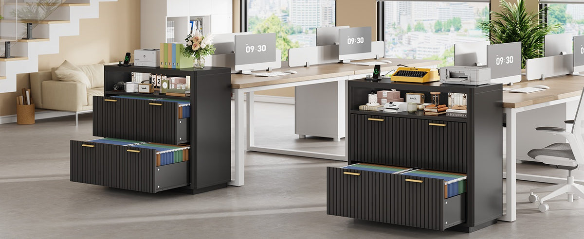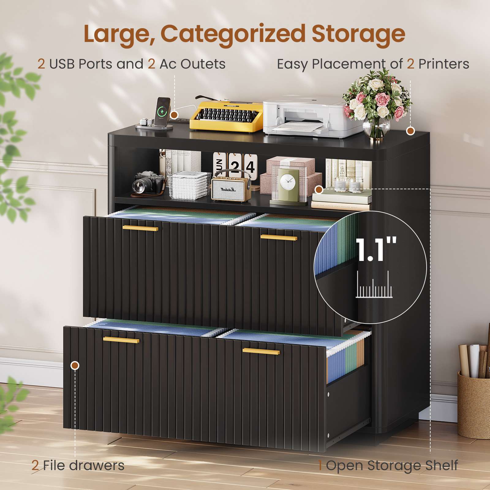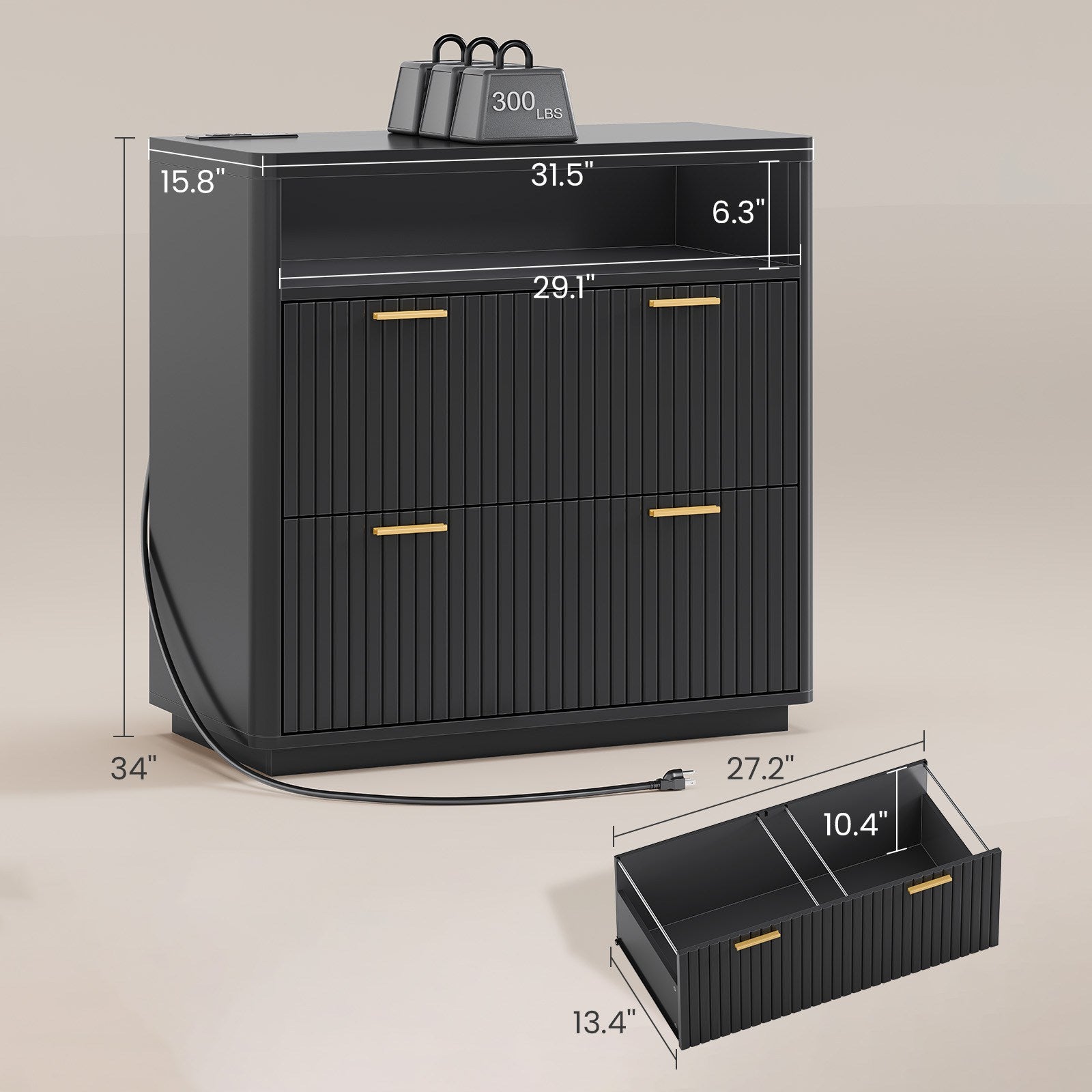 •【Charging Station】The file cabinets for home office is equipped with 2 sockets and 2 USB ports to power up to 4 devices at the same time. The desktop size of 2 drawer file cabinet is 31.5 inches, which is large enough to use 2 machines at the same time, such as printers, scanners, copiers, laptops or other office electronic devices.