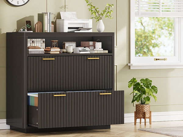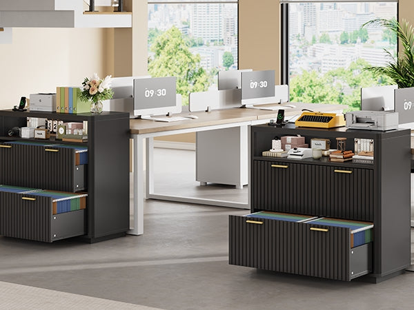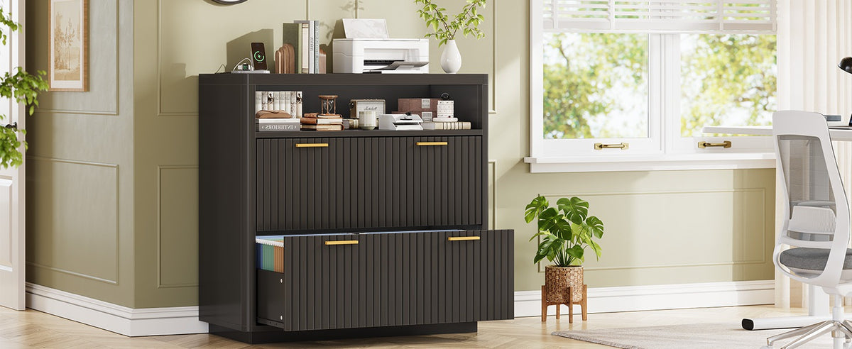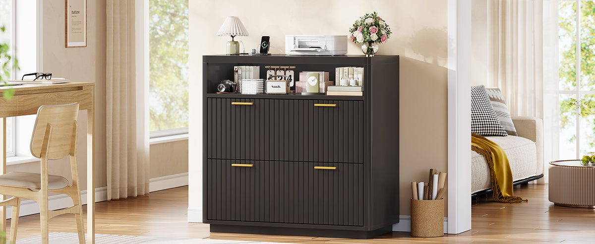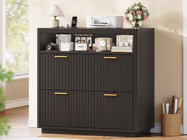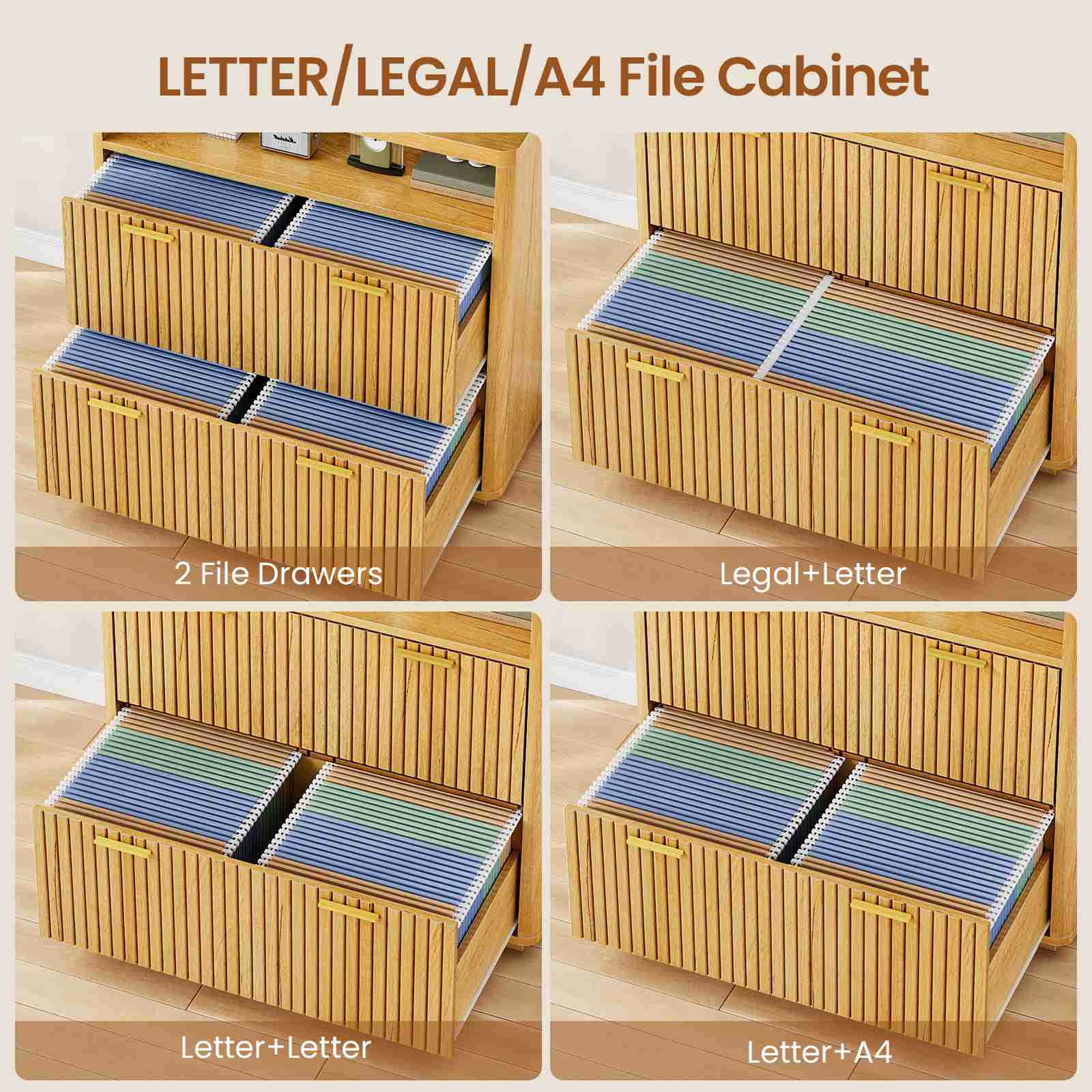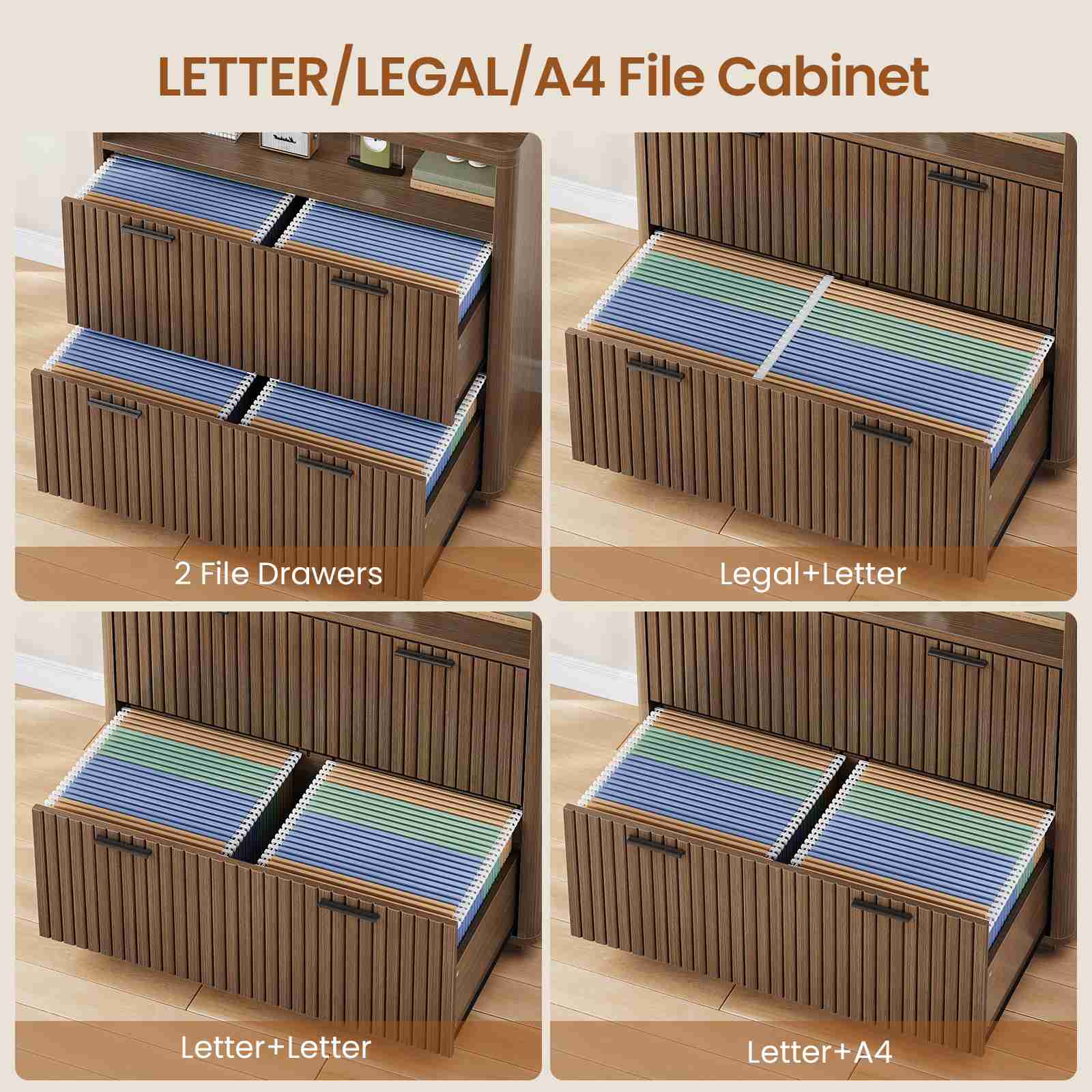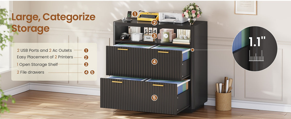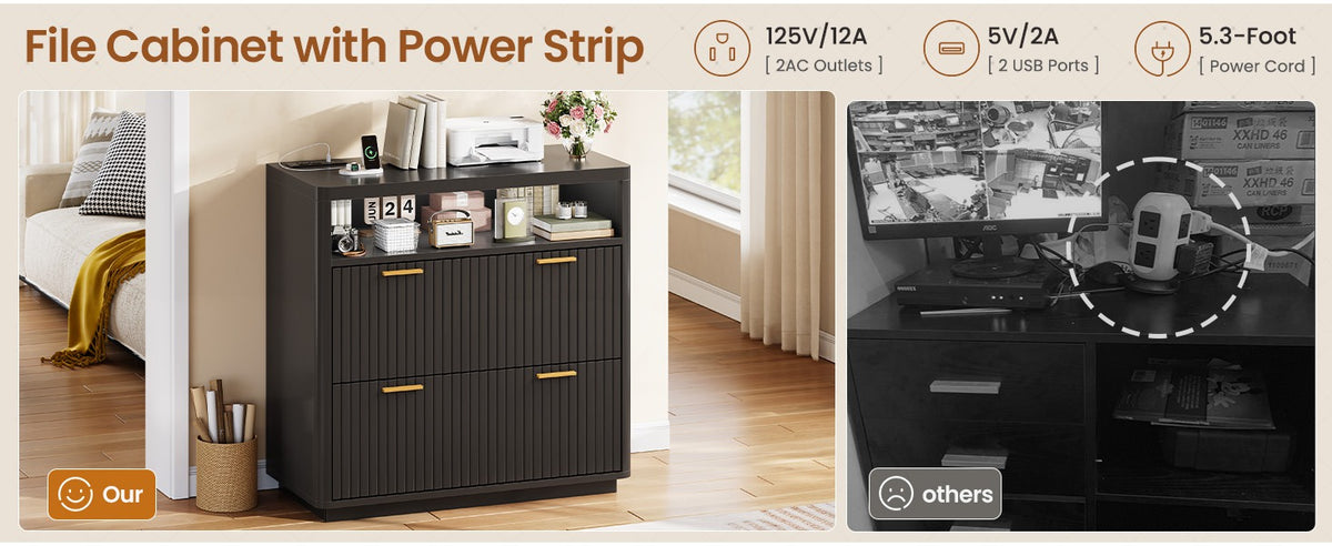 •【What Can You Get?】 The file cabinet has 2 fluted file drawers for Legal, Letter, A4 sizes standard file, power strip for charging 4 devices at the same time, spacious desktop(31.5"L) large enough for printers and scanners and open storage shelf. Filing cabinet that can be combined with any computer desk to form an L-shaped office area.