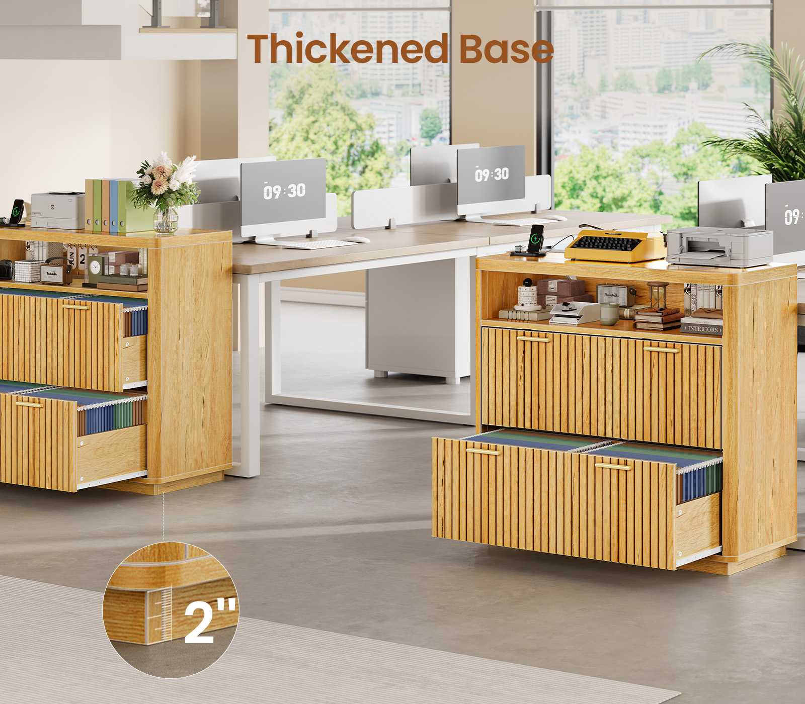 •【Solid Construction & High-Quality Materials】The filing cabinets for home office is made of high-quality P2 engineered wood, with the side panels and top panel thickened to 2.7 cm, and the base reinforced with a 5 cm thick structure to ensure durability and stability. Drawers and cabinet storage provide convenient organization for a clutter-free workspace.