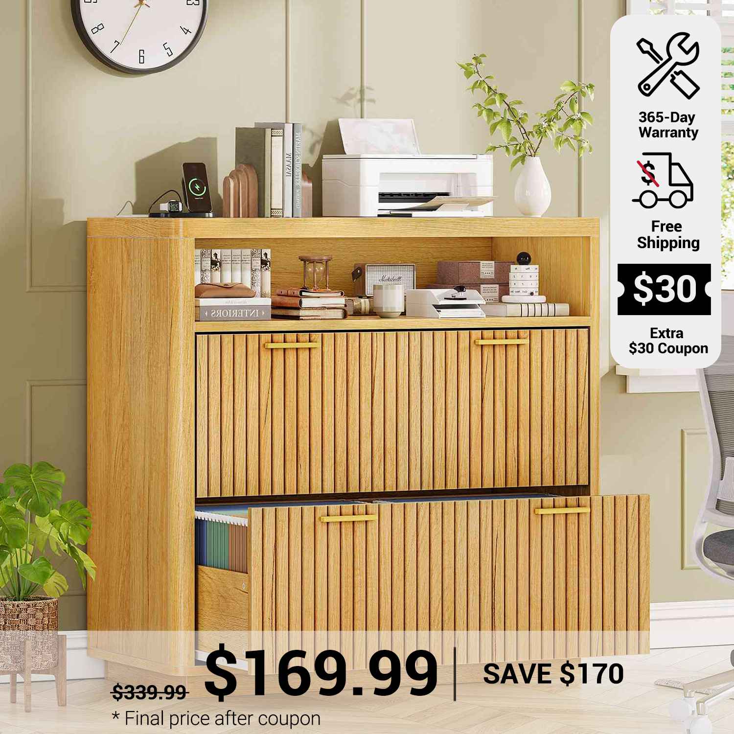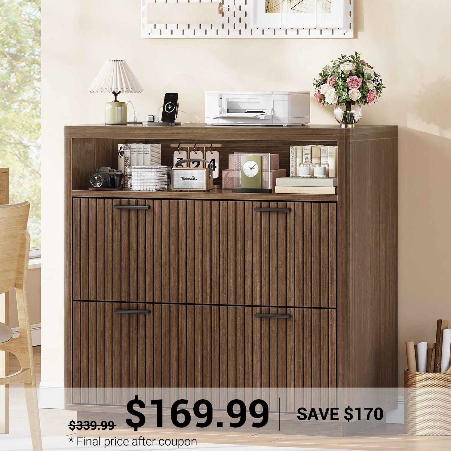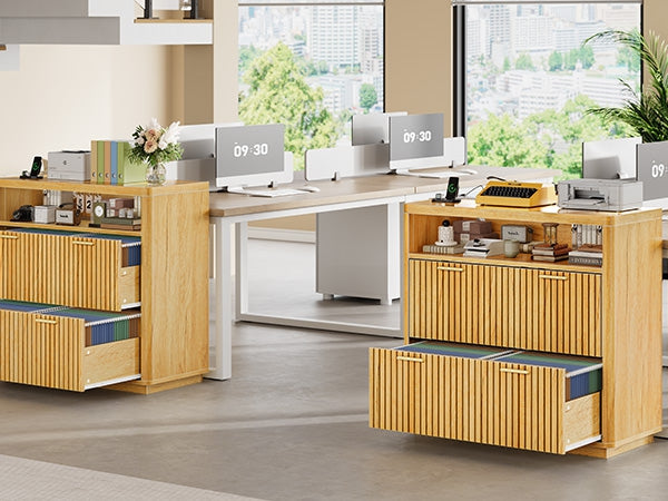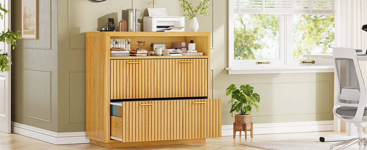 •【What Can You Get?】 The file cabinet has 2 fluted file drawers for Legal, Letter, A4 sizes standard file, power strip for charging 4 devices at the same time, spacious desktop(31.5"L) large enough for printers and scanners and open storage shelf. Filing cabinet that can be combined with any computer desk to form an L-shaped office area.