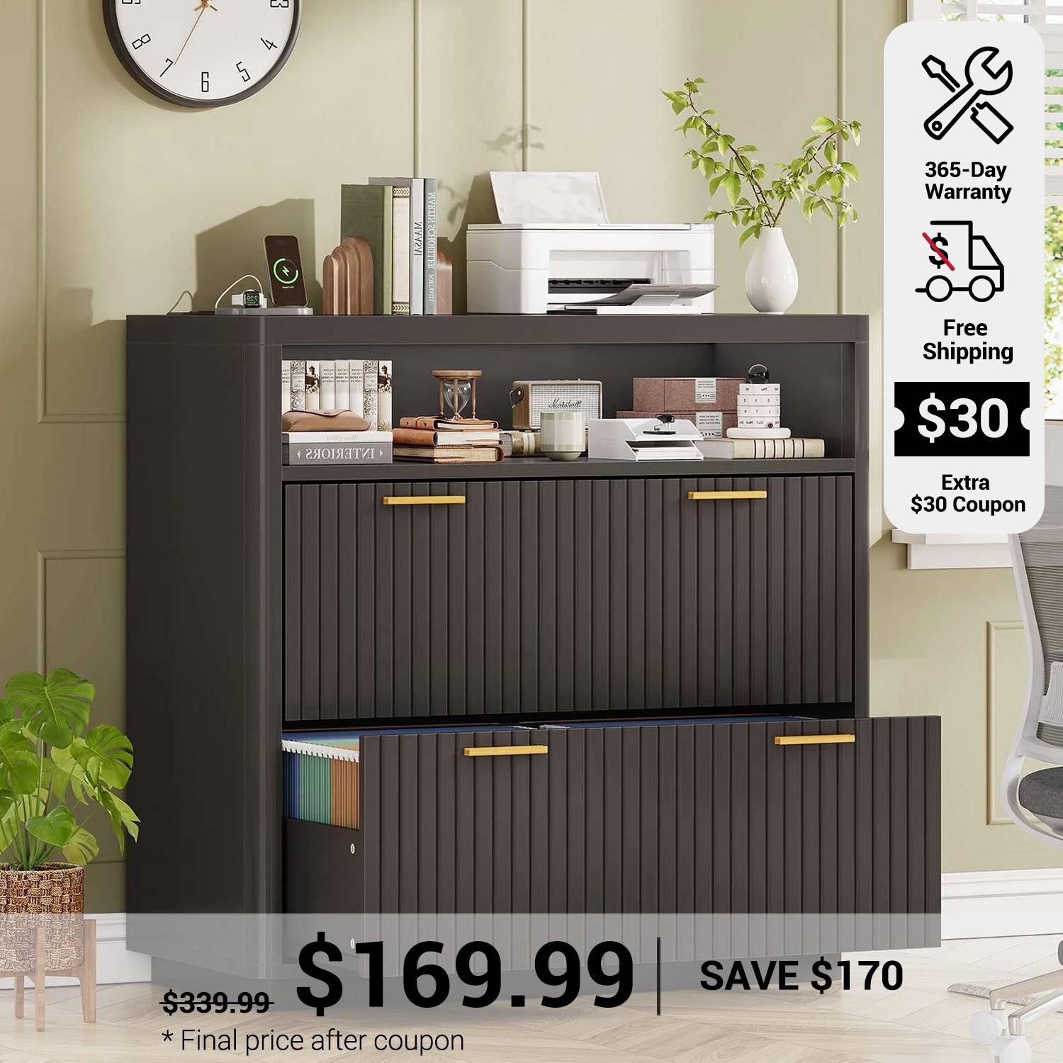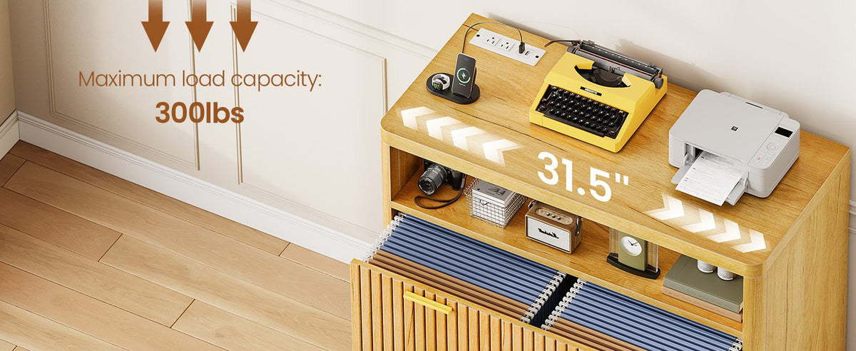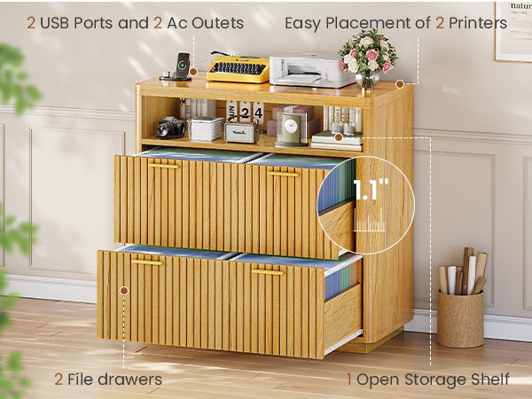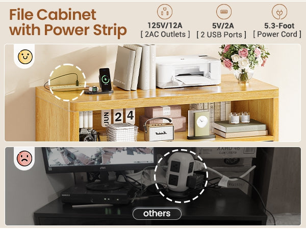 •【Charging Station】The file cabinets for home office is equipped with 2 sockets and 2 USB ports to power up to 4 devices at the same time. The desktop size of 2 drawer file cabinet is 31.5 inches, which is large enough to use 2 machines at the same time, such as printers, scanners, copiers, laptops or other office electronic devices.