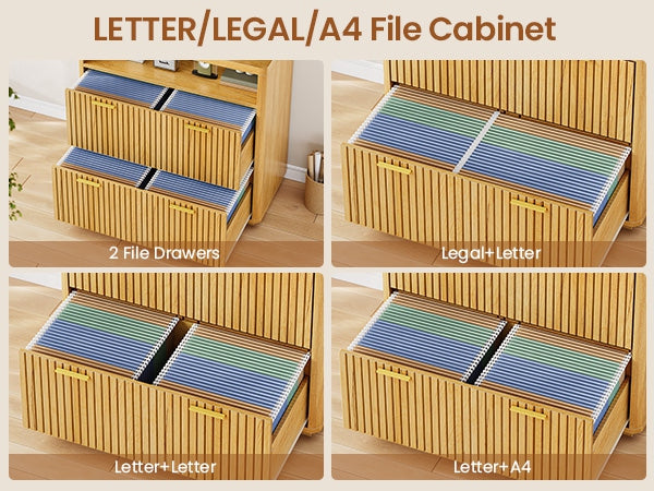 •【File Compatibility】Designed to accommodate various file sizes. Flexible hanging rods accommodates multiple sizes file: Legal + Letter Size/ Letter+ A4 Size/ Letter + Letter Size. No more hassle of finding the file cabinet for different file types. The 3-tier file cabinet with 2 drawers provides enough room to hold books, printer, photocopier, file for your home office.