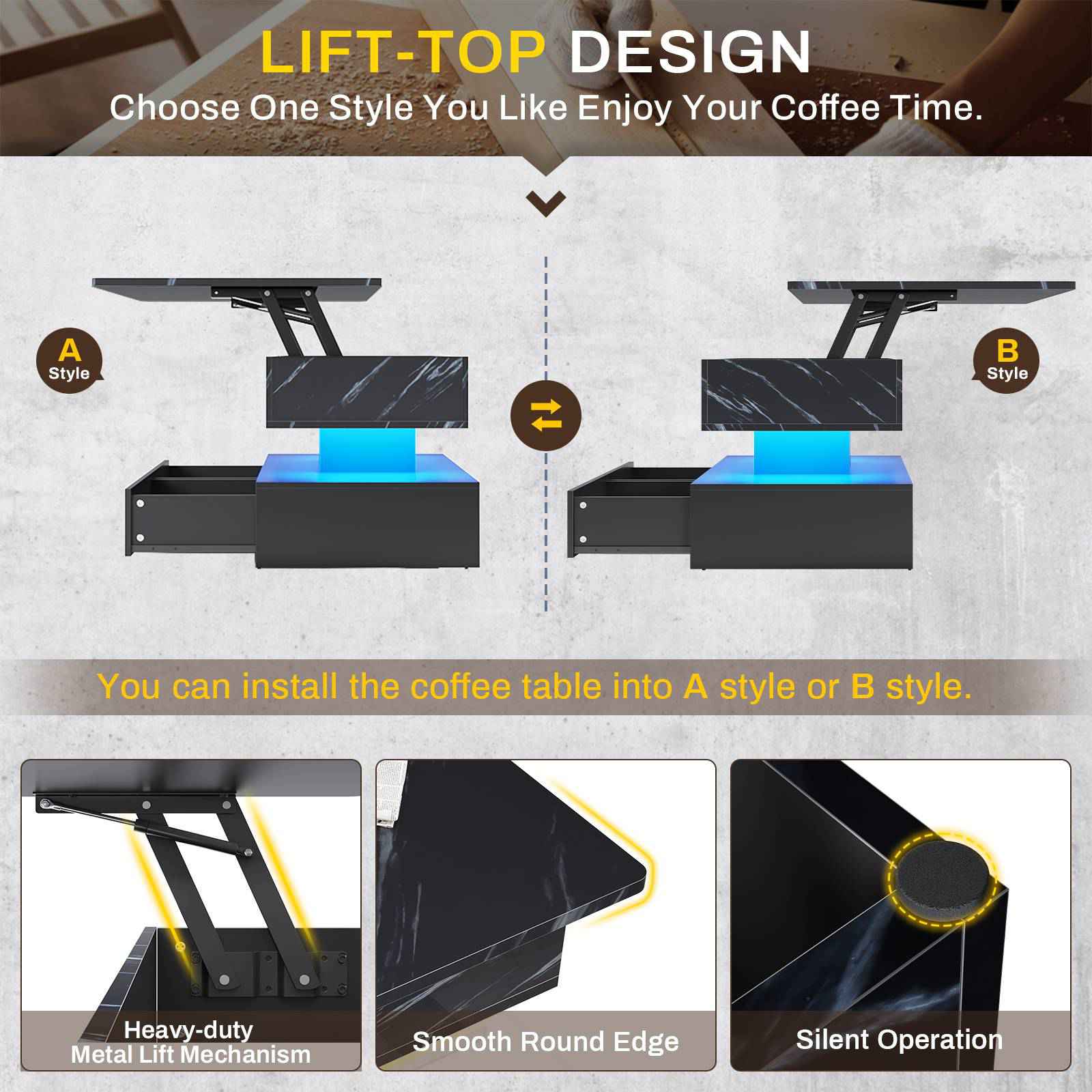 The lifting coffee table top can be extended forward or backward depending on the position of the sofa. You can determine the lifting direction of the coffee table based on your own preferences and spatial layout.