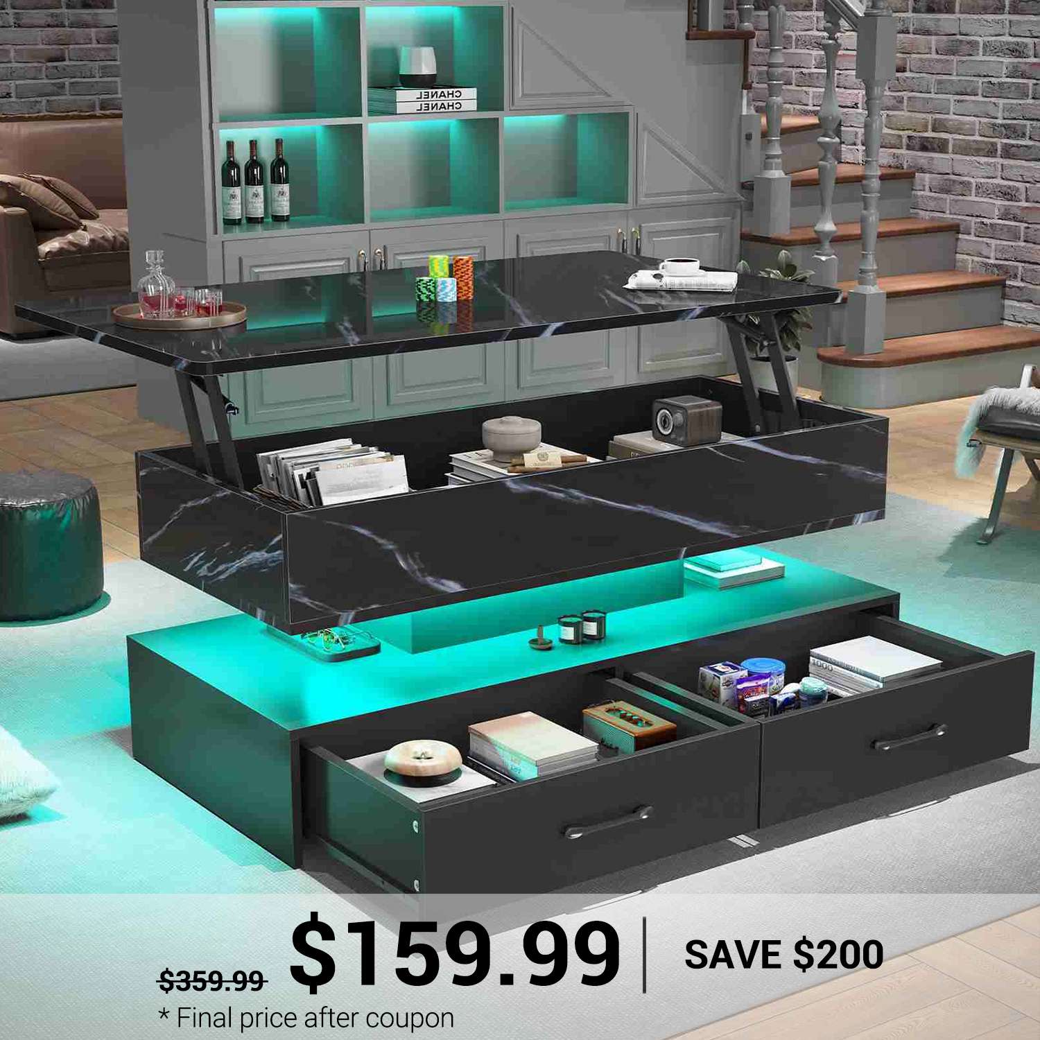 Life needs a sense of ritual, colorful lights make your life relaxing and exciting. The LED coffee table includes multiple colors and 29 flashing modes for you to choose from. Led lights with music sync function, built-in sensitivity adjustable mic, and LED light color will change with the rhythm of the sound and music.