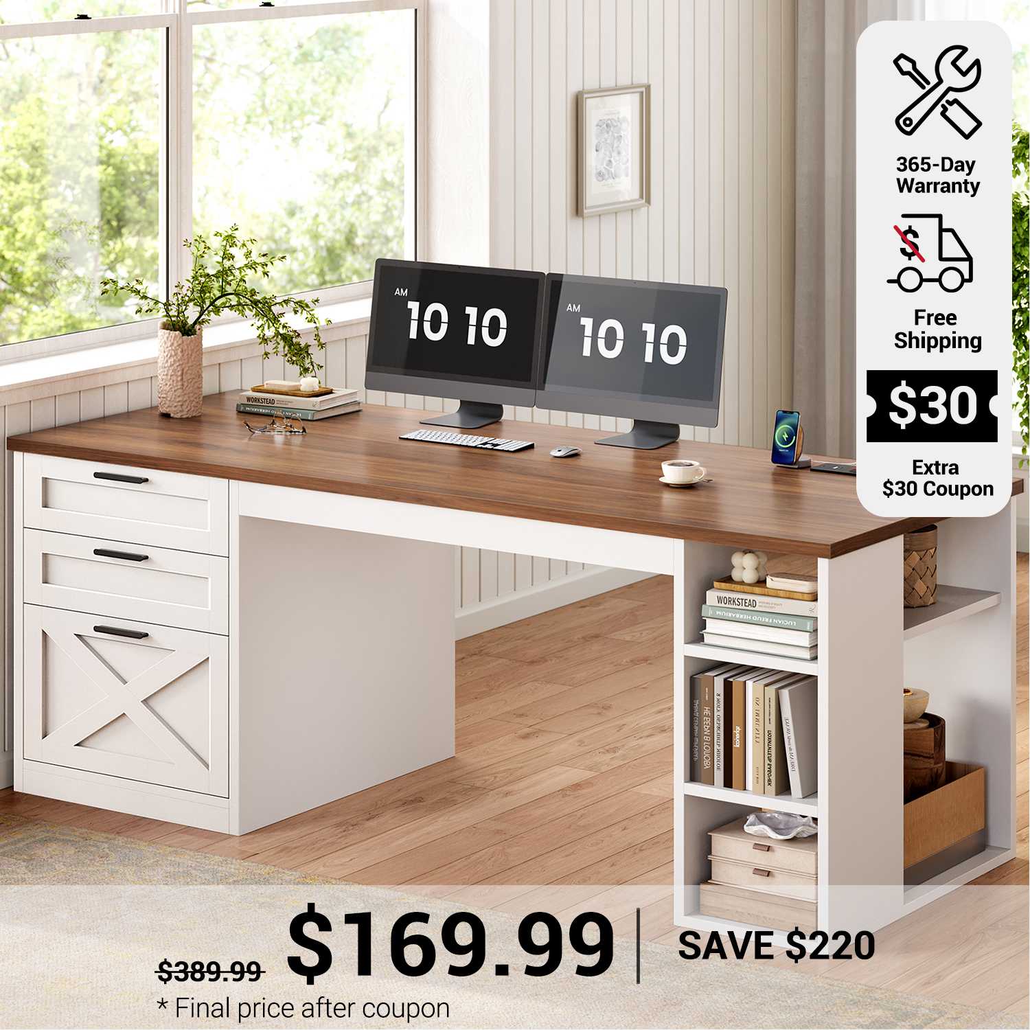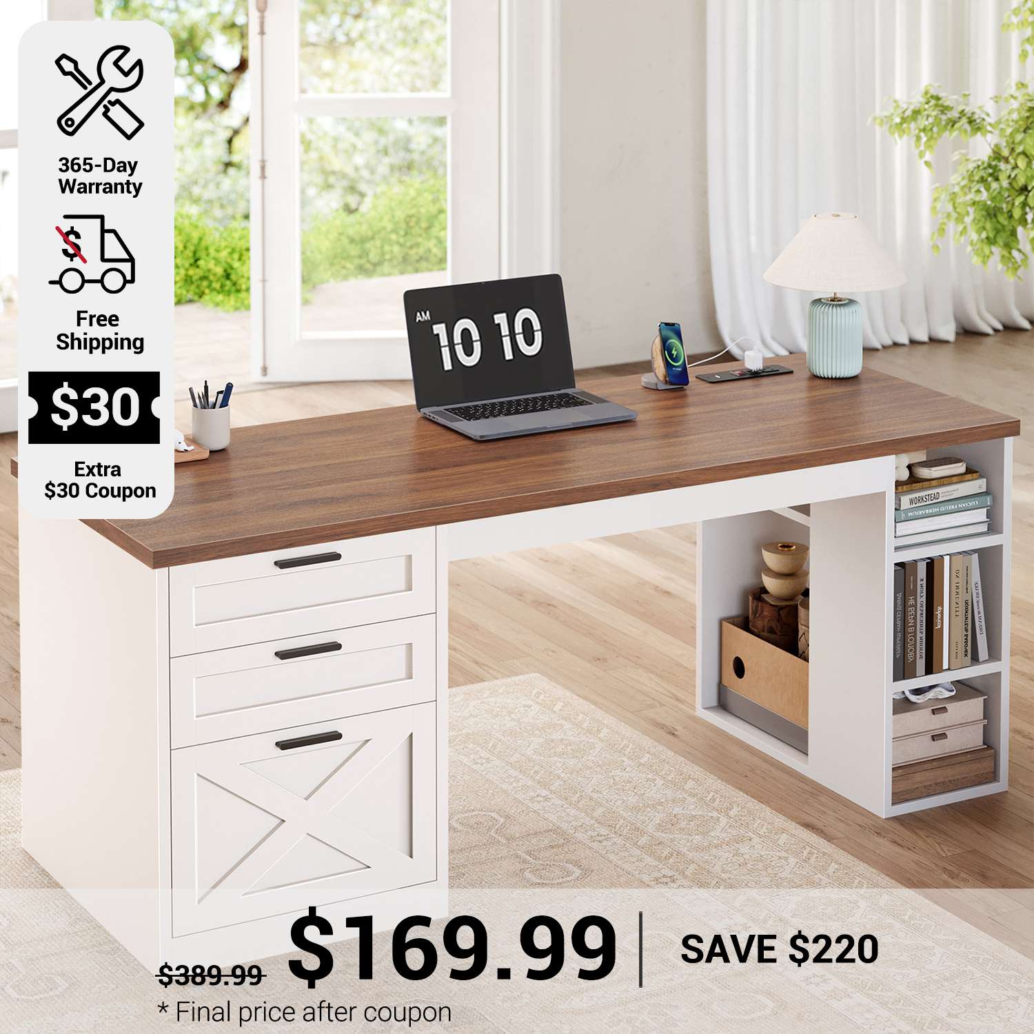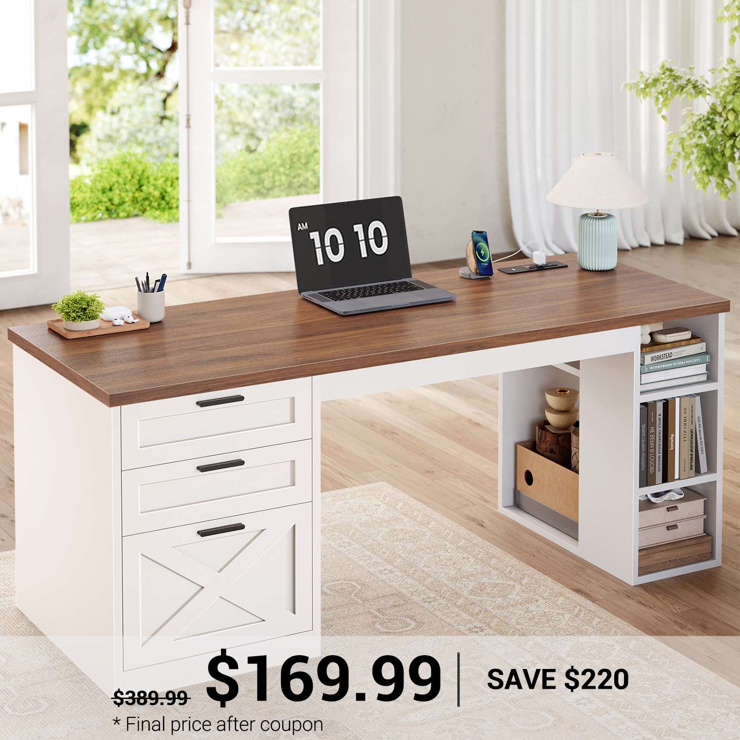 •【Farmhouse style】The drawer design of the office desk creates a classic American style that complements most home decor styles. At the same time, this office desk is also an ideal choice for studying and working from home, with diverse uses.