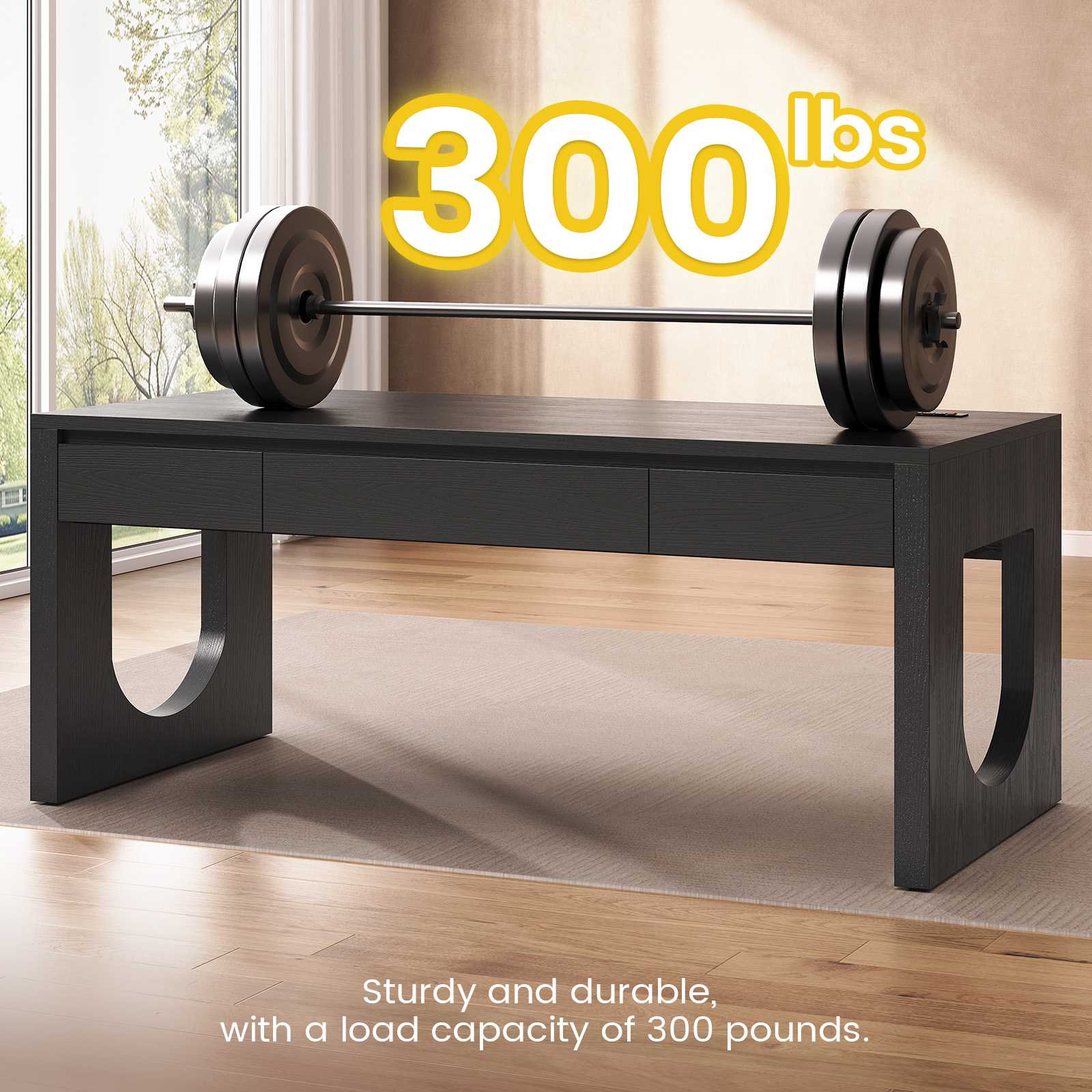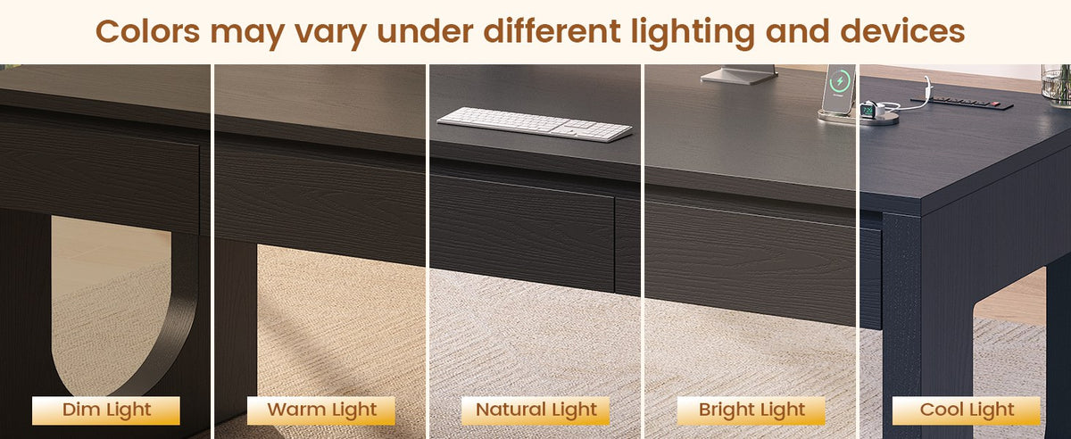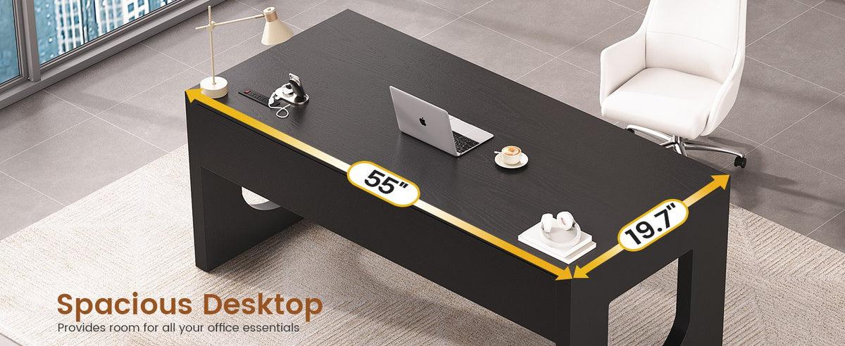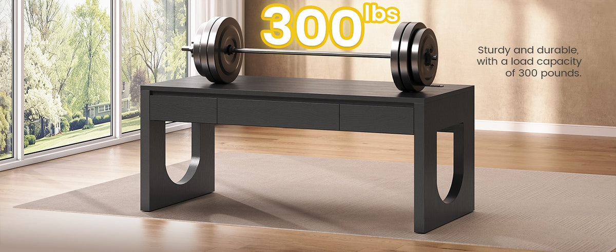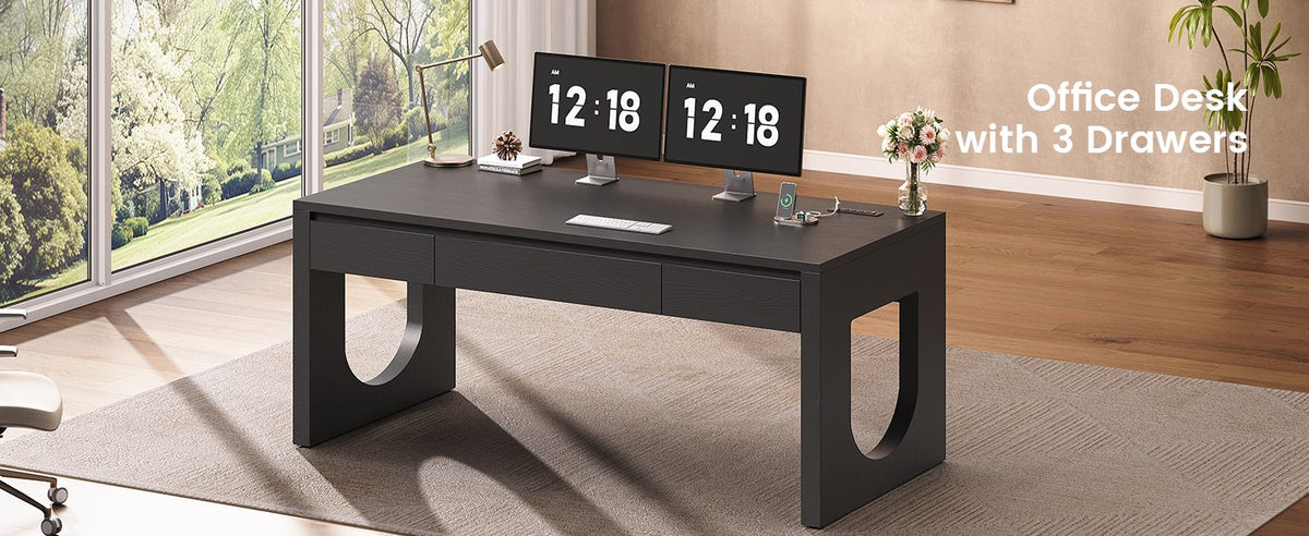 【3 Storage Drawers】This computer desk features three storage drawers. The large middle drawer can hold your laptop and other items, and all drawers use full-length sliding rails. This storage design not only provides you with more private storage space but also saves desktop space. 【Sturdy U-Shaped Legs & Modern Aesthetic】Featuring a distinctive U-shaped leg design, this desk boasts a sleek, contemporary look that elevates any office or home workspace. The thick, solid leg panels offer exceptional structural stability and load-bearing capacity, ensuring the desk remains durable and wobble-free even with heavy daily use. 【Charging Port】Our charging station includes 4-Outlet & 2 USB Ports to provide power for up to 6 devices simultaneously. Also includes an on-off switch, thanks to the on-off switch, one-button power off to ensure safe electricity use, which strengthens security. Power outlet allows you to charge cell phones, tablets, notebooks, etc.Additionally, a cable management hole on the desktop helps organize data cables, keeping your desk tidy. 【Textured Embossed Surface for Tactile Appeal】 The office desk’s embossed wood grain finish creates a tactile, raised texture that mimics the warmth of natural wood while resisting scratches, stains, and fingerprints. This durable surface maintains its elegant appearance over time, adding a touch of sophistication to your home office or study. 【Simple installation & After-sales service】This modern executive desk with drawers comes with very clear instructions and numbered parts for easy assembly. If your executive desk arrives damaged, scratched, or with parts missing, please feel free to contact us and we will replace it for free or provide a partial refund.