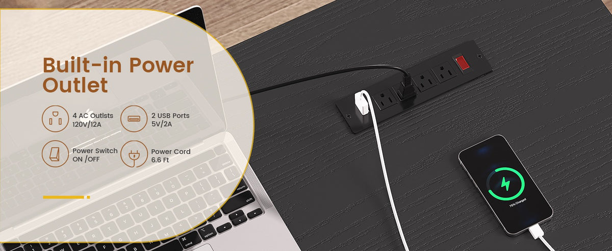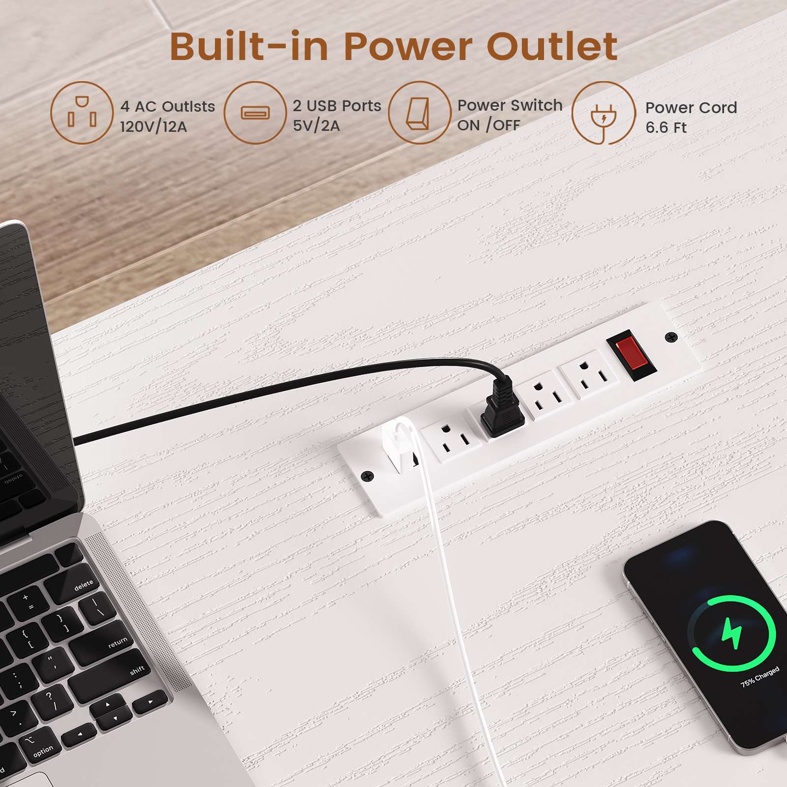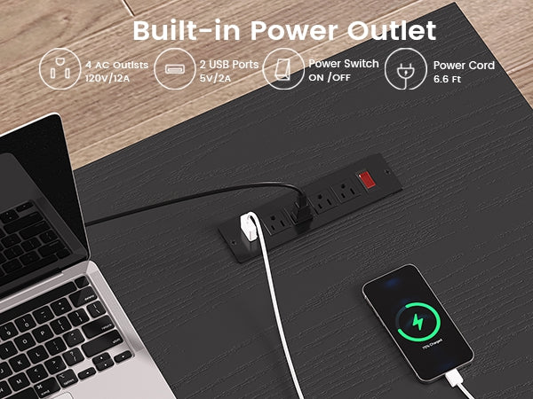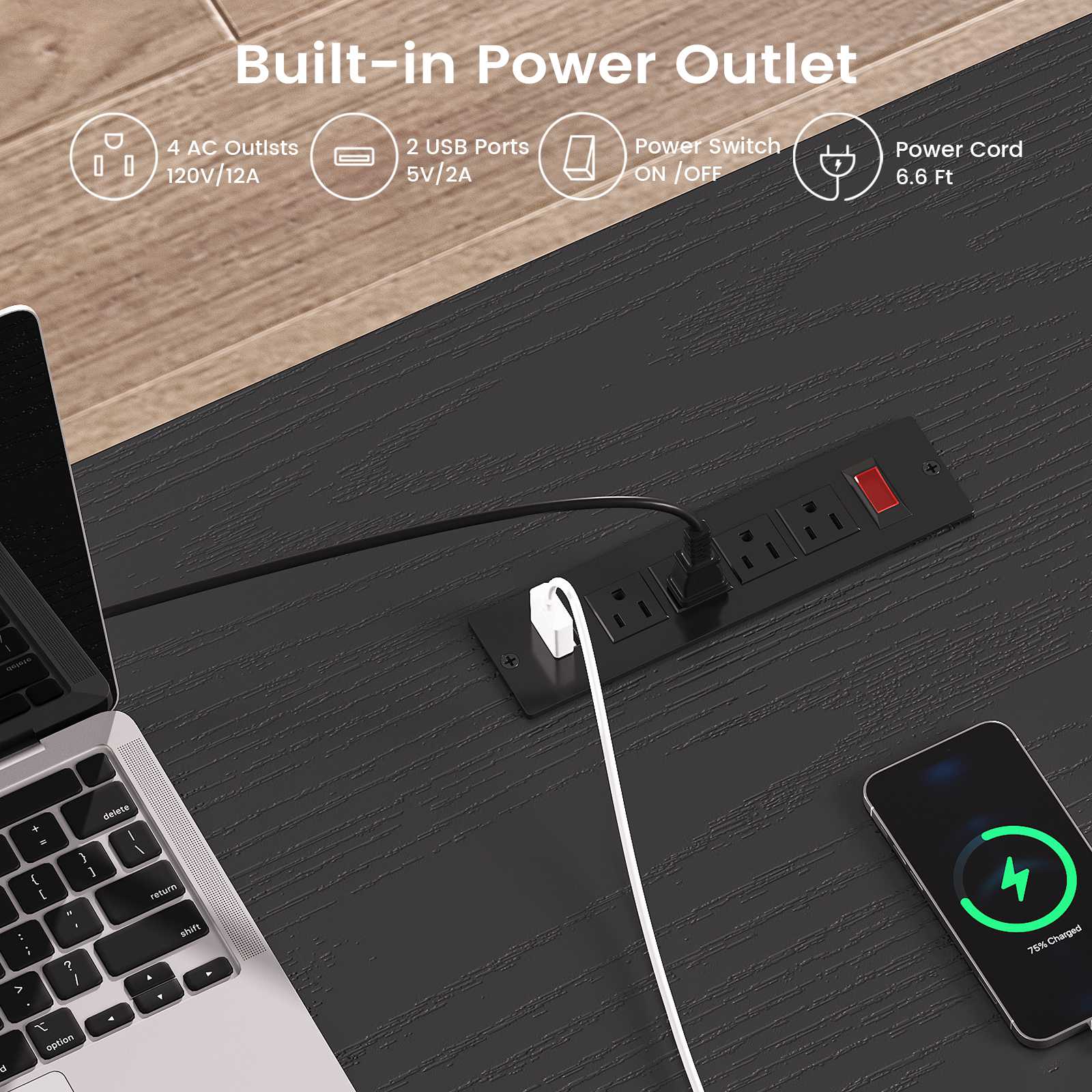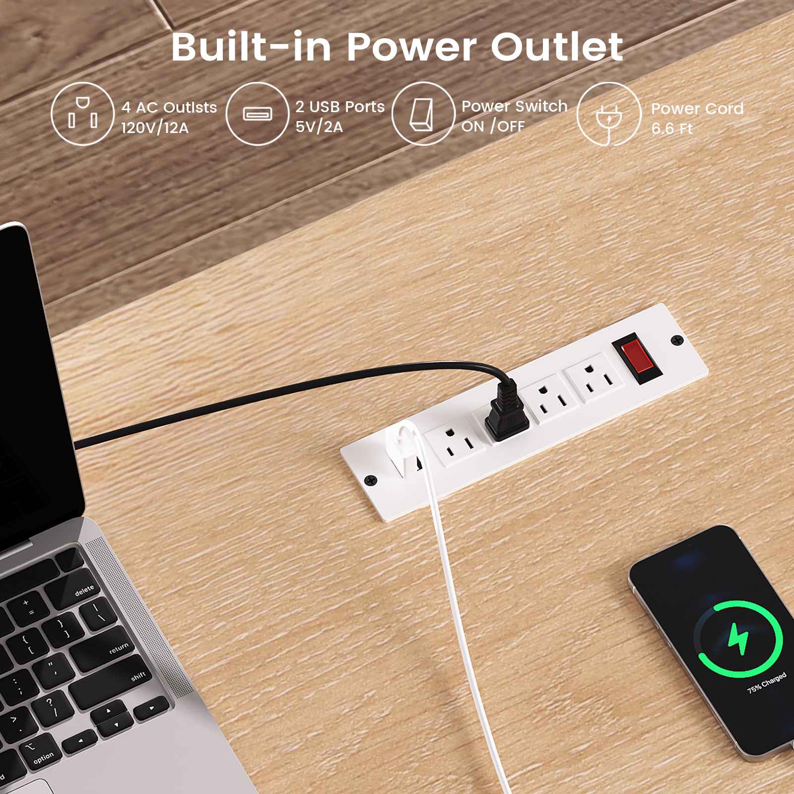 • Built-in Charging Station: 4 outlets + 2 USB ports power 6 devices; on/off switch and cable hole keep usage safe and desktop organized.