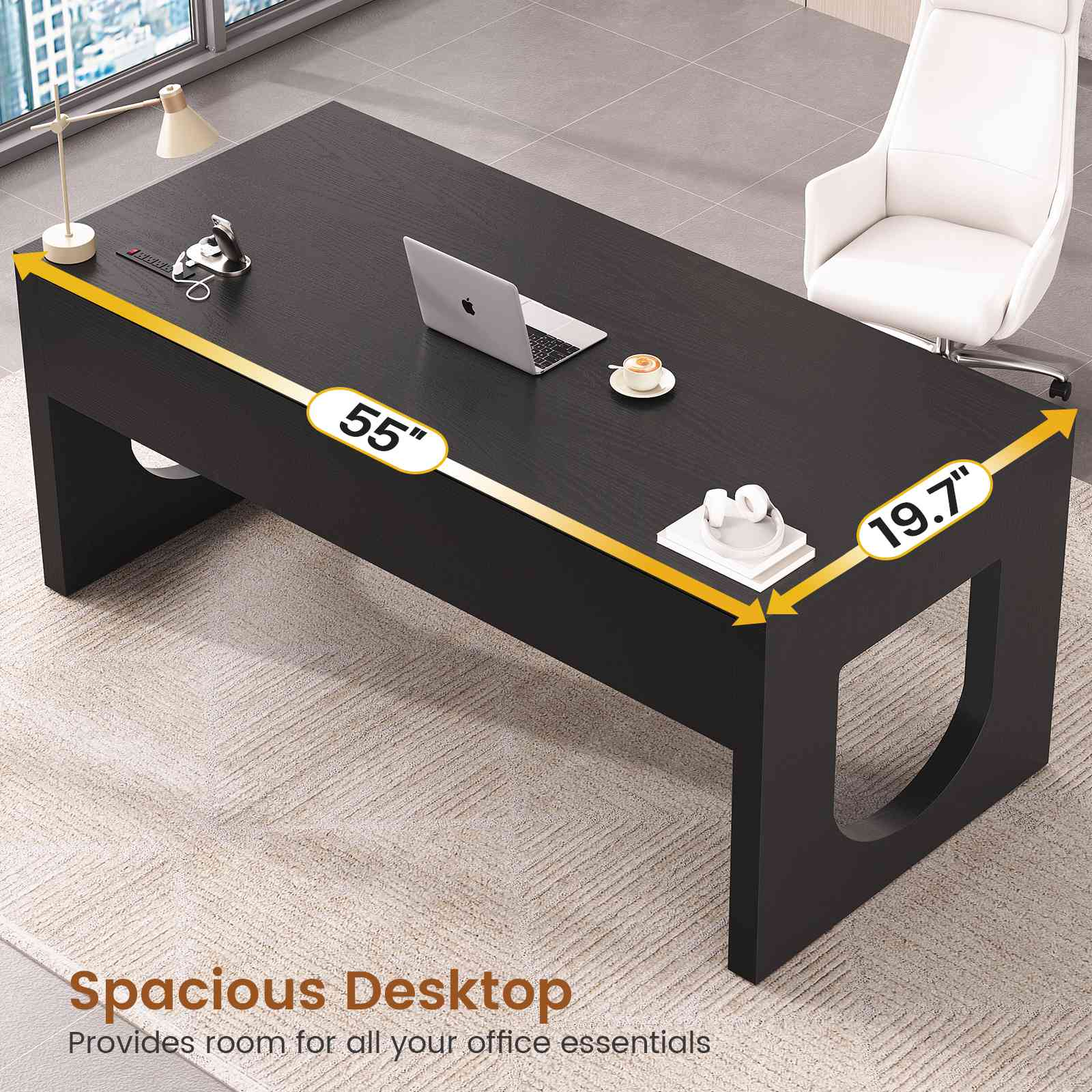 SEDETA 55 Inch Modern Office Desk with 3 Drawers Executive Desk with U-Shaped Legs Wood Computer Desk with Power Outlet Home Office Desks with Relief Texture